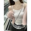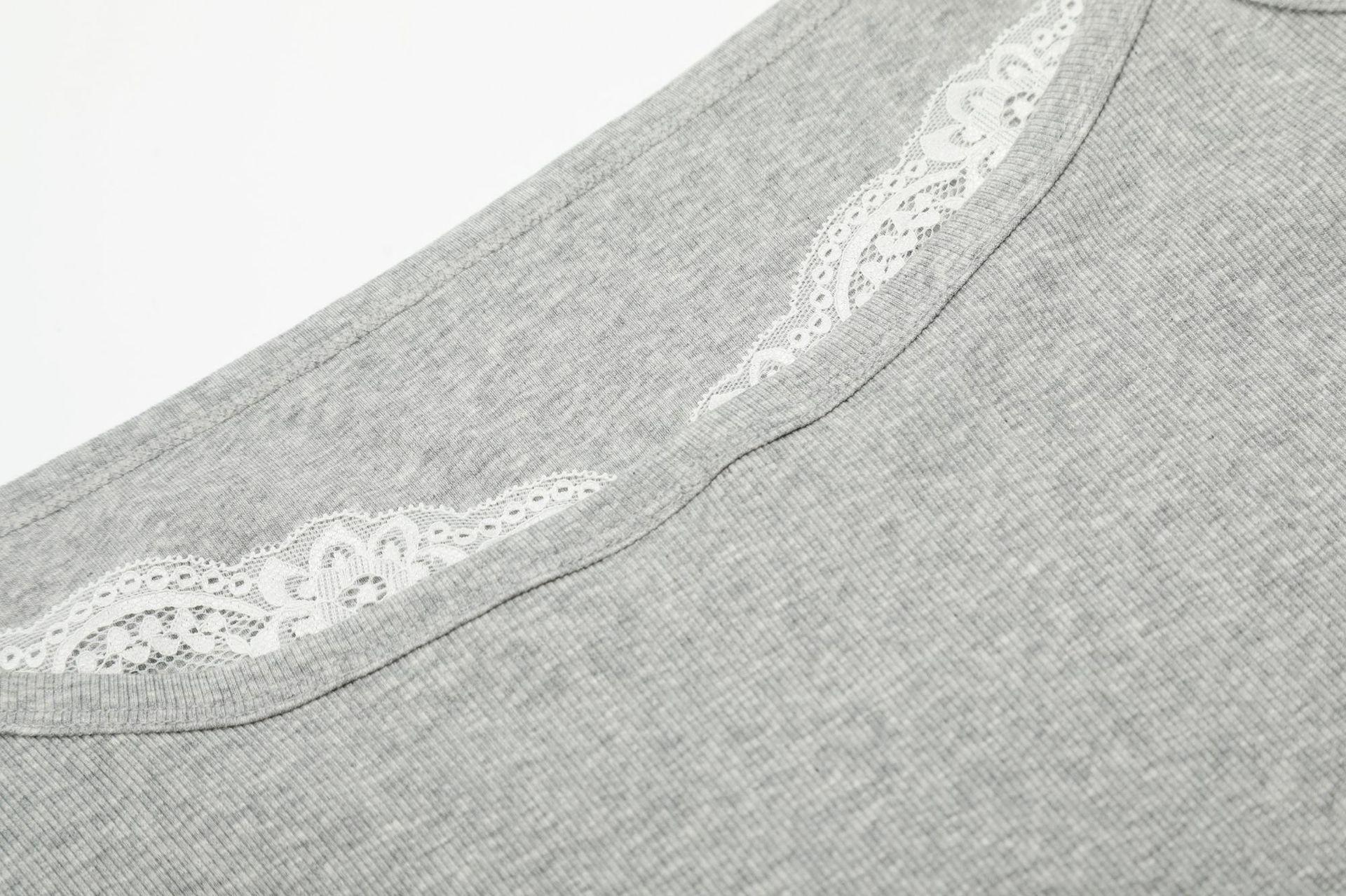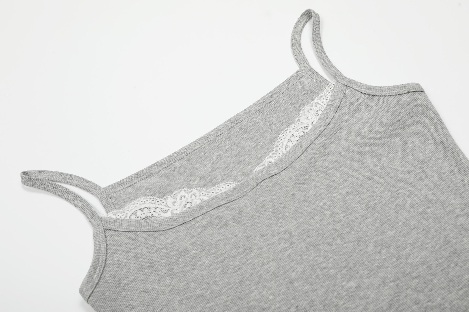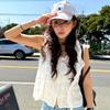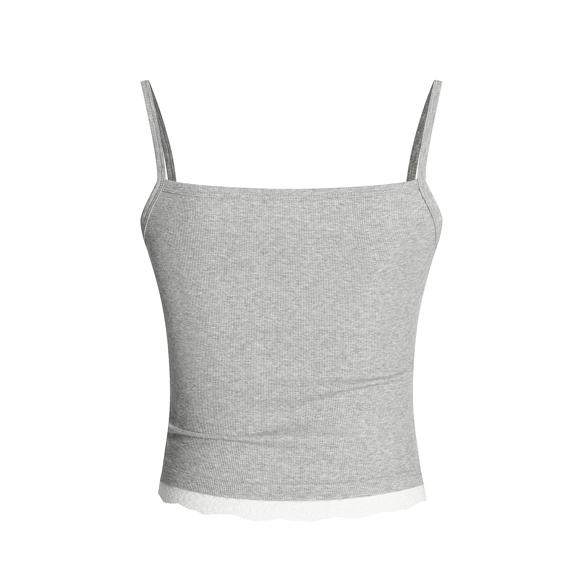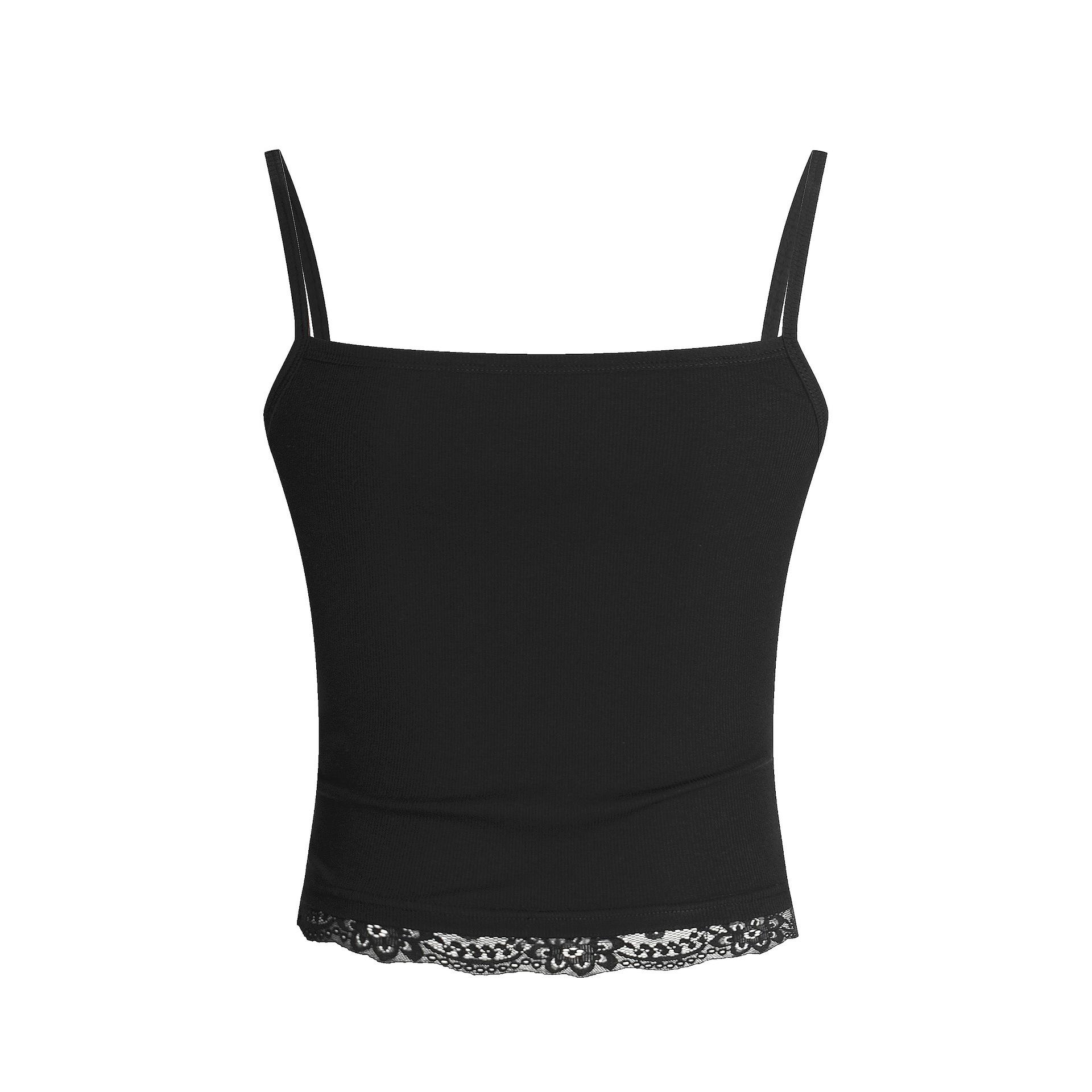 Yongfang 2025 Verano Estilo Coreano Elegante Blanco Contraste Encaje Borde Ajustado Camisola Interior Camiseta Top