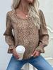 2024 Nuevo Otoño para Mujer Jersey Cuello Redondo Estampado Leopardo Camisa Comercio Exterior Transfronterizo Amazon Estilo Commuter Camisa Manga Larga