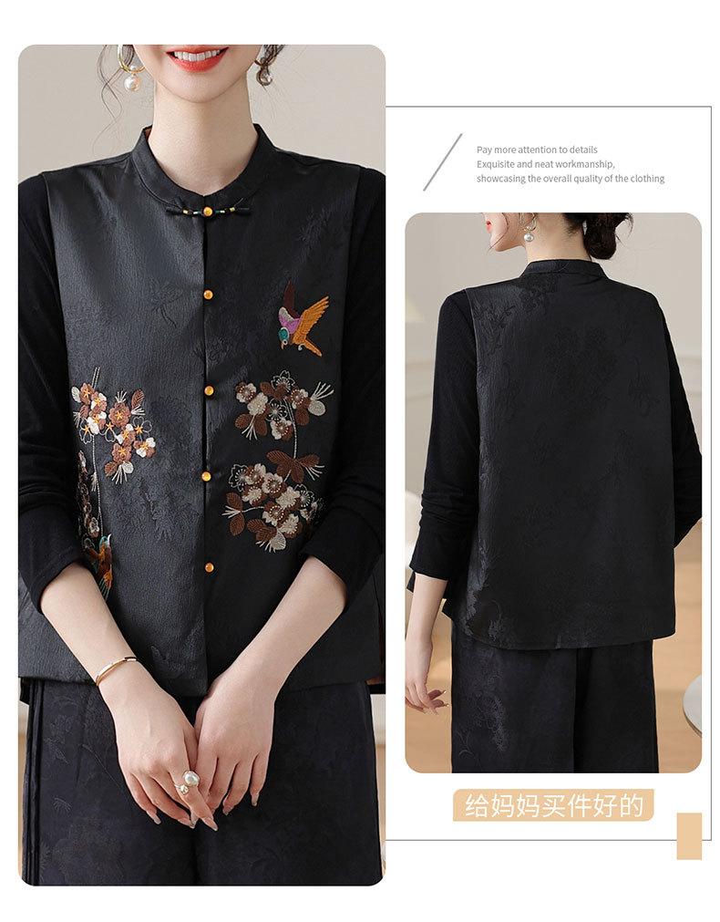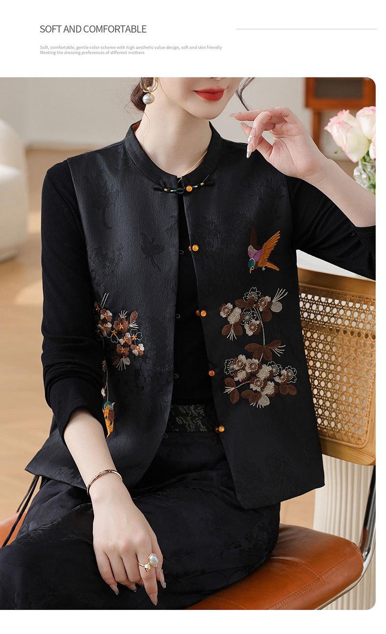 Chaleco Estilo Chino Nuevo Primavera/Verano 2025 Bordado Elegante Top Estilo Chino para Mujeres de Mediana Edad y Mayores