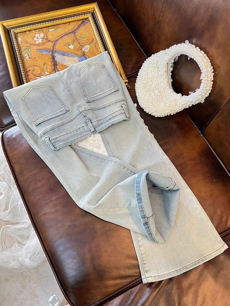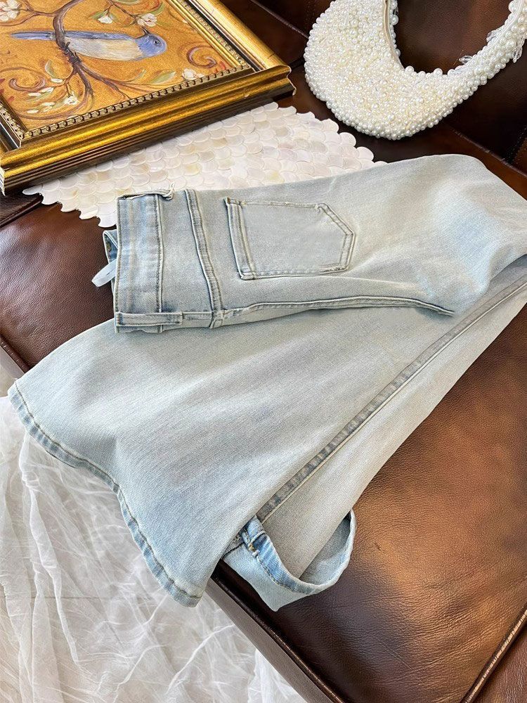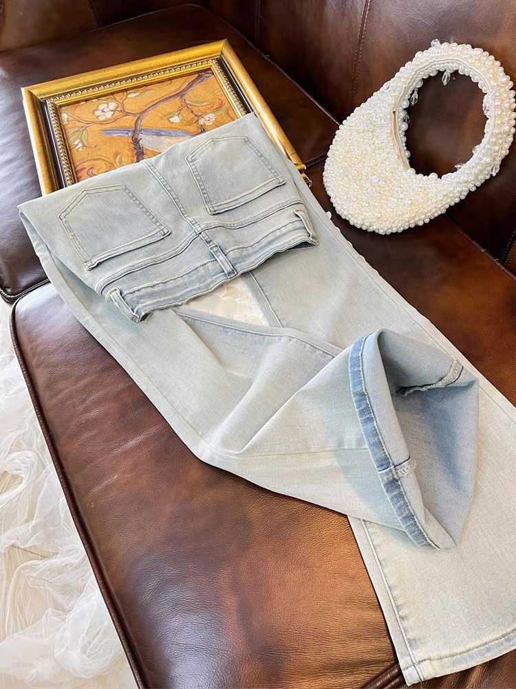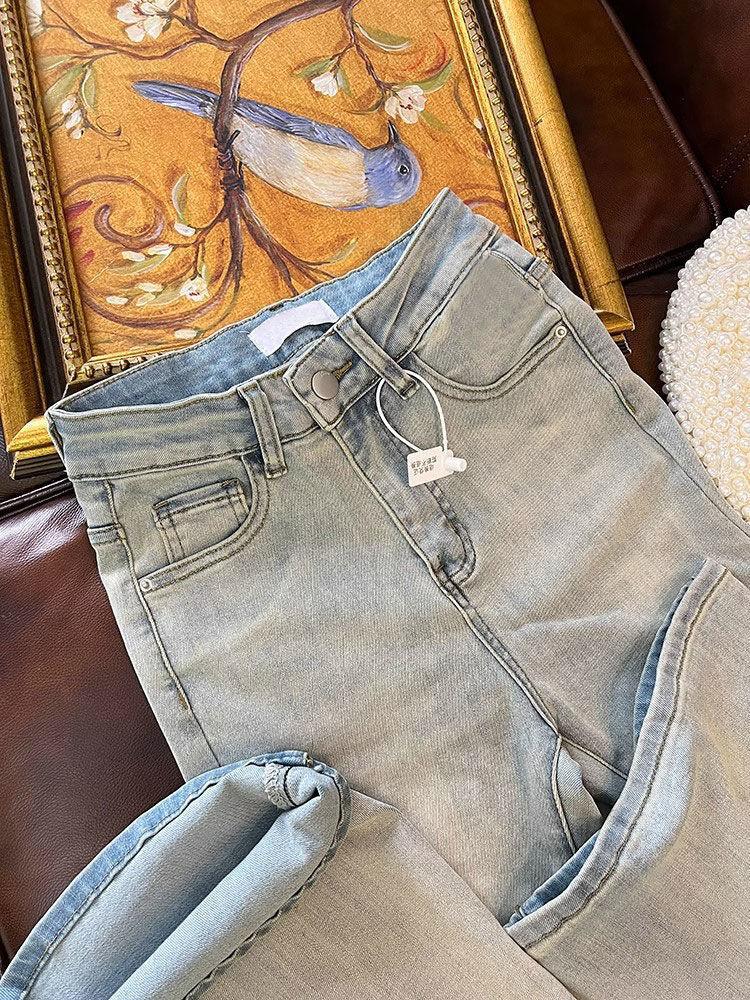 Azul claro Weila Jeans para Mujer Verano 2025 Nuevo Cintura Alta Adelgazante Combinación con Todo Pantalones Lavados para Hombres Pequeños