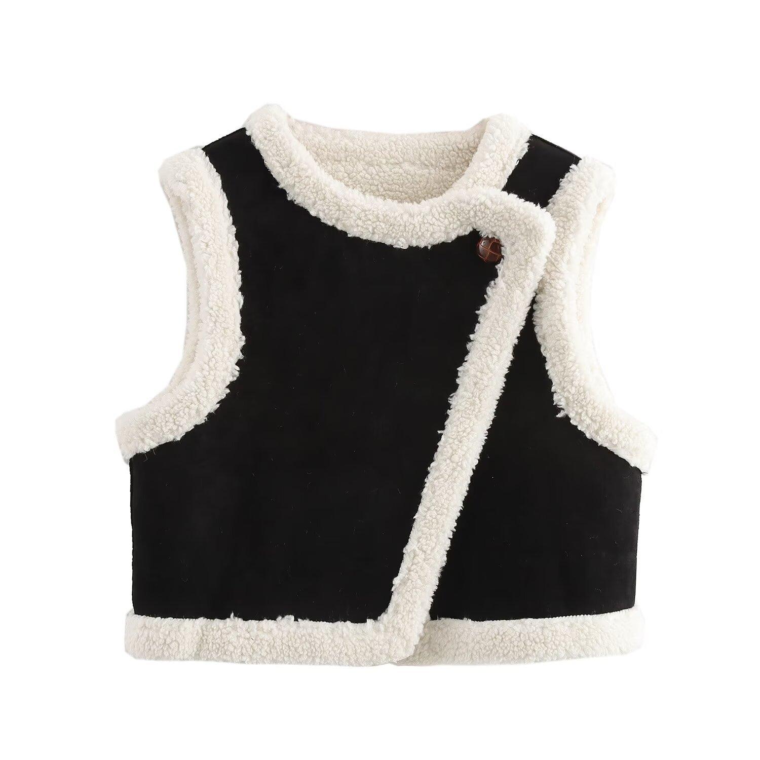 2024 Nueva Ropa de Invierno para Mujer Estilo Europeo y Americano Chaleco Corto Peludo de Ante de Lana de Cordero