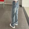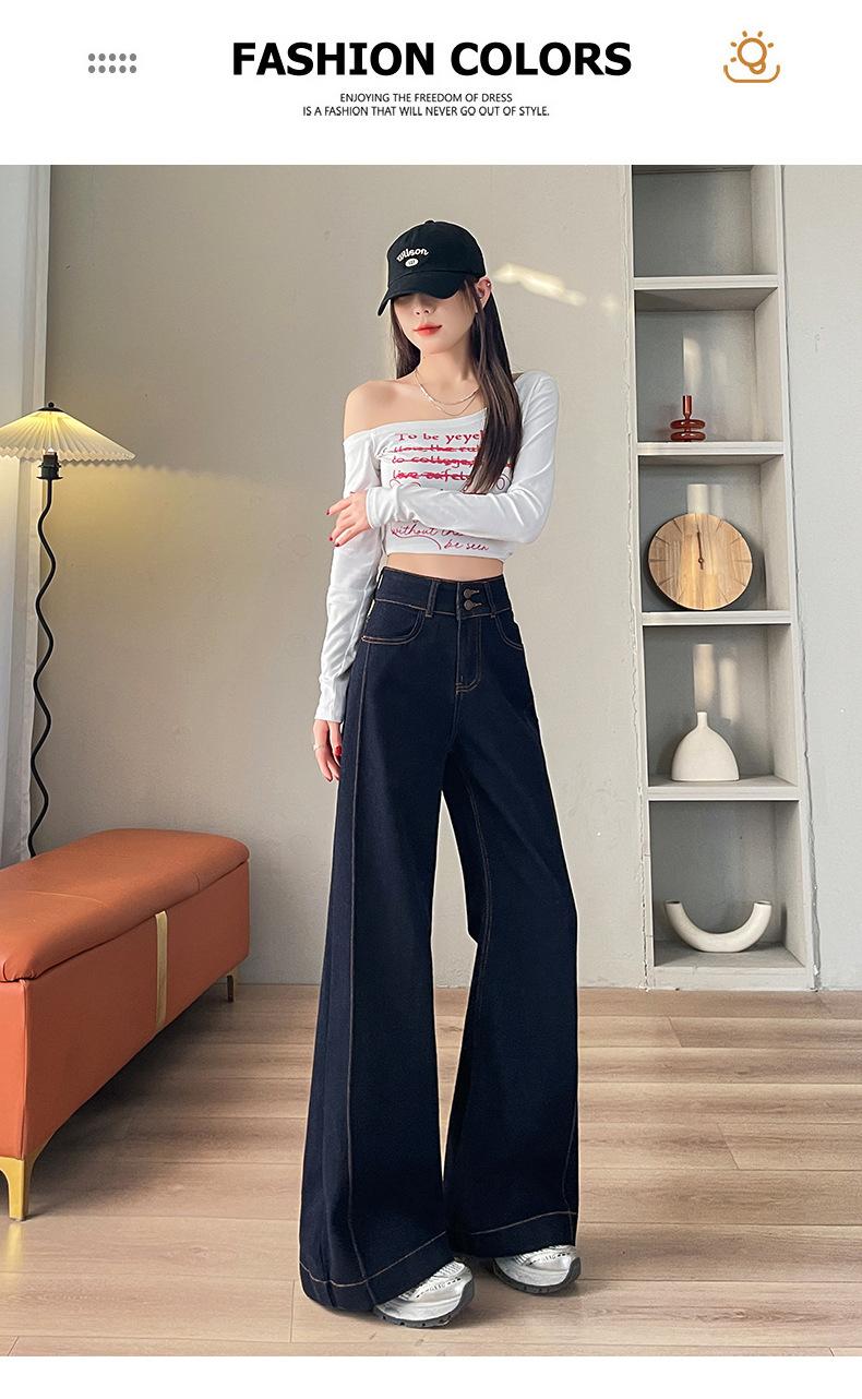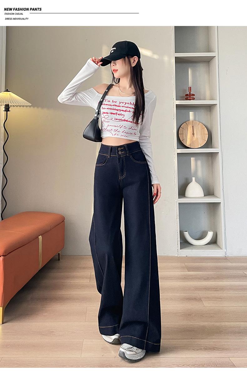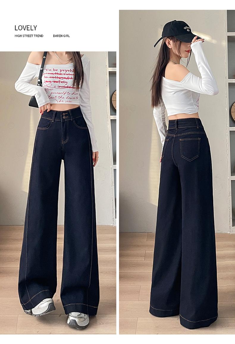 Jeans rectos de mezclilla azul para mujer, nueva moda de primavera y verano, modernos, adelgazantes, holgados, elásticos, de pierna ancha, largos hasta el piso