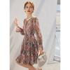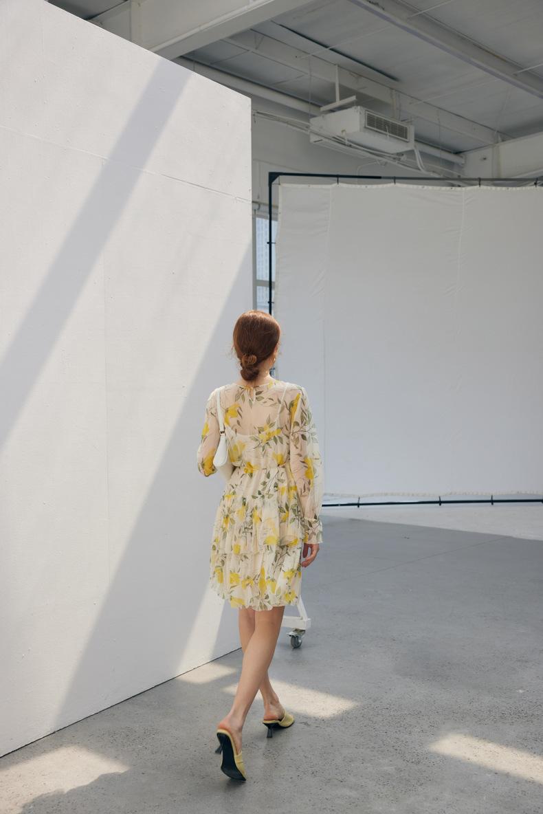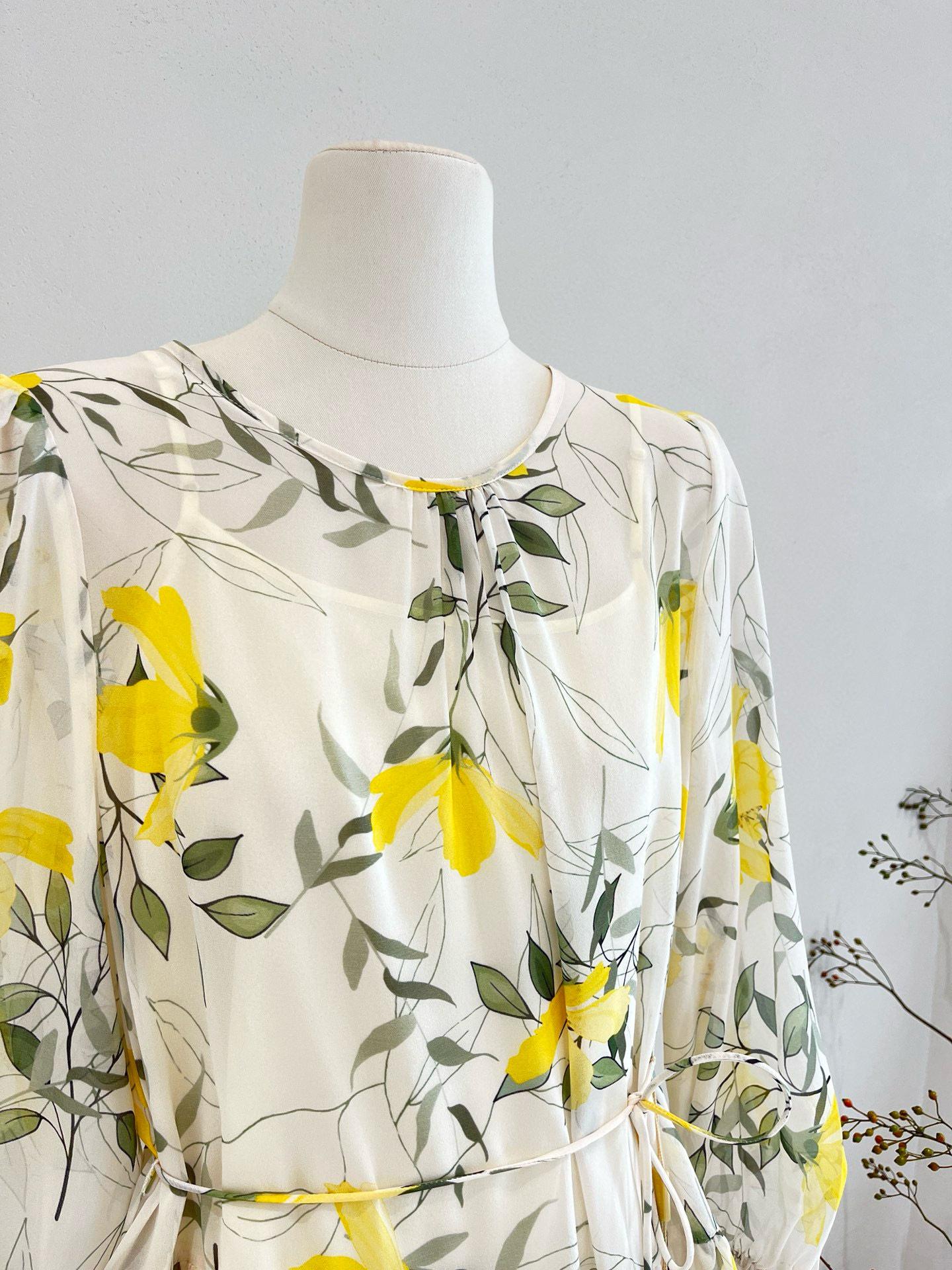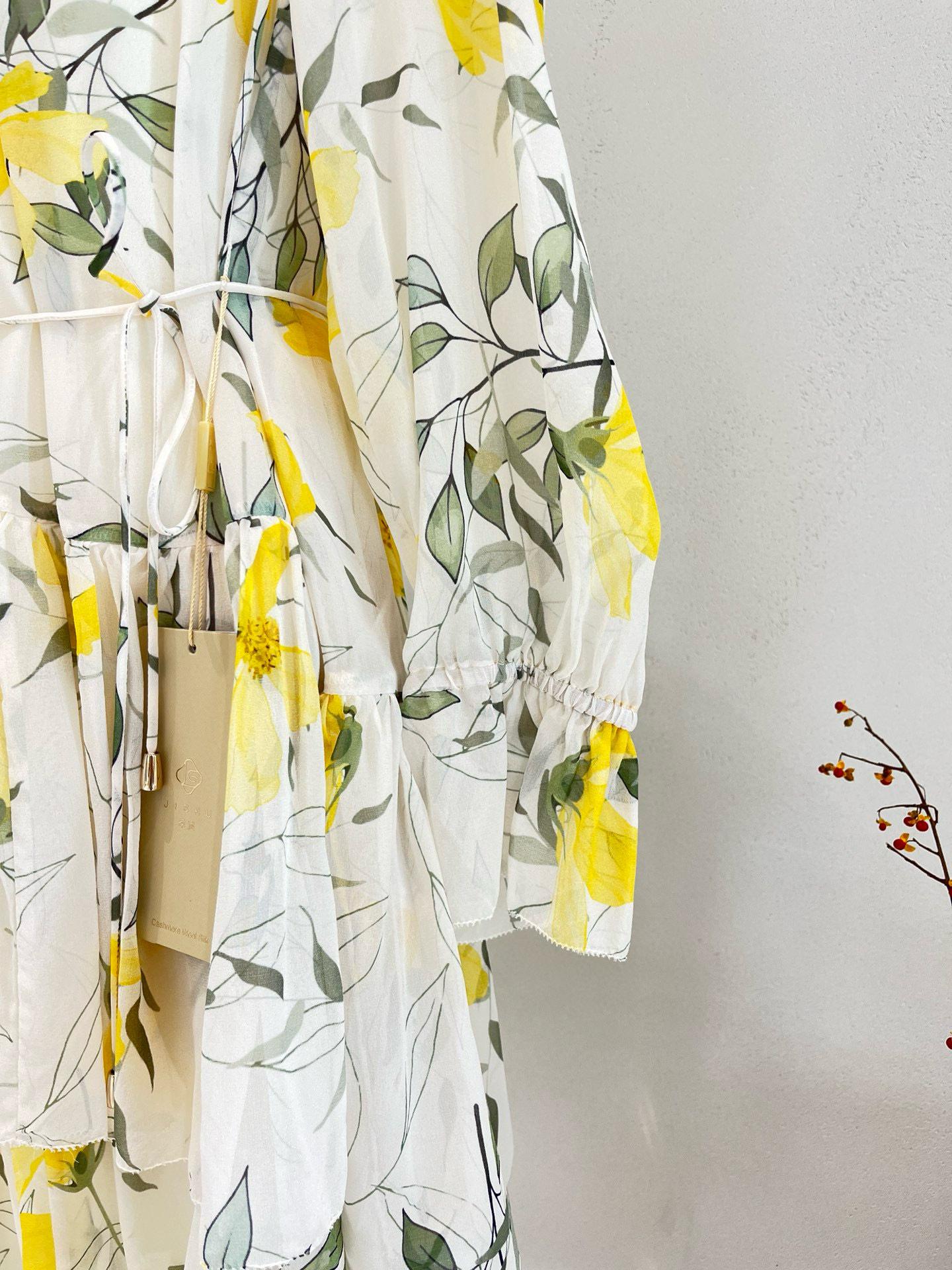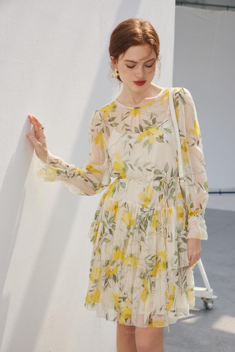 Vestido de seda para mujer, novedad primavera/verano 2025, estilo francés con estampado floral de Qiao, manga larga, falda 100 % seda morera.