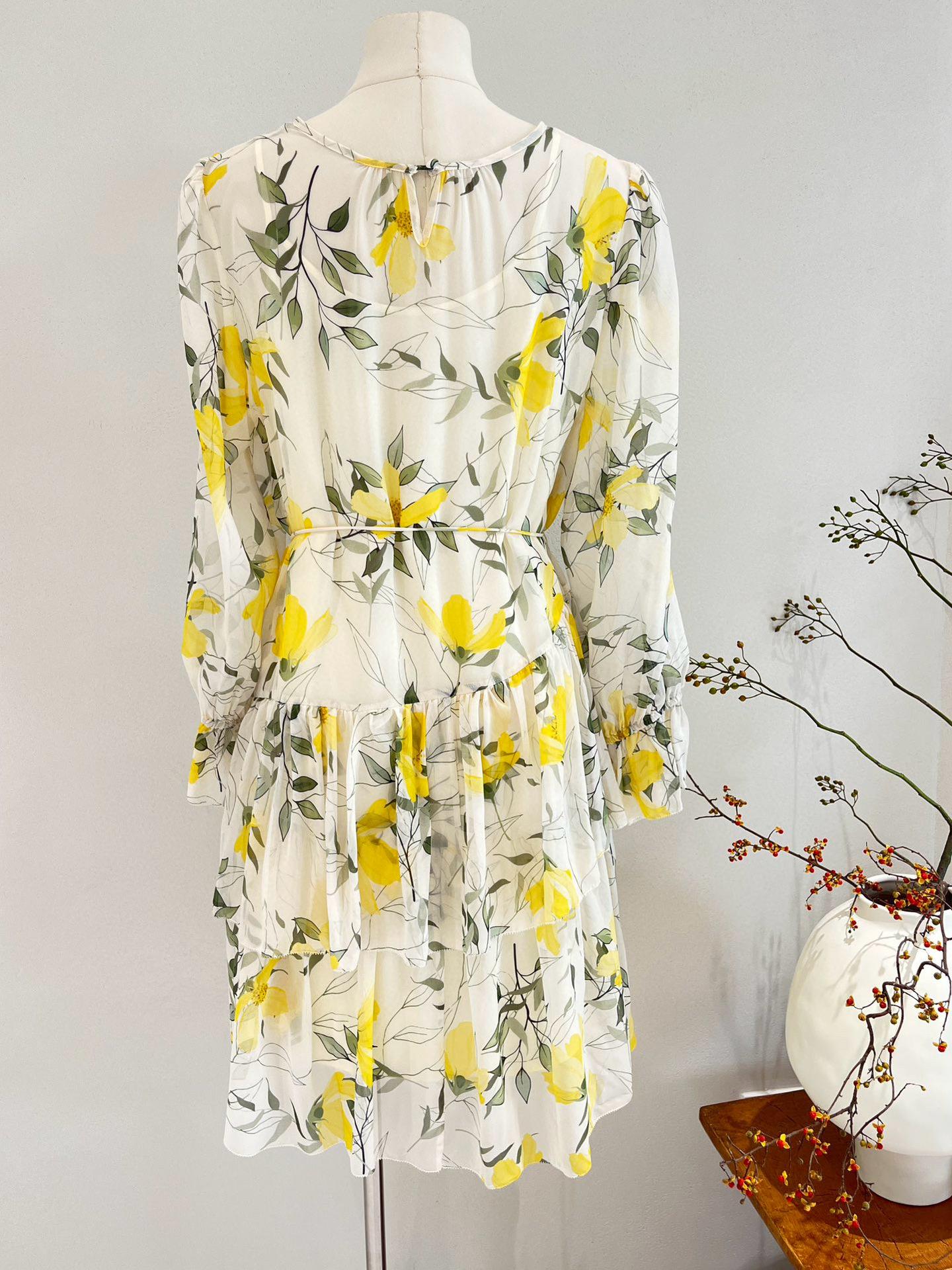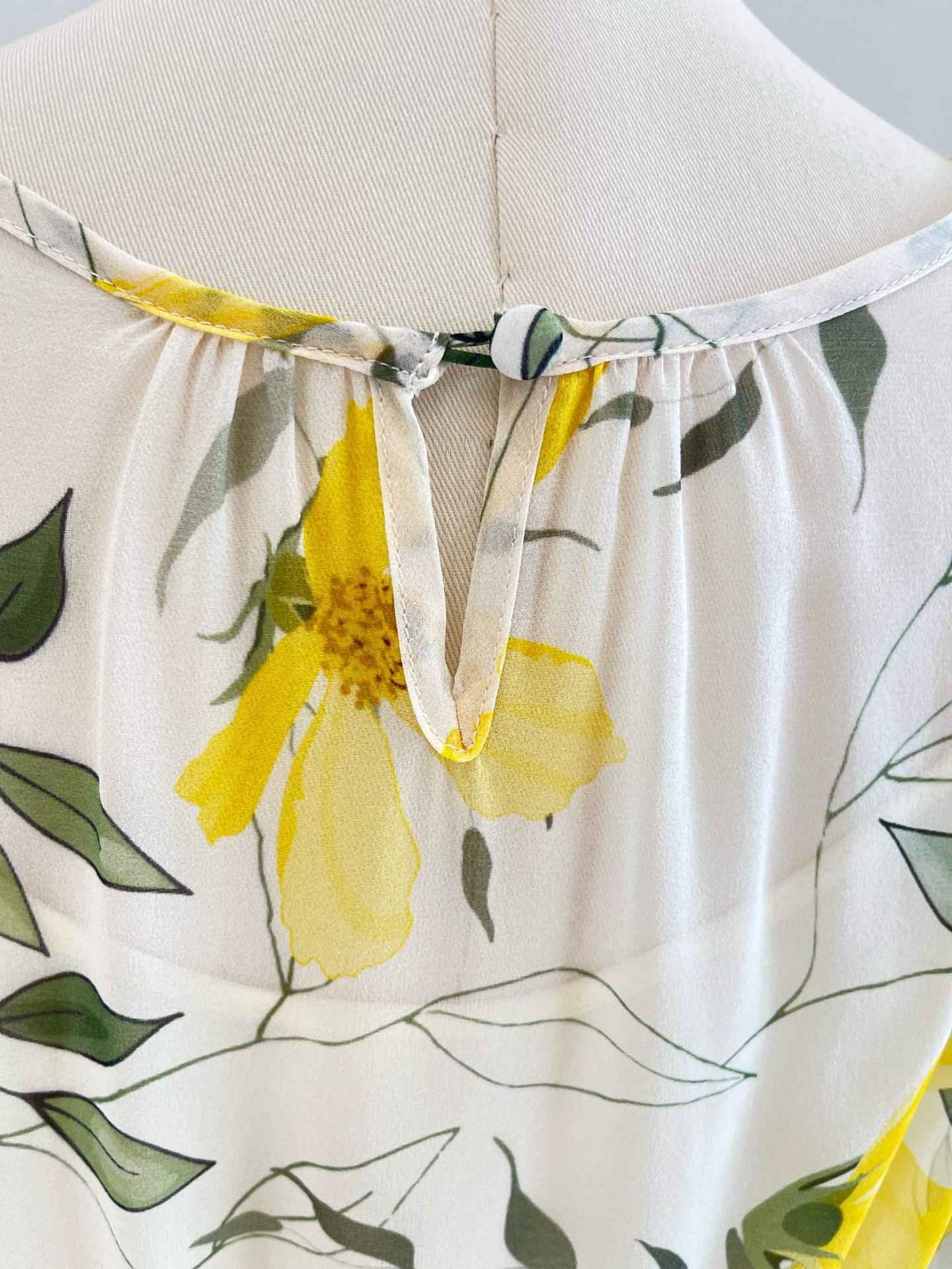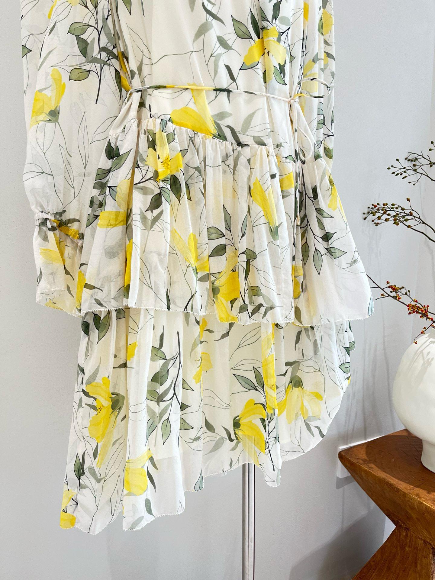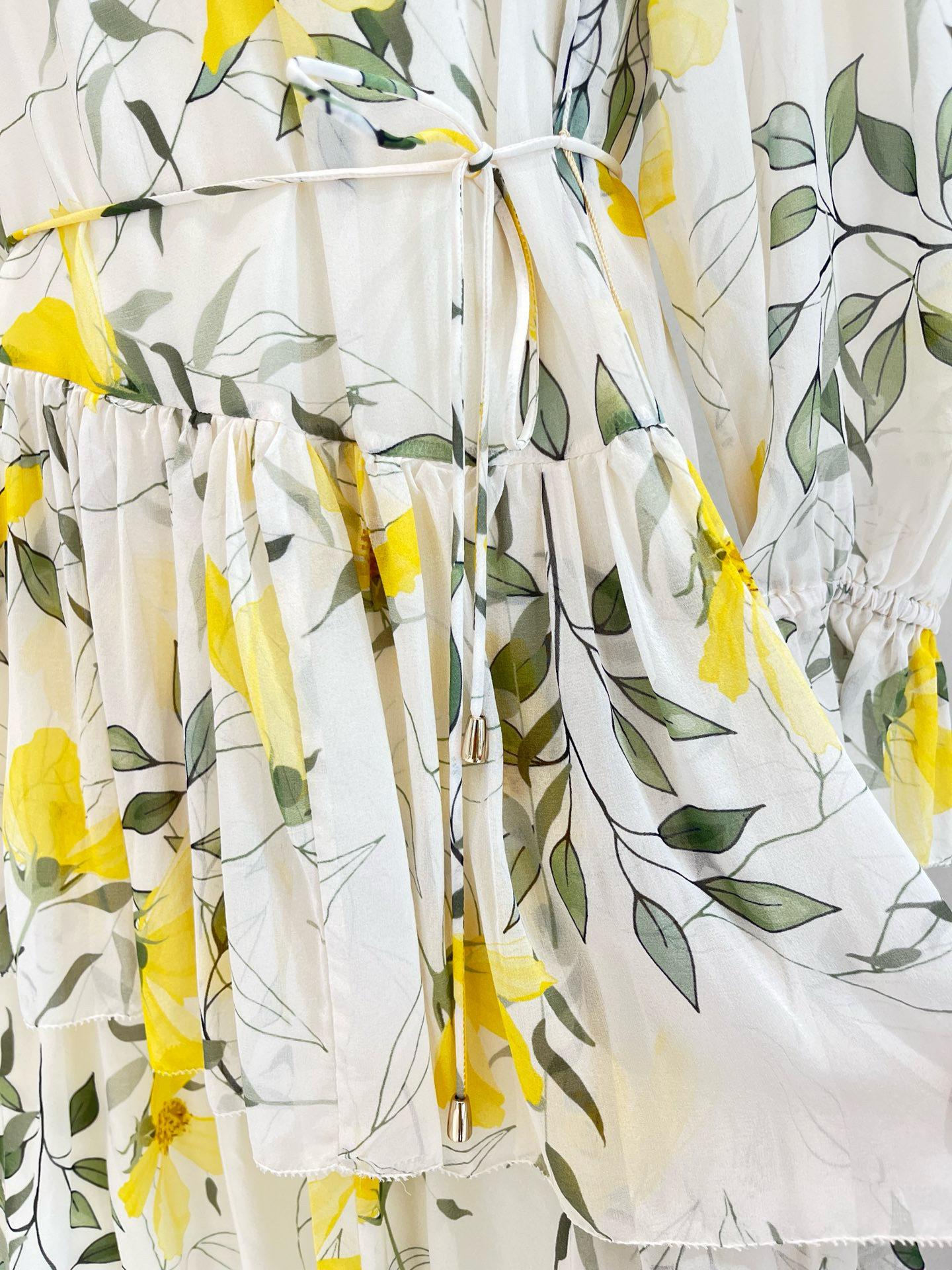 Vestido de seda para mujer, novedad primavera/verano 2025, estilo francés con estampado floral de Qiao, manga larga, falda 100 % seda morera.