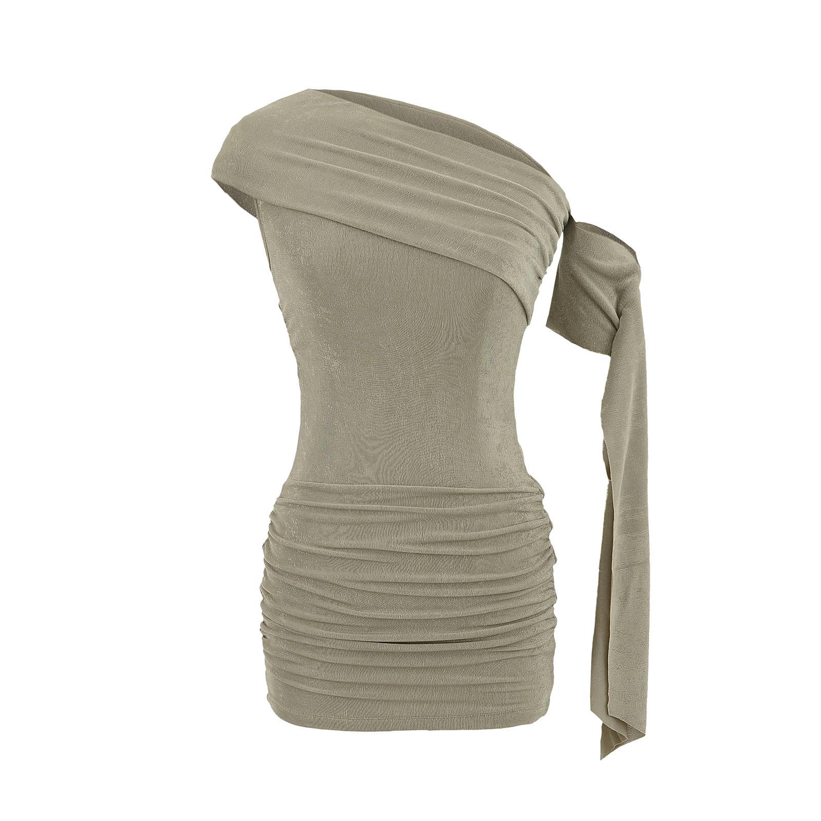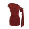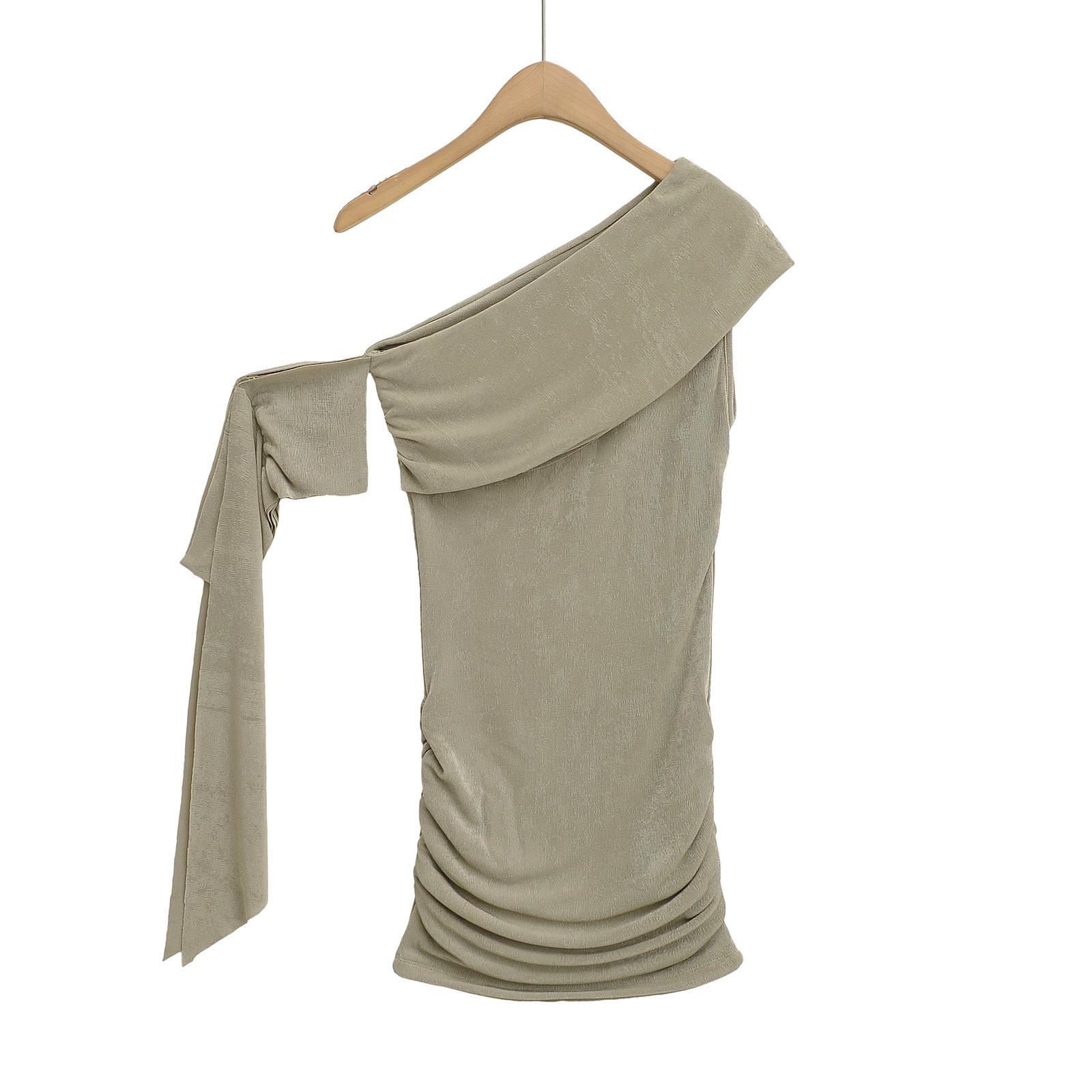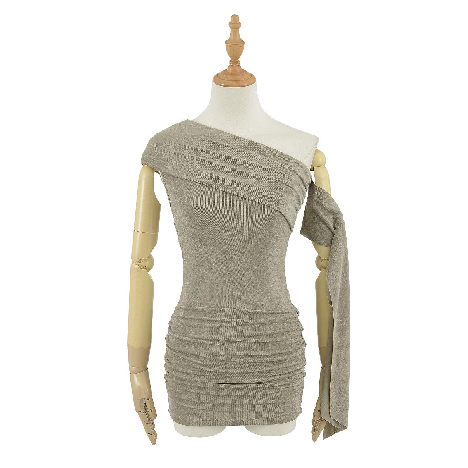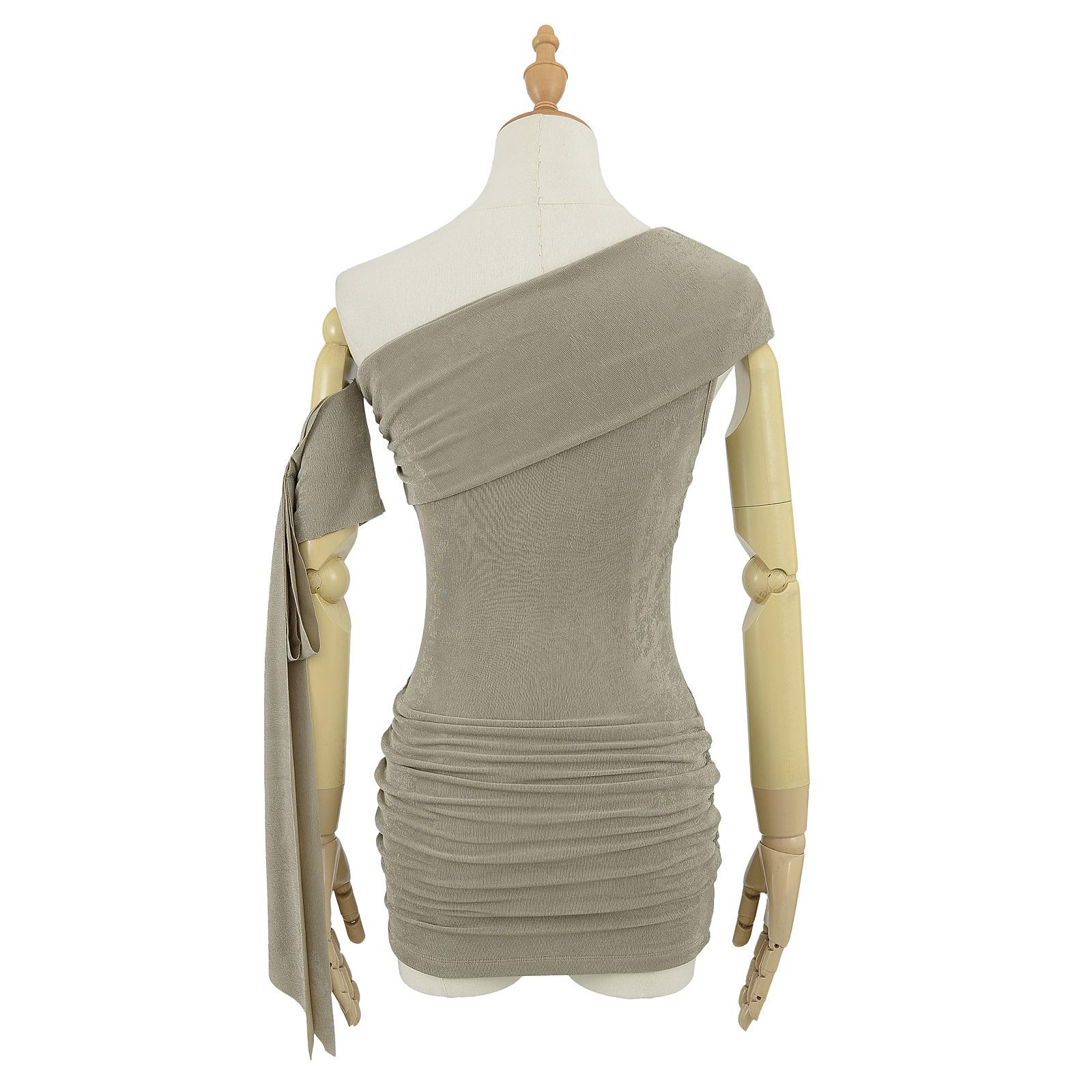 9152-Vestido Sexy Sexy sin Mangas Estilo Europeo y Americano para Mujer 2025 Nuevo Estilo Cuello Inclinado Cintura Adelgazante Look Falda de Cadera