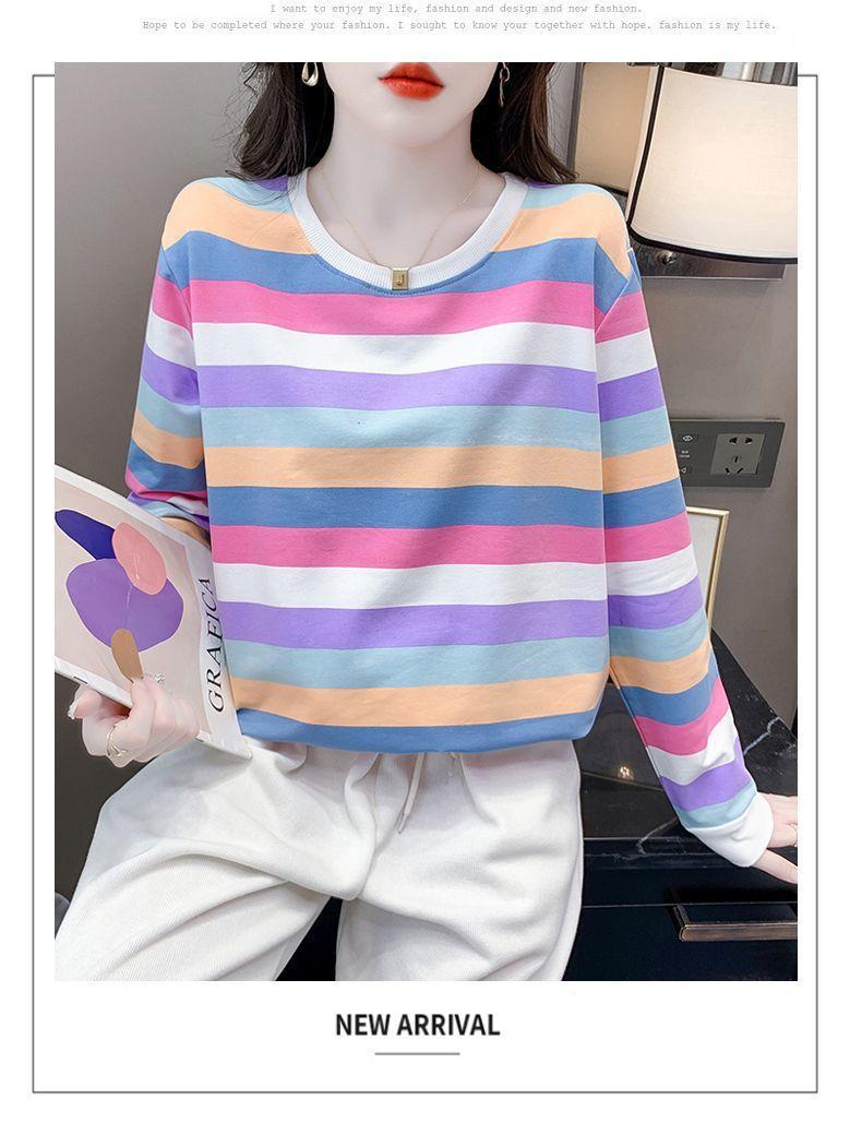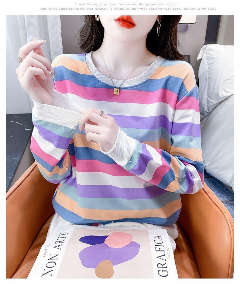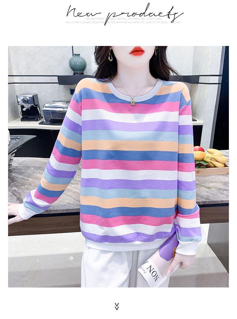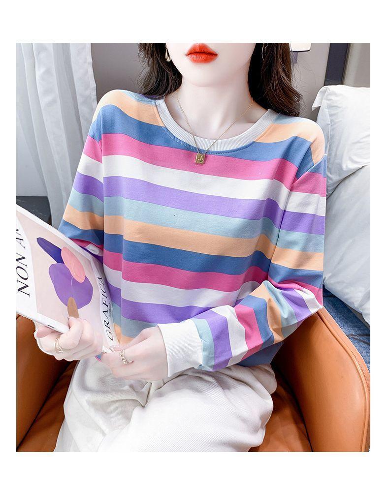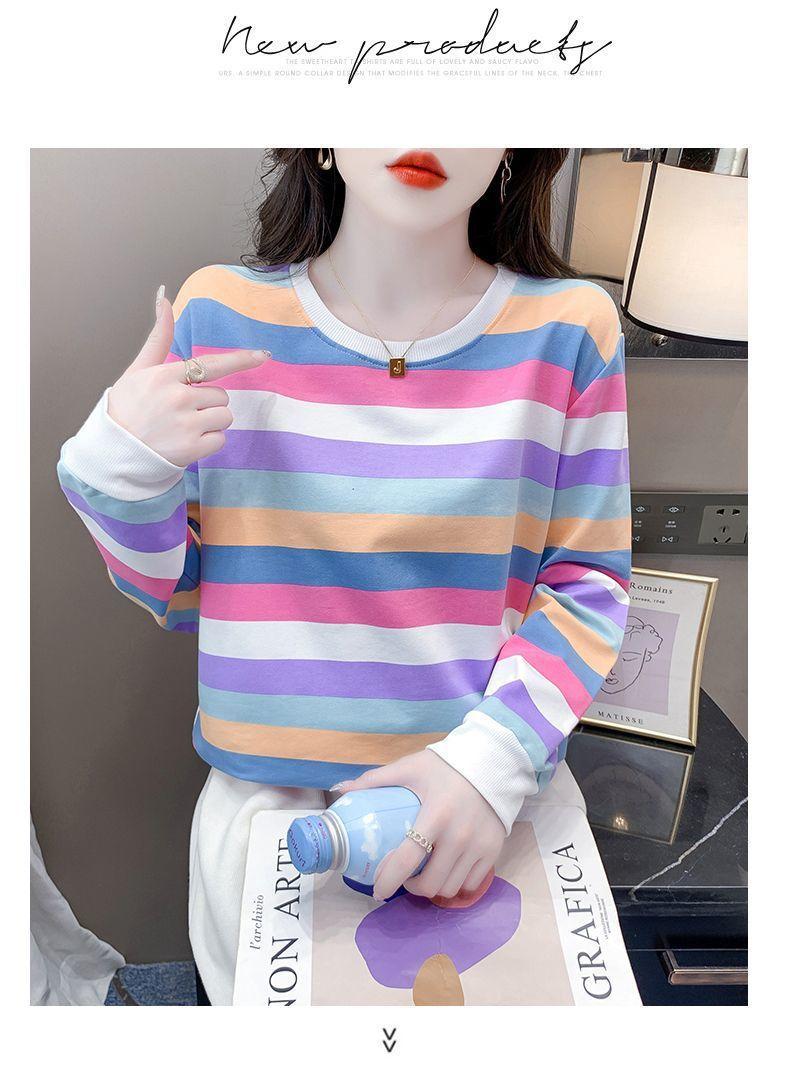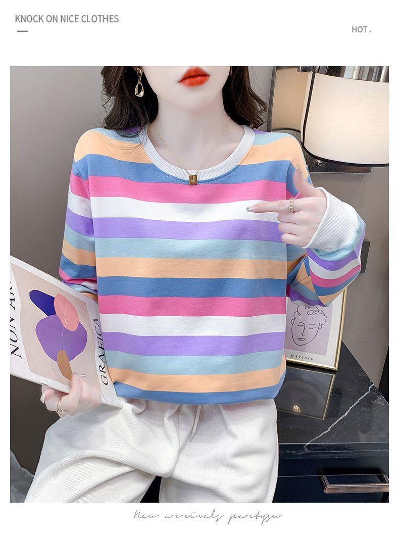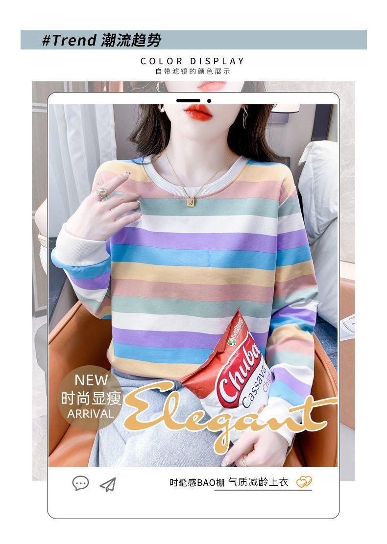Sudadera de Cuello Redondo a Rayas para Mujer Primavera y Otoño 2024 Nueva Elegante Reductora de Edad Moderna Holgada de Manga Larga Camiseta de Otoño