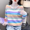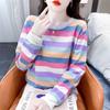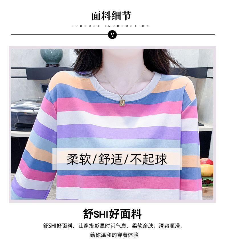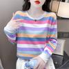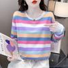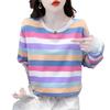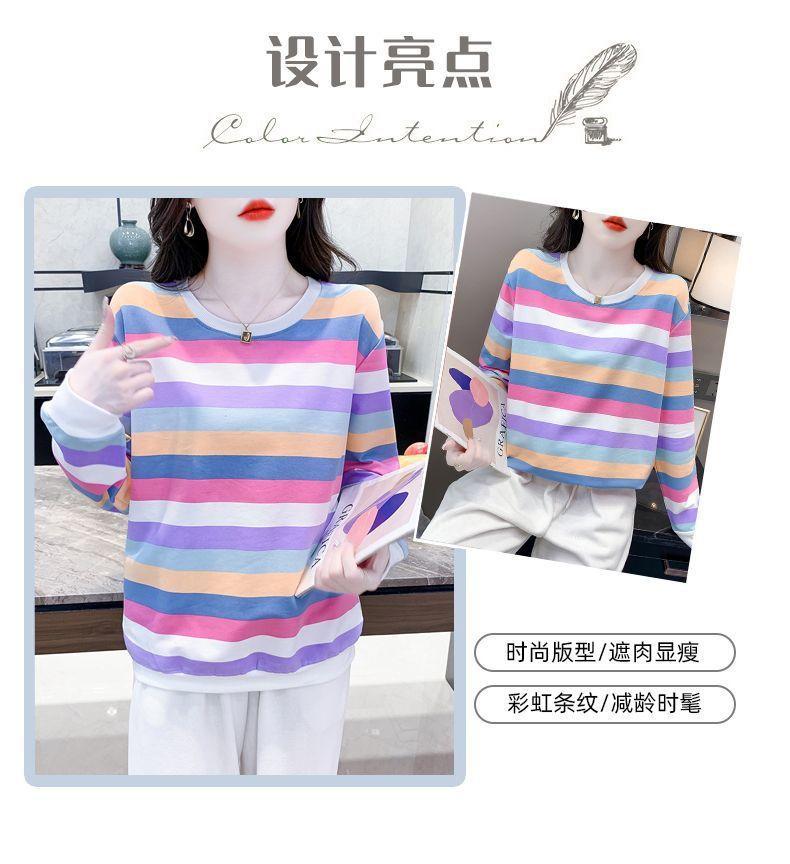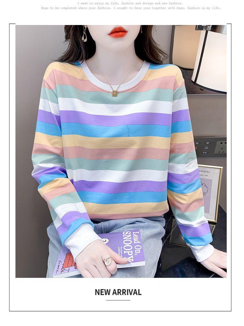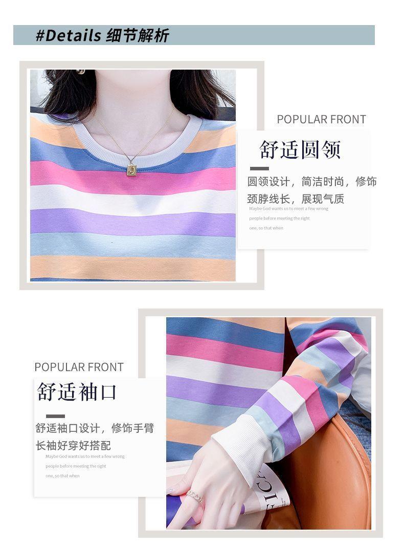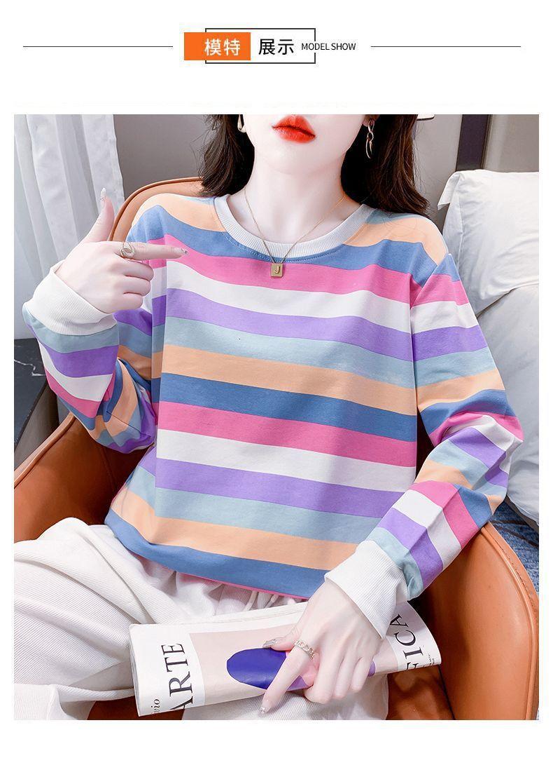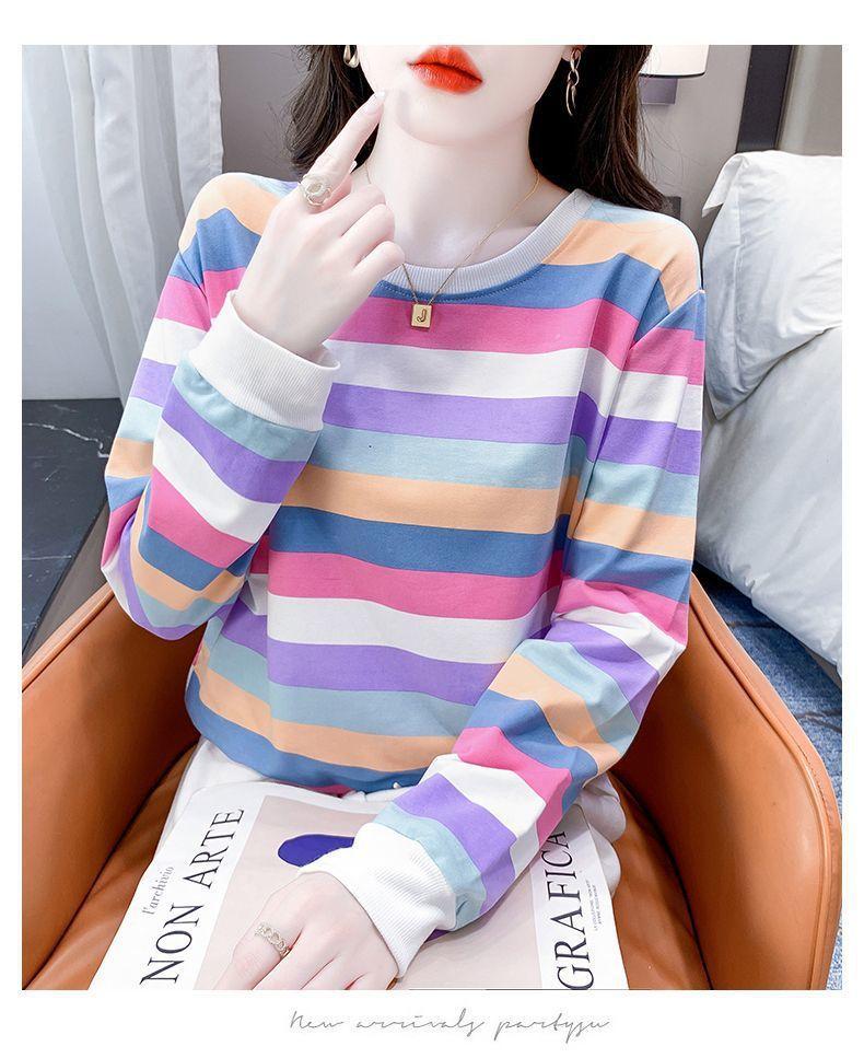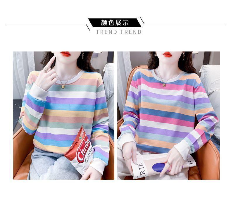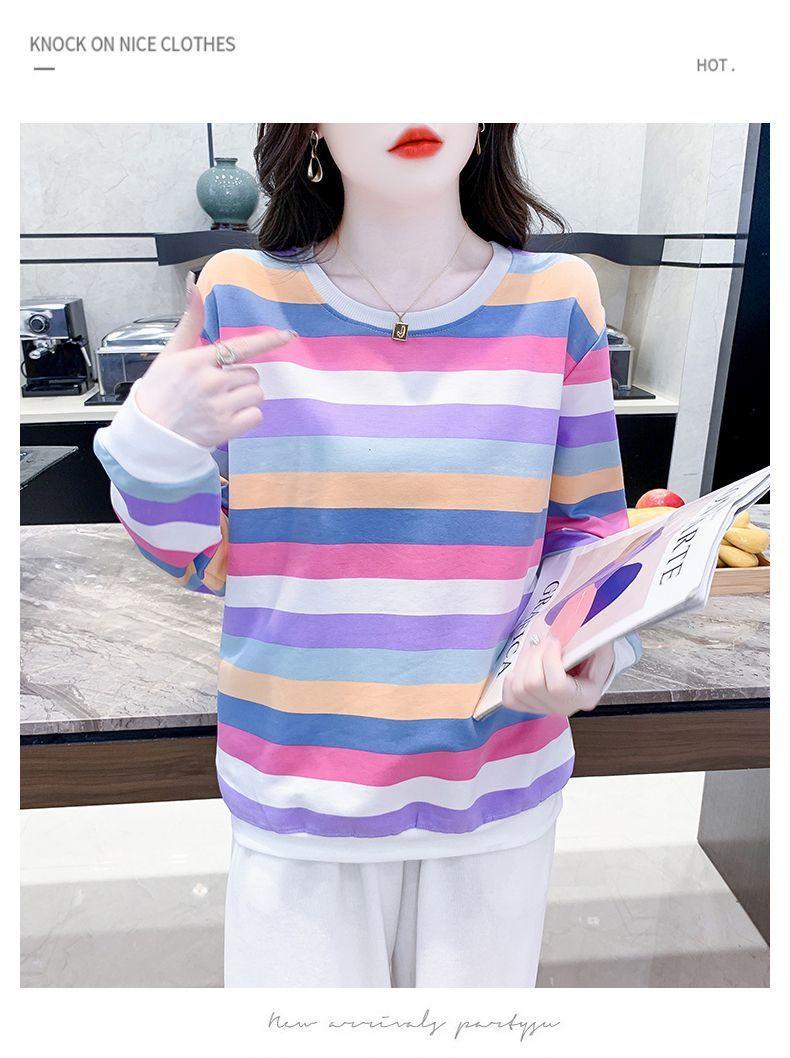 Sudadera de Cuello Redondo a Rayas para Mujer Primavera y Otoño 2024 Nueva Elegante Reductora de Edad Moderna Holgada de Manga Larga Camiseta de Otoño