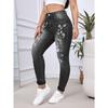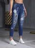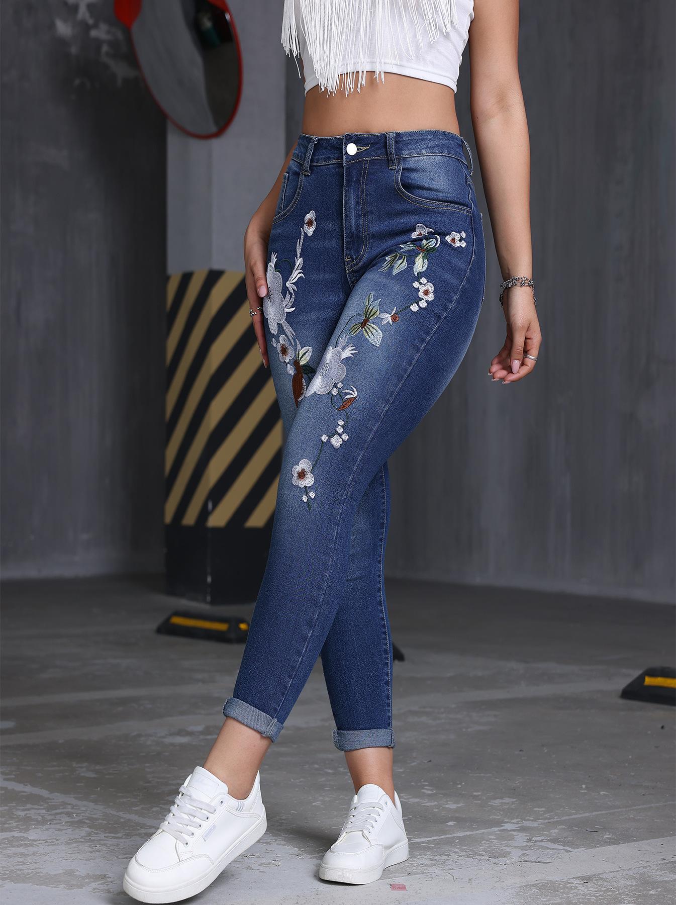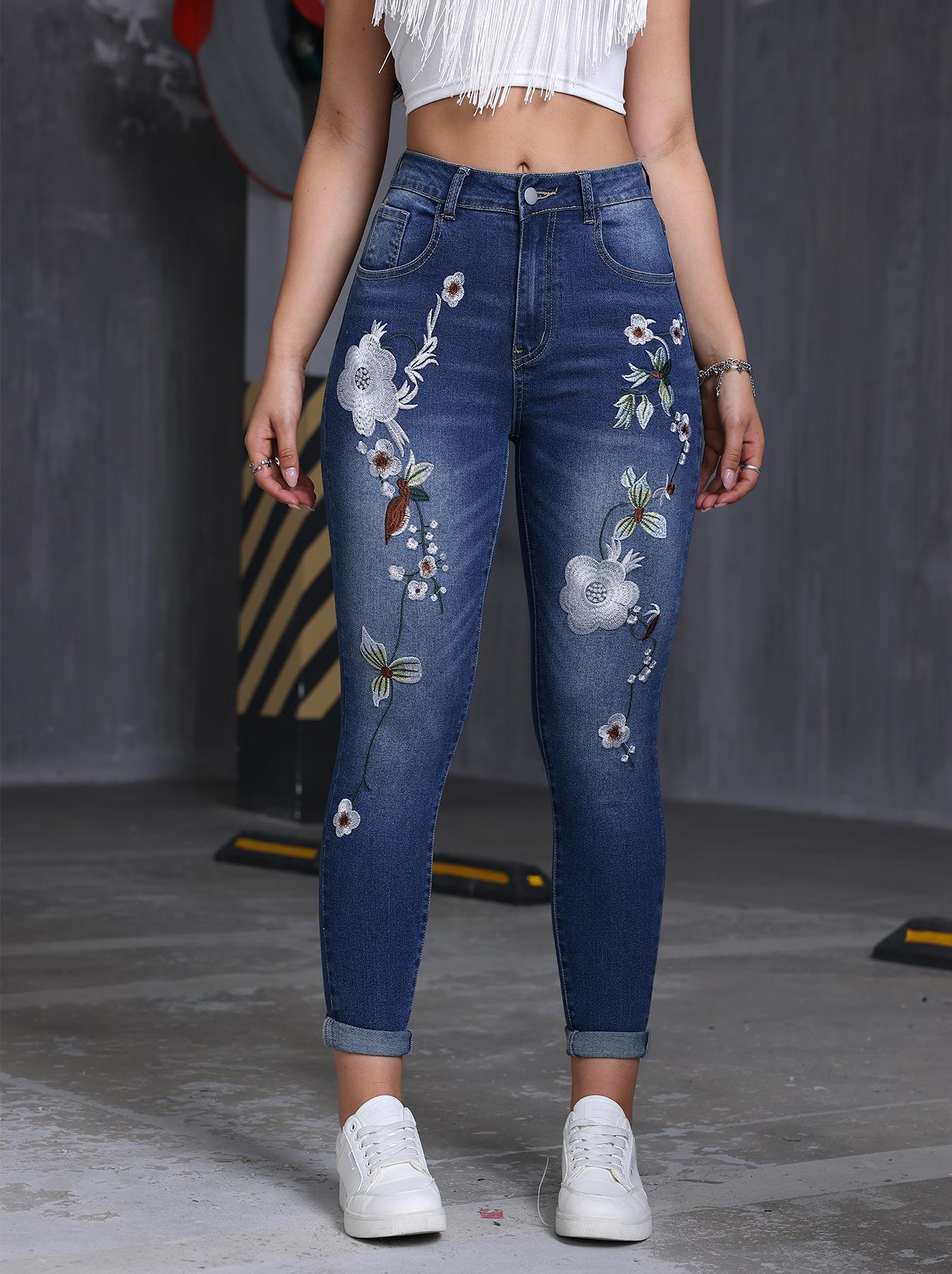 Jeans skinny europeos y americanos transfronterizos con bordado floral, corte slim, elegantes para mujer, mezclilla elástica, pantalones cropped