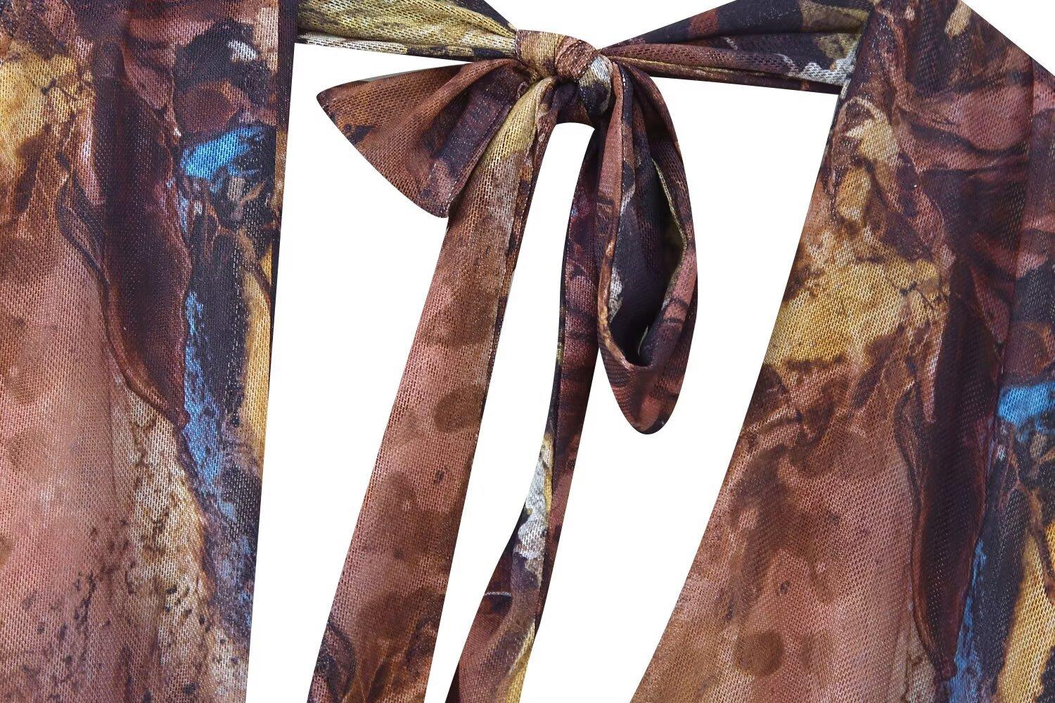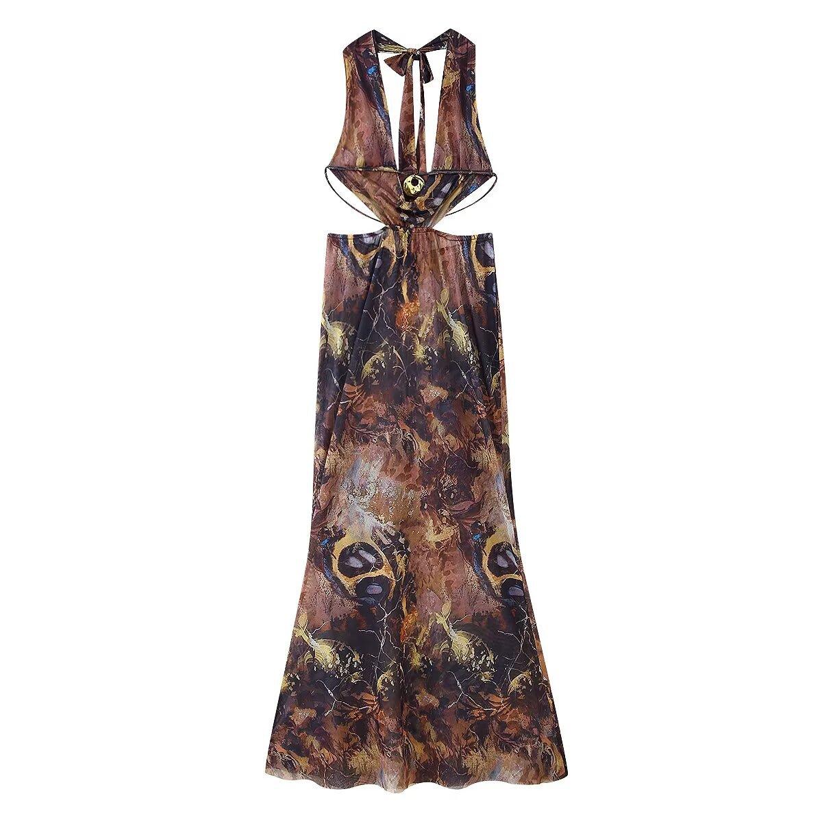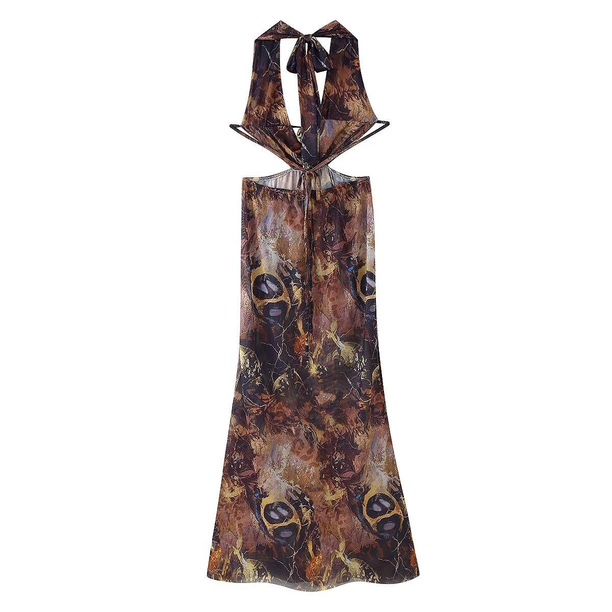 Verano 2025 Nuevo Europeo y Americano Transfronterizo Elegante Cuello Halter Estampado Sin Mangas Vestido de Cintura para Mujer W017 194