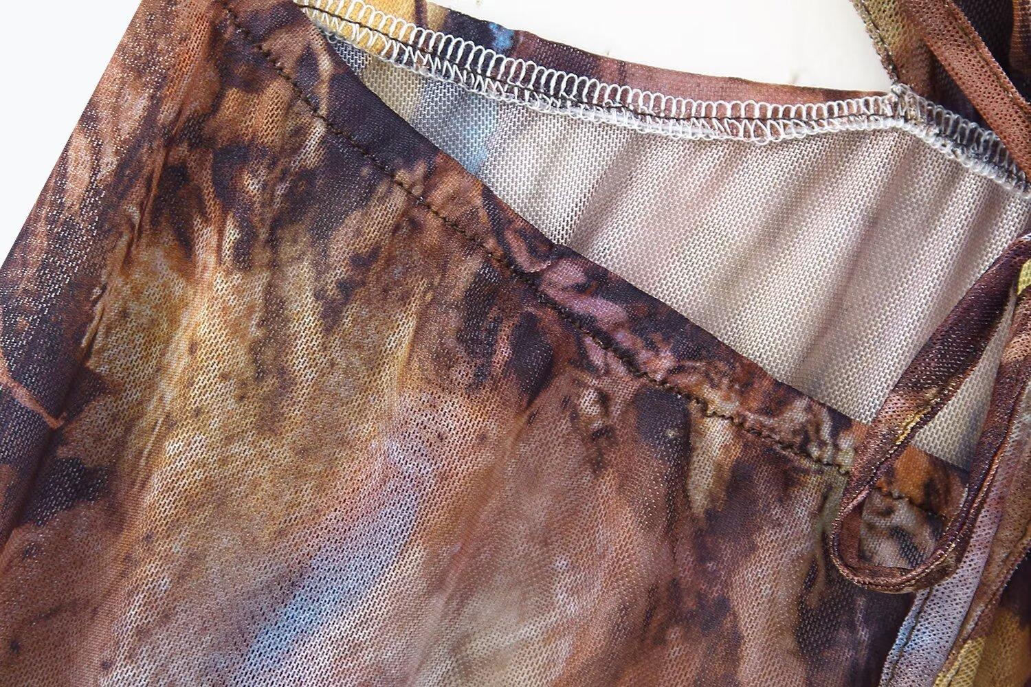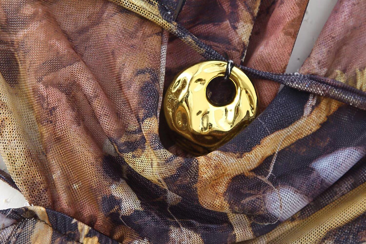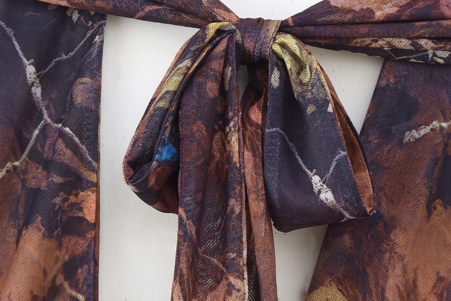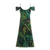 Verano 2025 Nuevo Europeo y Americano Transfronterizo Elegante Cuello Halter Estampado Sin Mangas Vestido de Cintura para Mujer W017 194