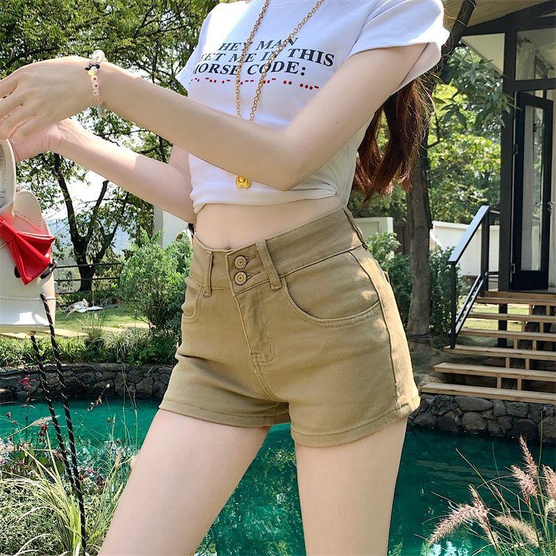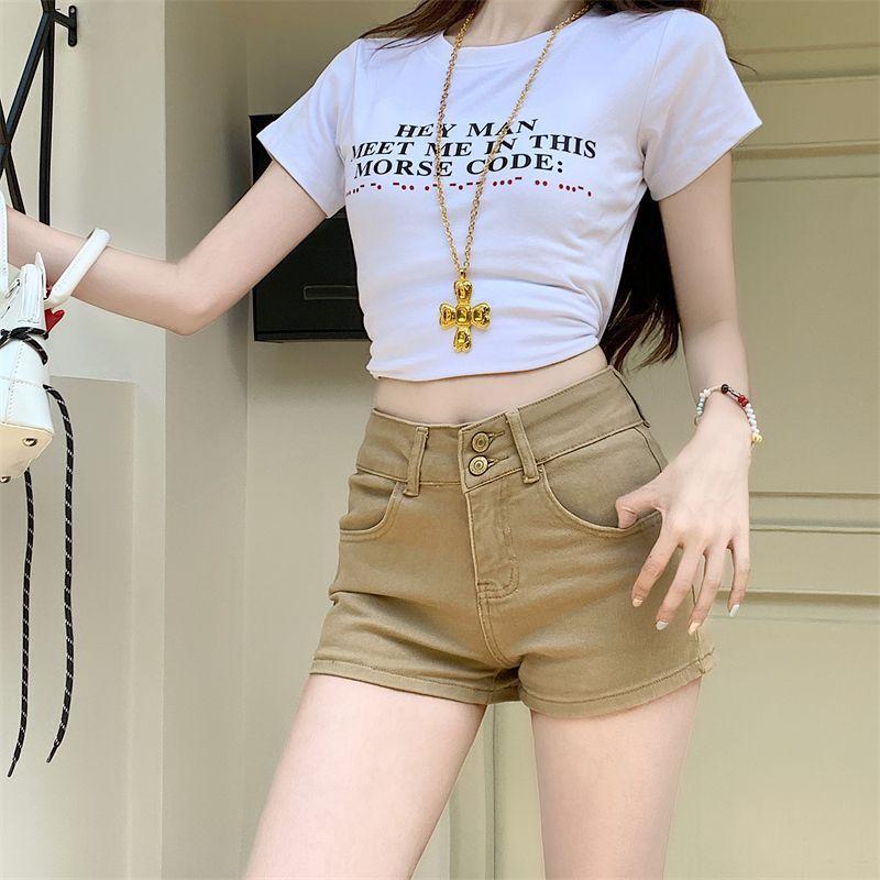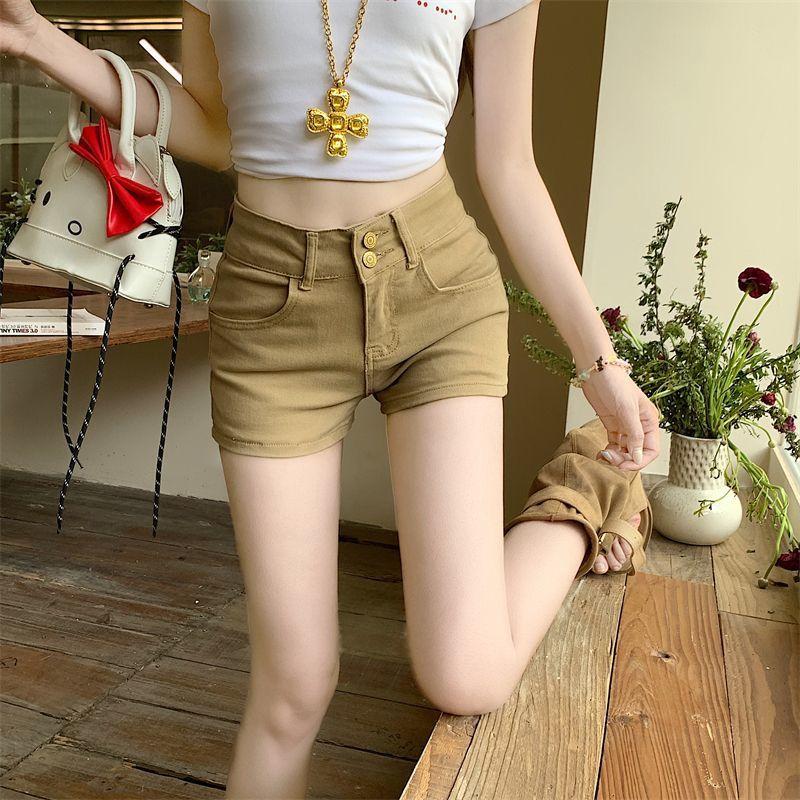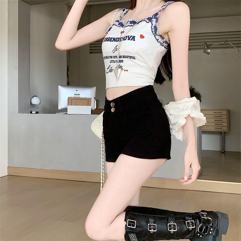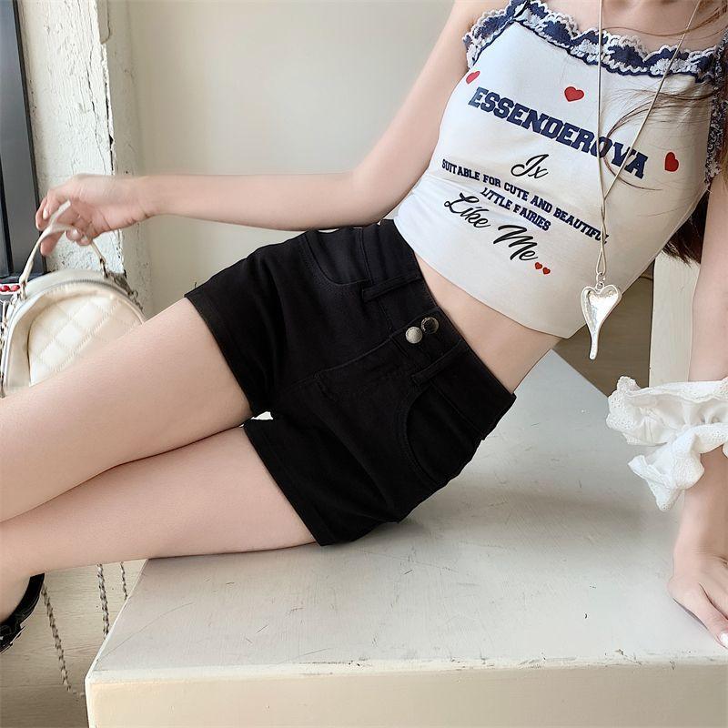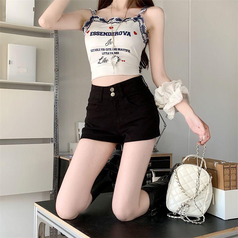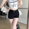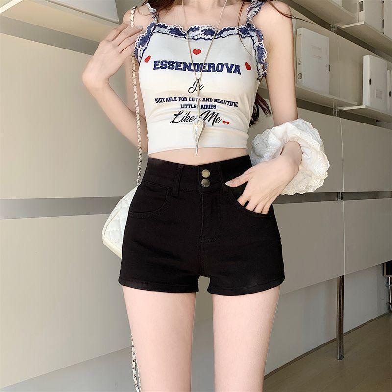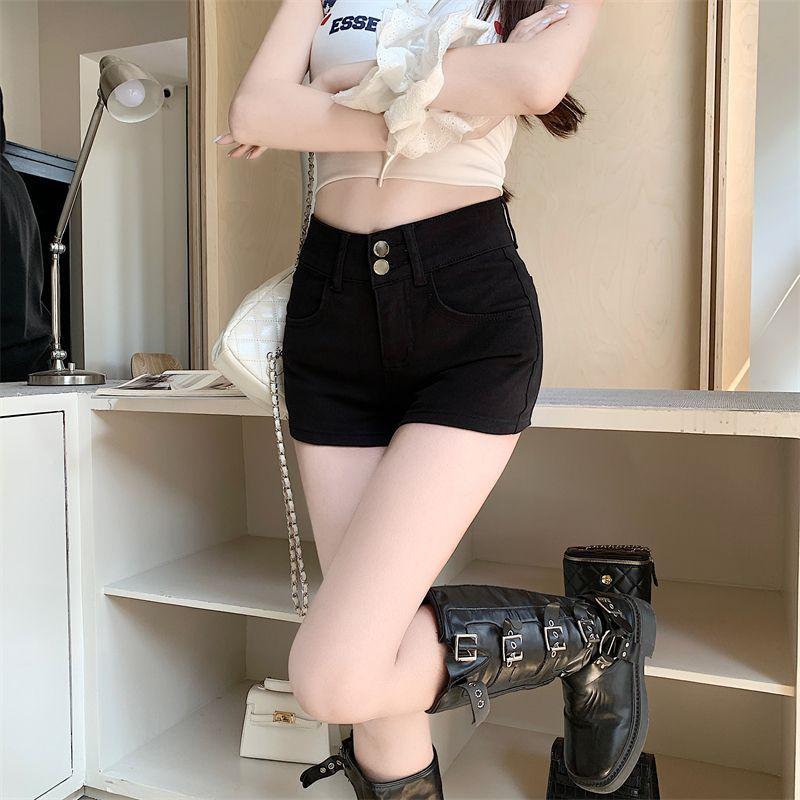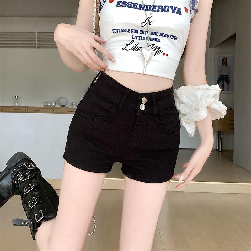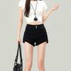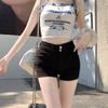 Shorts de mezclilla negros para mujer 2025 Verano Nuevo Cintura alta Slim Americano Sexy Petite Ajustado Línea A Pantalones cortos