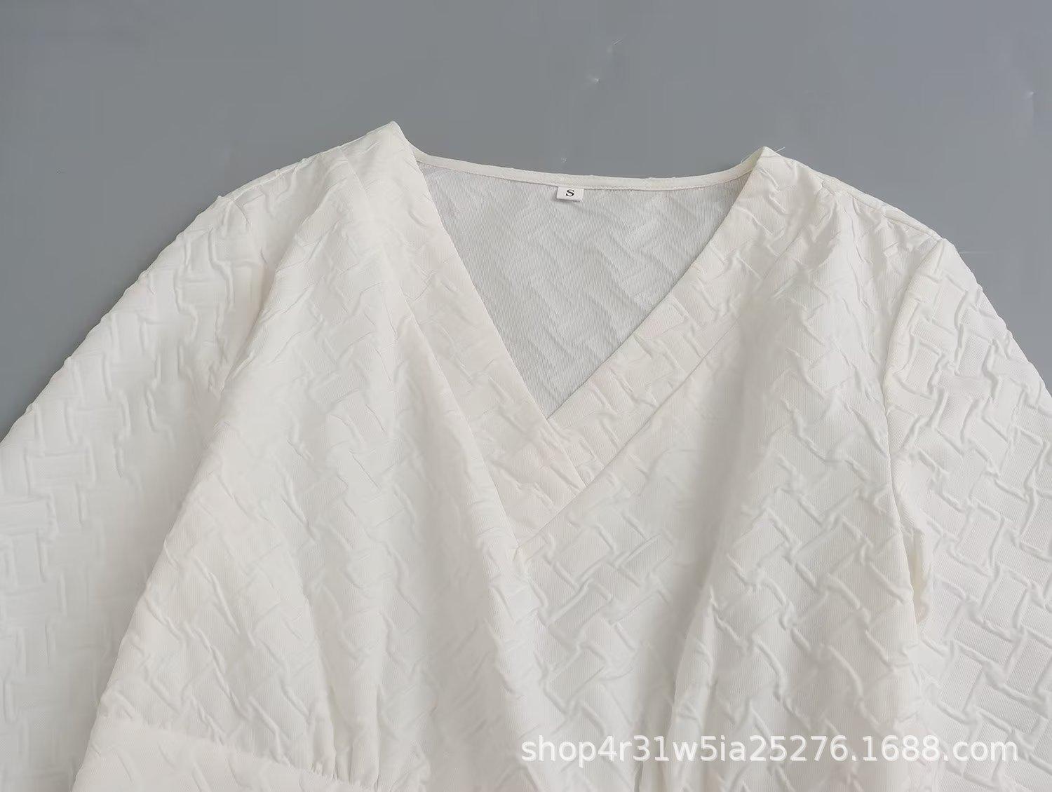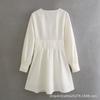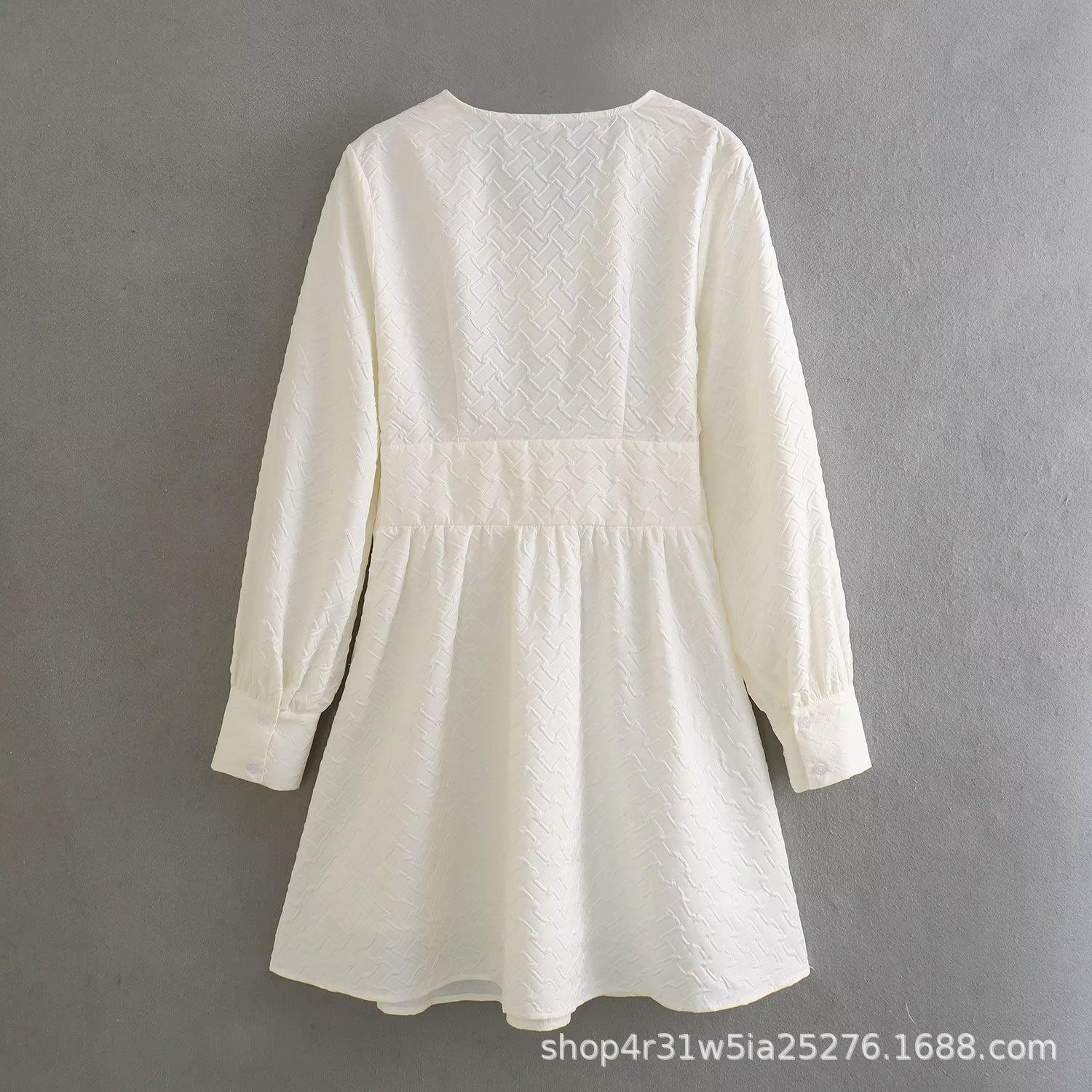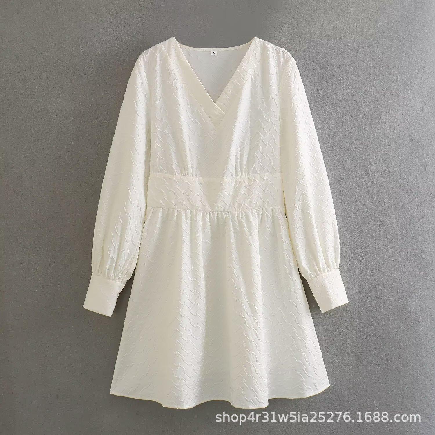 Otoño 2023 nueva ropa de mujer retro francesa holgada adelgazante cuello en V manga larga vestido con textura falda corta al por mayor