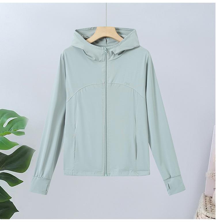 Nuevo Verano Transfronterizo para Mujer Ropa de Protección Solar Anti-Uv Camisa de Protección Solar Cárdigan con Cremallera con Capucha Chaqueta de Protección Solar de Seda Helada