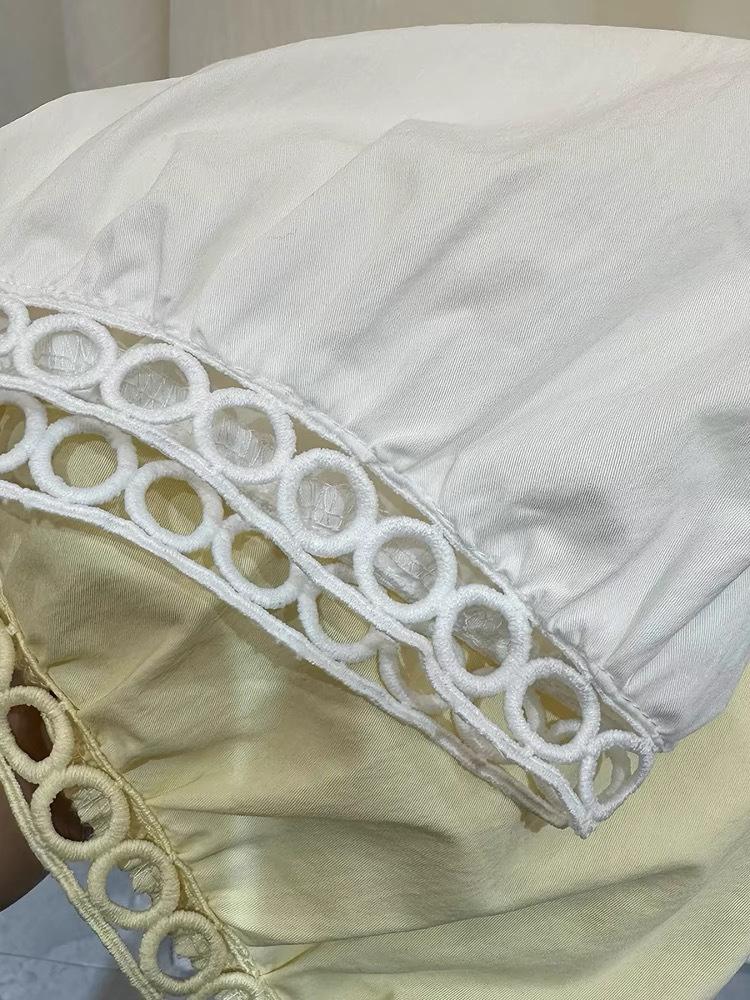 2025 Verano Nuevo Estilo Europeo Diseño de Encaje Calado Cintura Alta Adelgazantes Pierna Ancha Linterna Pantalones Recortados