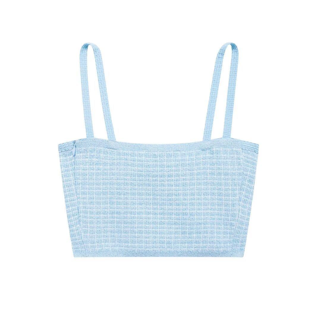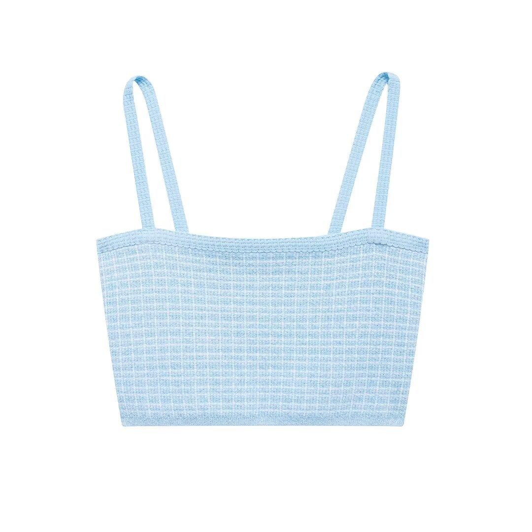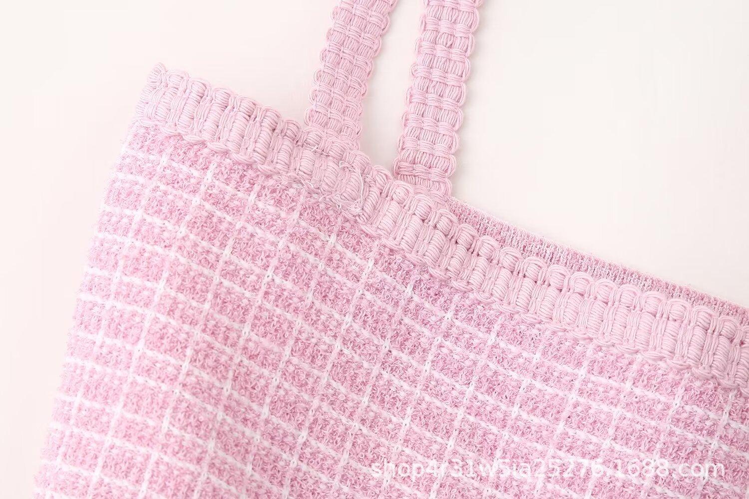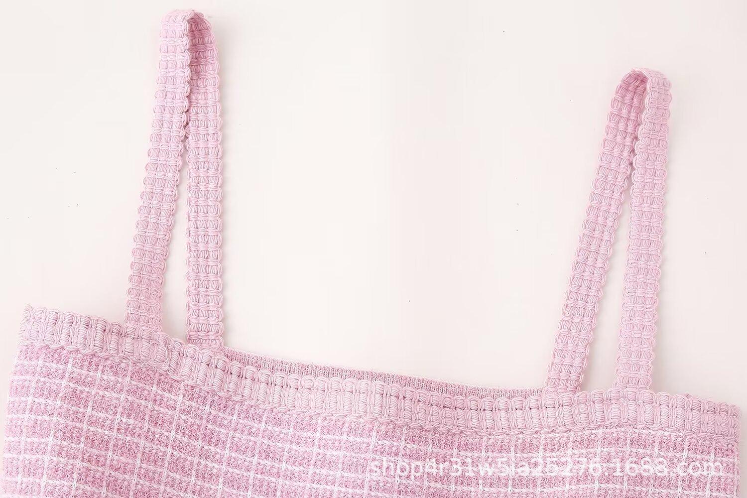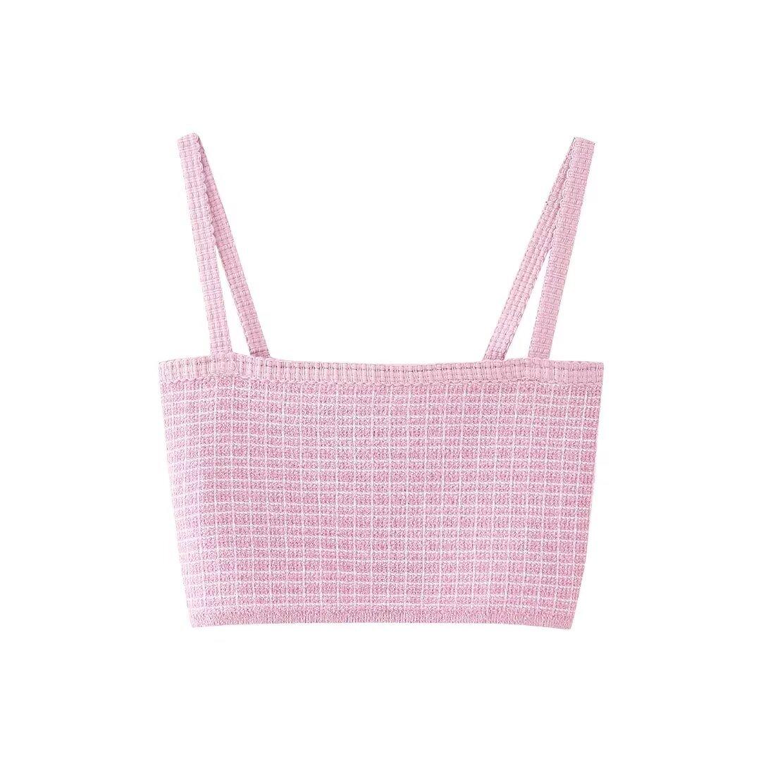 Ropa de Mujer de Estilo Europeo y Americano para Comercio Exterior Nueva Moda 2024 Versátil Chaleco de Punto a Cuadros con Tirantes y sin Mangas Venta al por Mayor