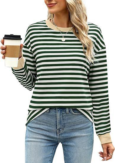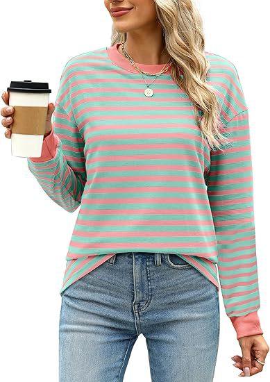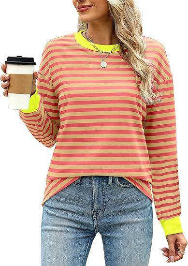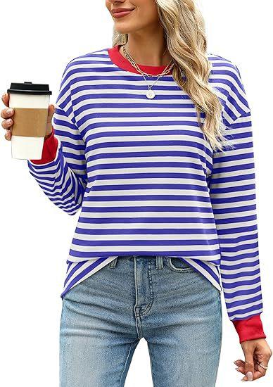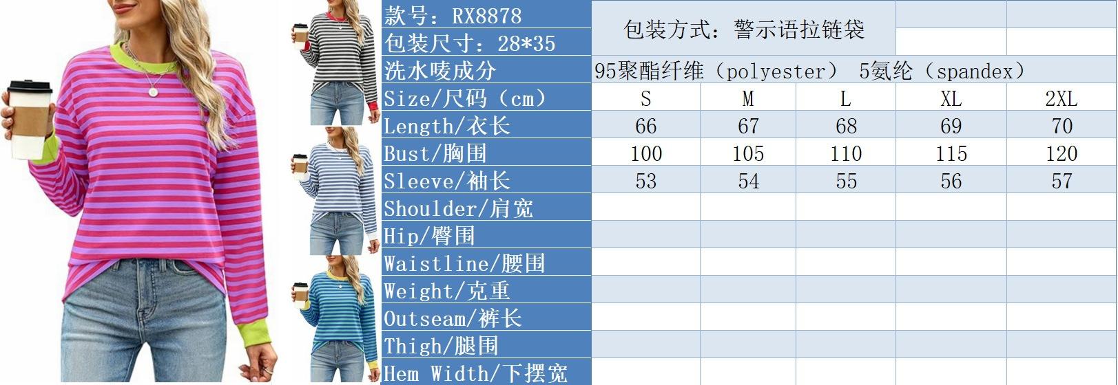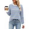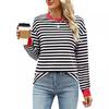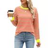 Ropa de mujer europea y americana transfronteriza 2024 Amazon otoño e invierno nueva moda contraste suelto cuello redondo suéter a rayas top mujer
