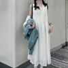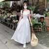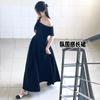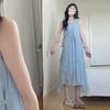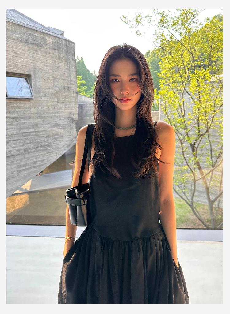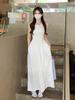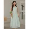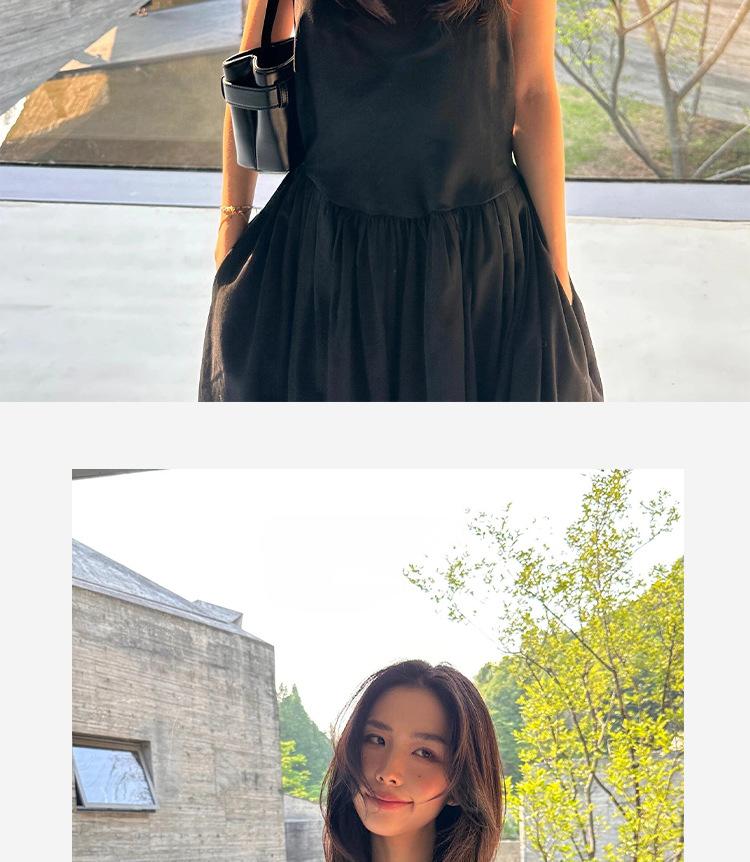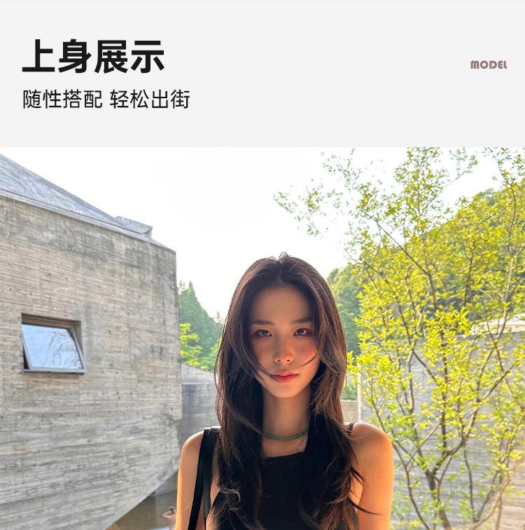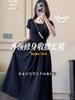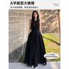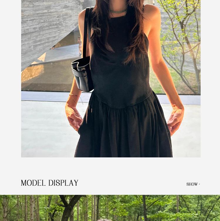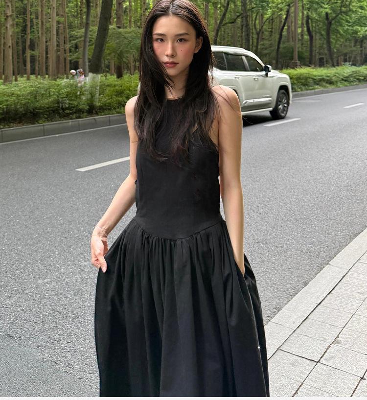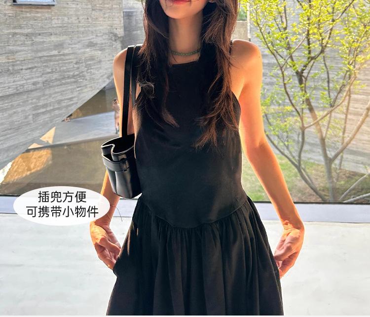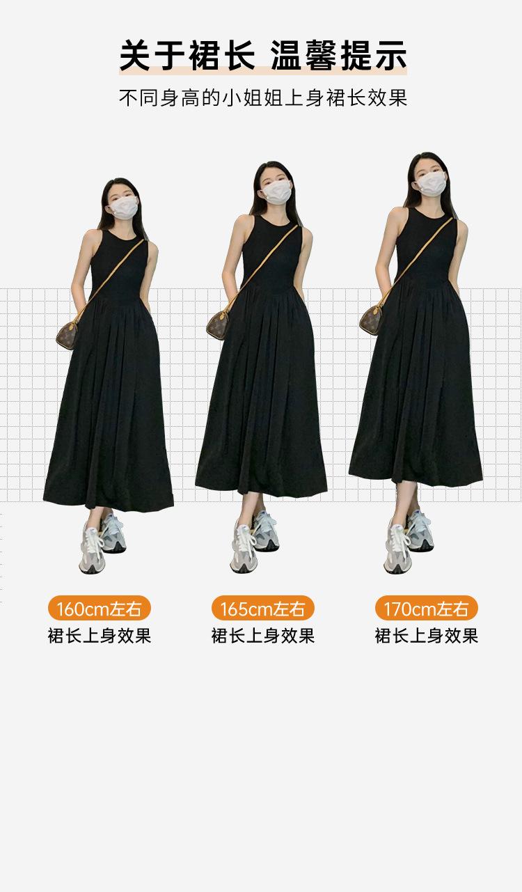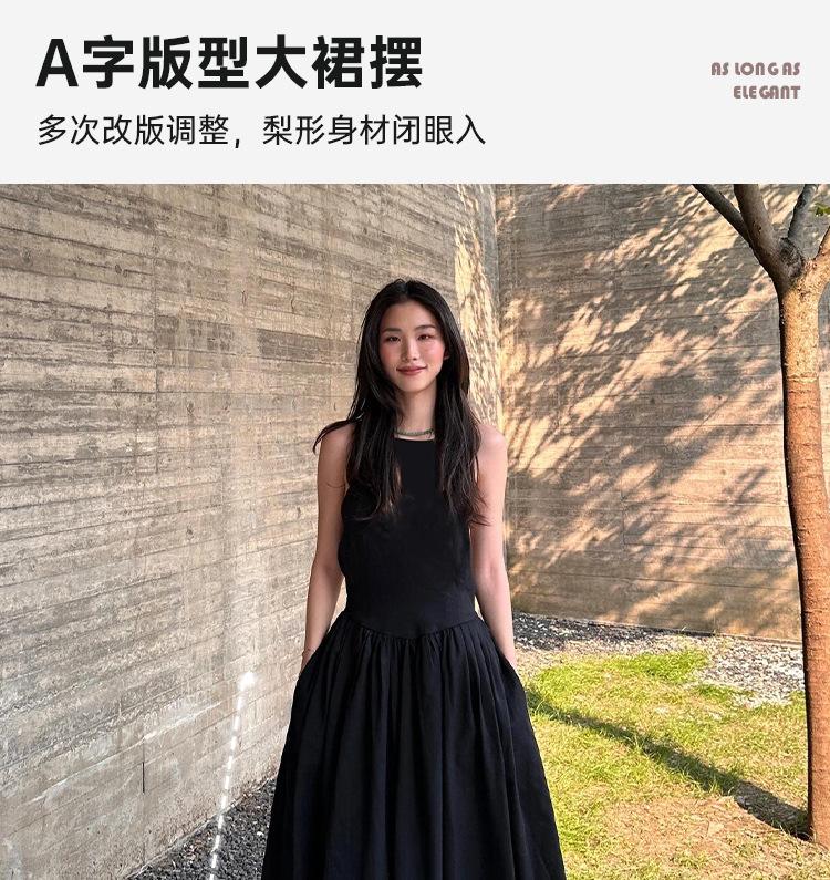 Vestido Chaleco Negro de Cuello Redondo para Mujer Verano 2025 Nuevo Sin Mangas Vacaciones en la Playa Cintura Entallada Look Adelgazante Falda Larga Línea A