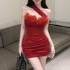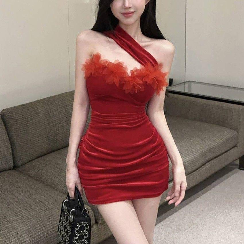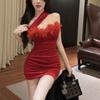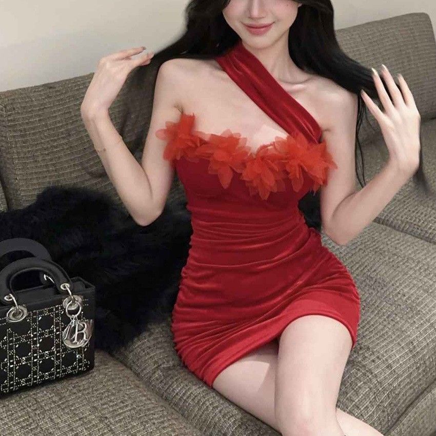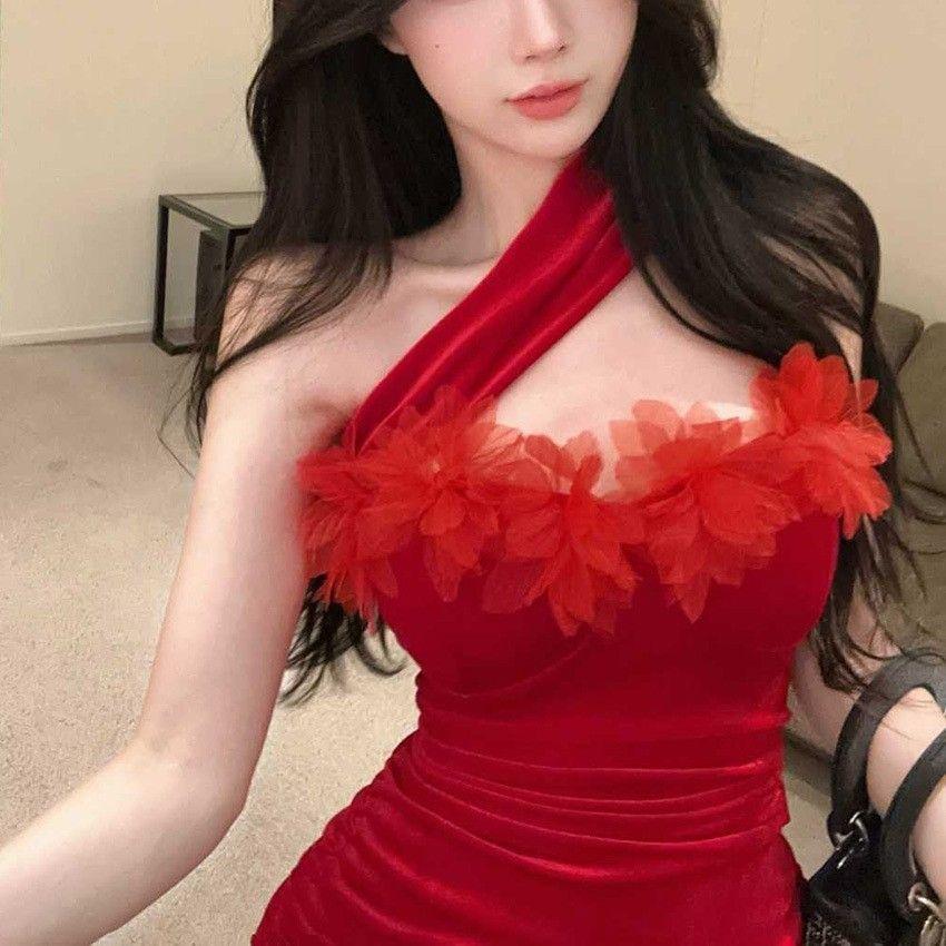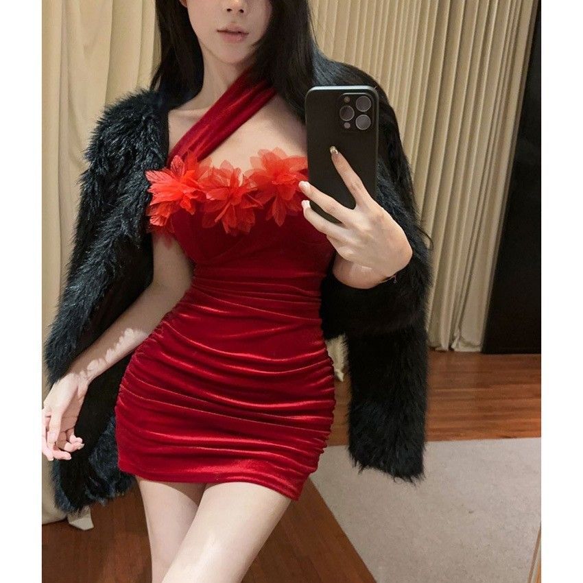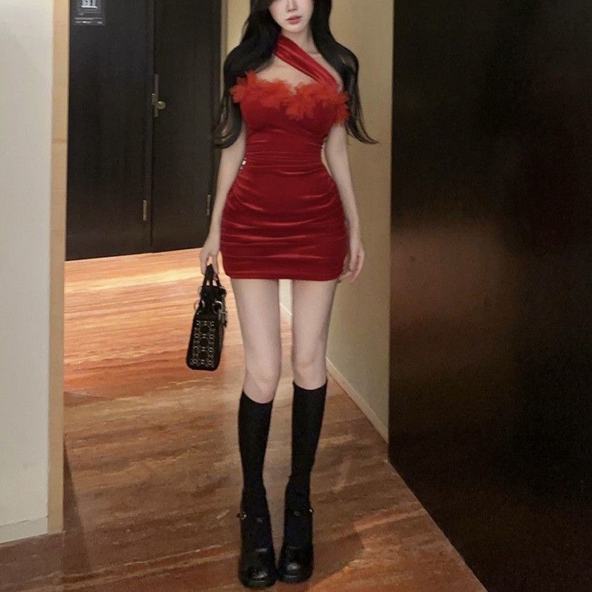 Vestido Moderno Atmosférico para Mujer 2025 Lujuria Pura Sexy Elegante Falda Ajustada a las Caderas Rojo Navidad Falda Top de Tubo