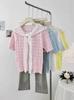Chal Dulce de Encaje Suéter de Manga Corta con Cuello Redondo para Mujer Diseño de Verano Nicho Recorte Patrón de Ganchillo Look Adelgazante Top para Mujer
