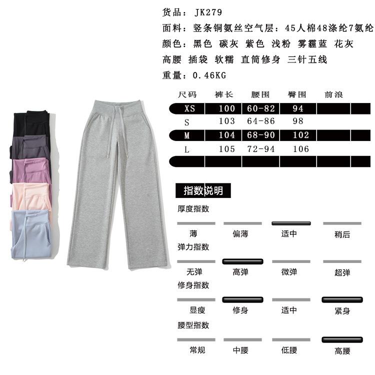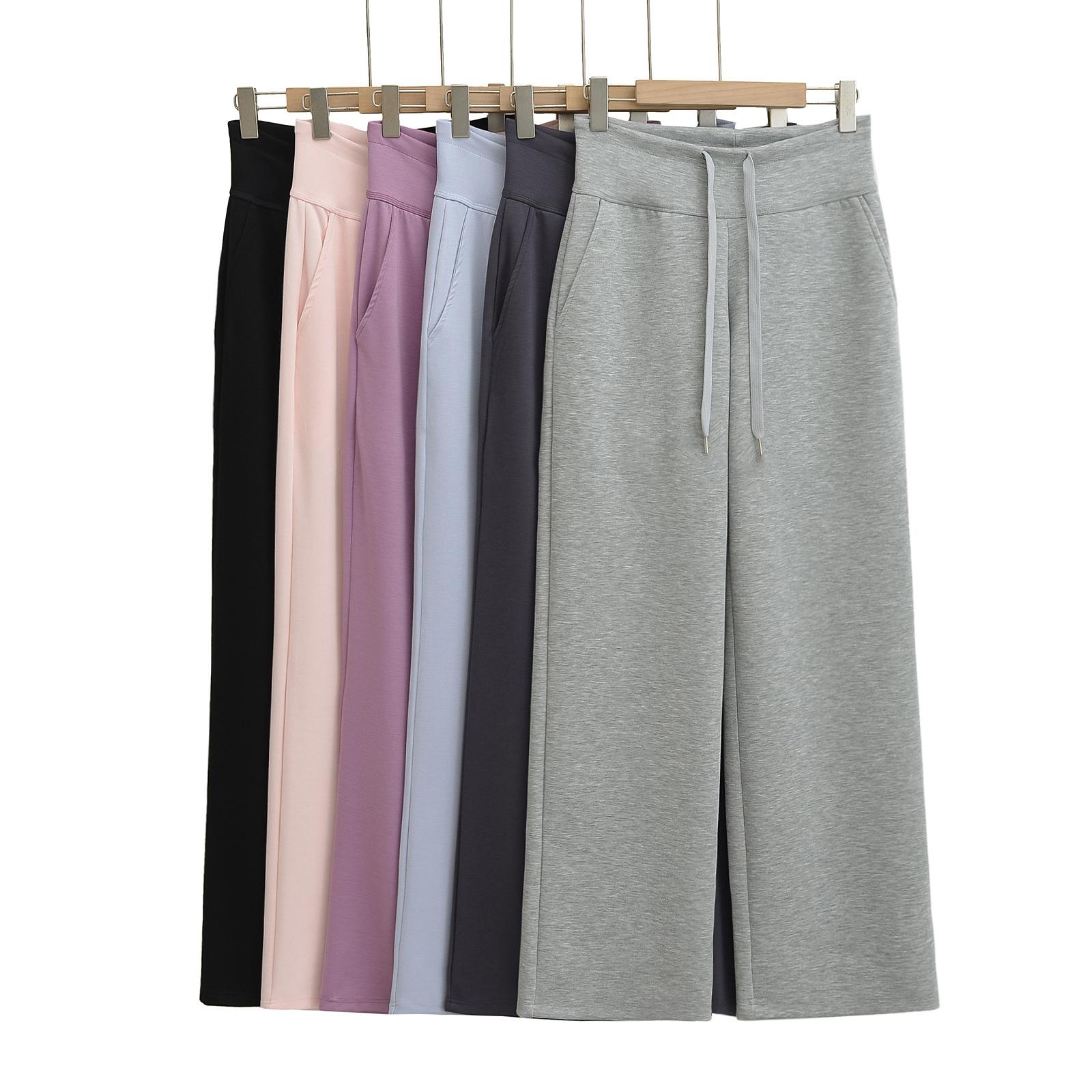 279-2025 Pantalones Rectos de Pierna Ancha Sexy de Cintura Alta para Mujer de Estilo Europeo y Americano Nuevos Pantalones Deportivos Casuales Versátiles Sexys