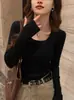 2025 Nueva Ropa de Punto de Manga Larga para Mujer, Ajuste Slim, Camiseta Básica de Cuello Cuadrado, Top de Escote Bajo, Moderna y Adelgazante, No Exigente