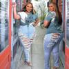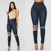 Ropa Europea y Americana Aliexpress Ebay Nuevo Leggings Ajustados Elásticos Jeans Pantalones de Mujer con Agujero Grande