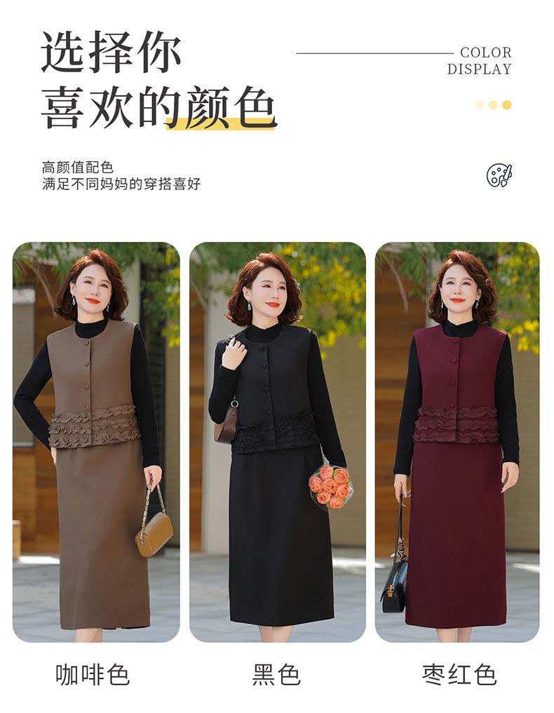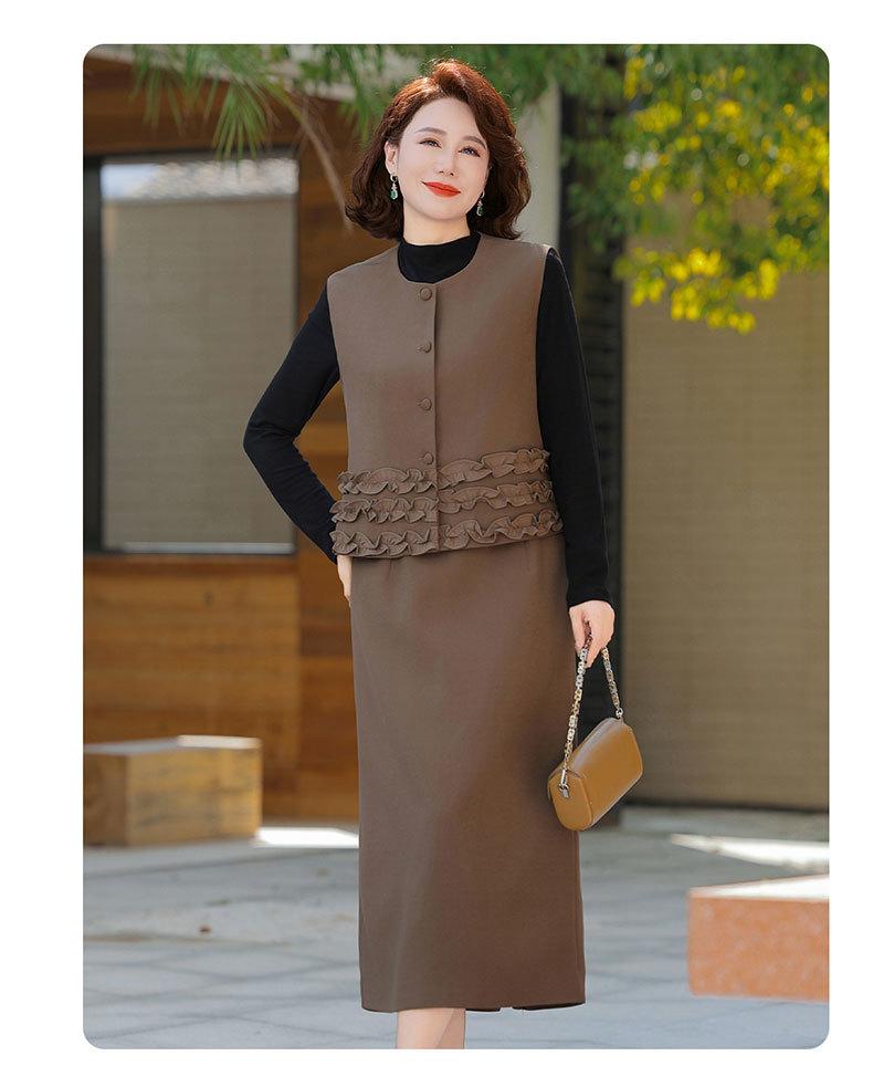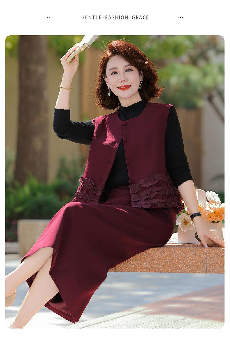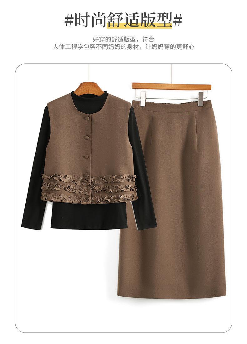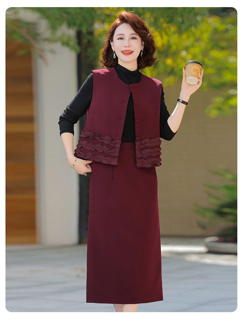 Chaleco elegante y a la moda de otoño, primavera e invierno para mamá, camisa básica, falda, chaqueta, conjunto versátil de manga larga para mujeres de mediana edad