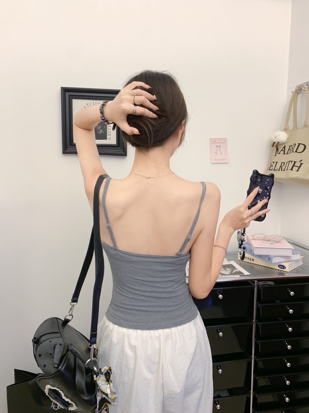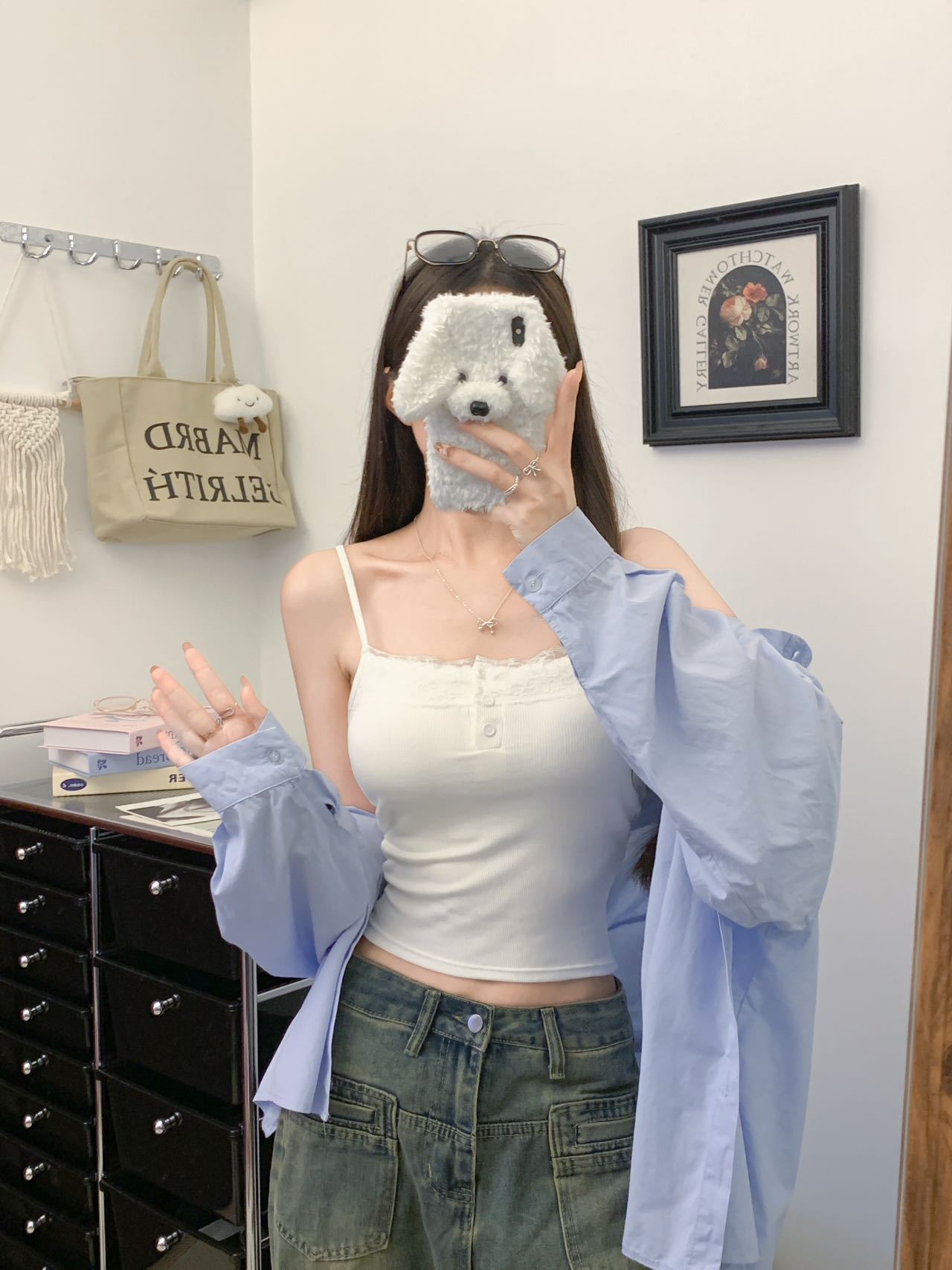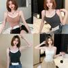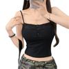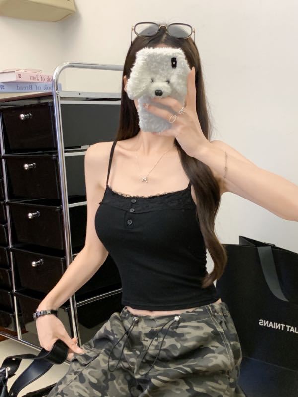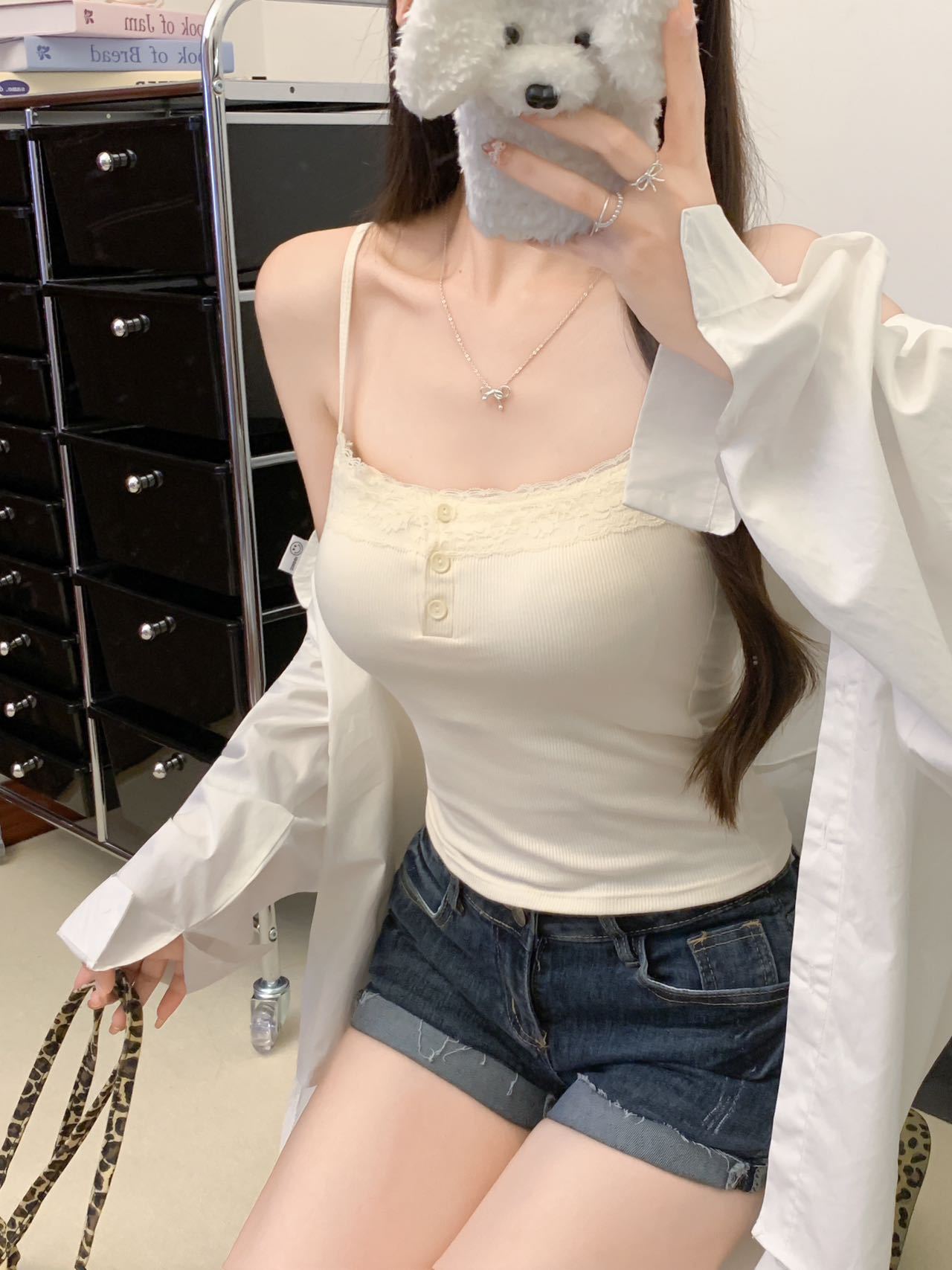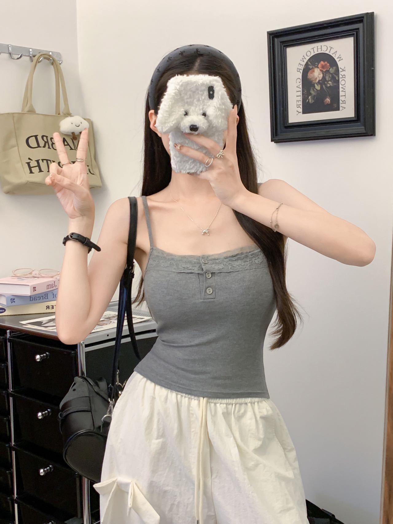 Estilo Lujuria Pura Sexy Encaje Empalmado Camisola con Botones para Mujer Ajustada Top de Chica Caliente con Almohadillas para el Busto Dentro Verano