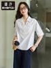 Zhen Xi Nuevo Suéter con Costuras de Encaje Calado para Mujer Manga Media Manga Corta Camisa de Algodón Top SQ739