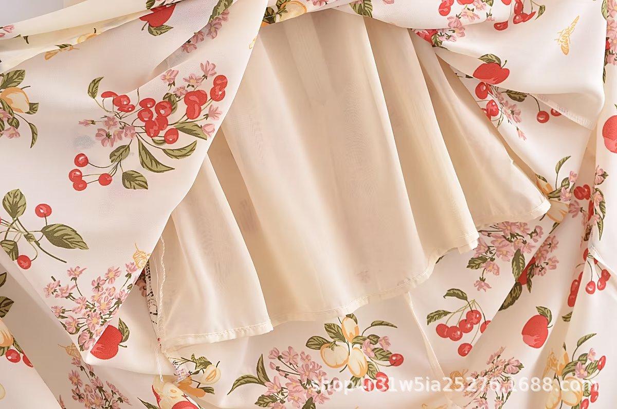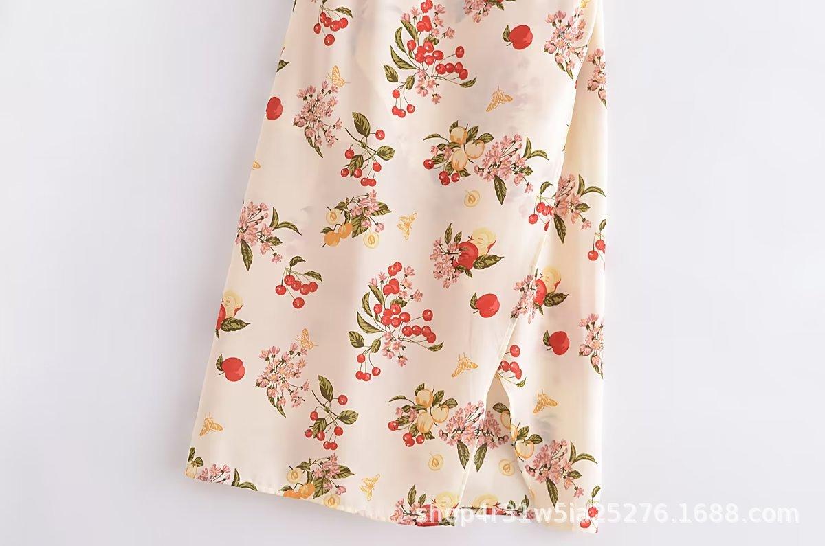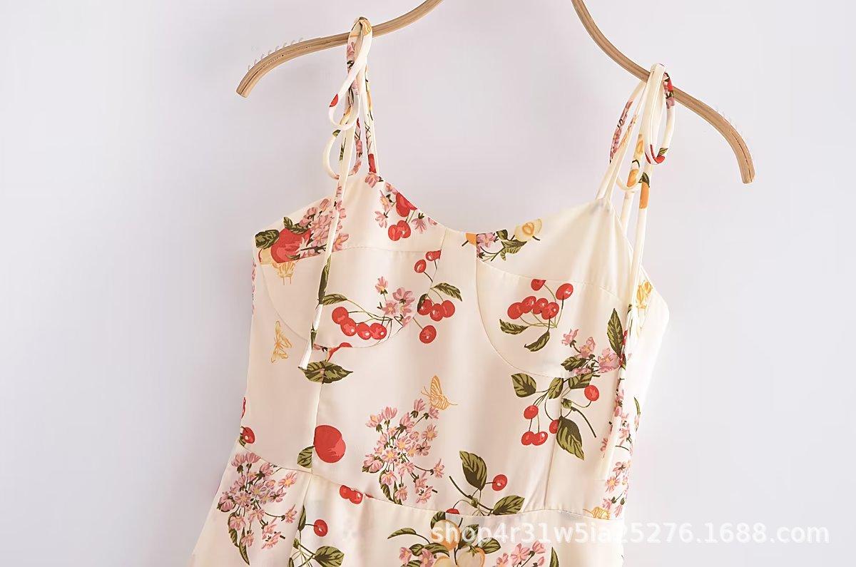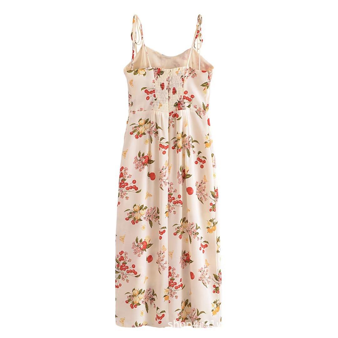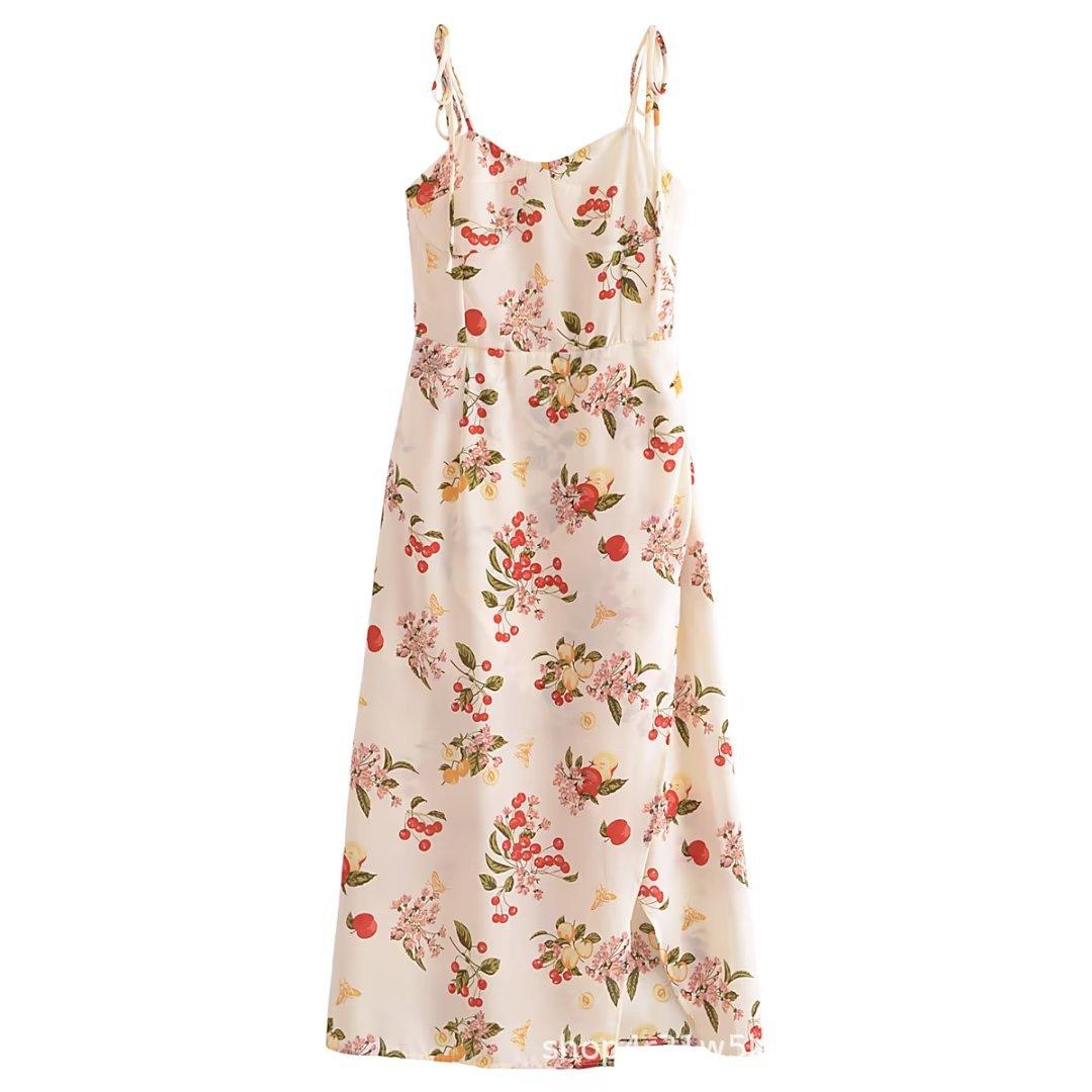 2023 Verano Nueva Llegada Ajustado Estilo Francés Vintage Estampado Floral Estilo Vacacional Sexy Vestido Sling con Abertura