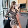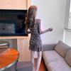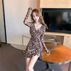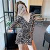 Vestido de Estampado de Leopardo de Alta Gama Primavera y Verano Diseño para Mujer Espalda Descubierta Cadera Moda de Manga Larga Fiesta Noche Estilo Tienda Vestido Corto para Mujer
