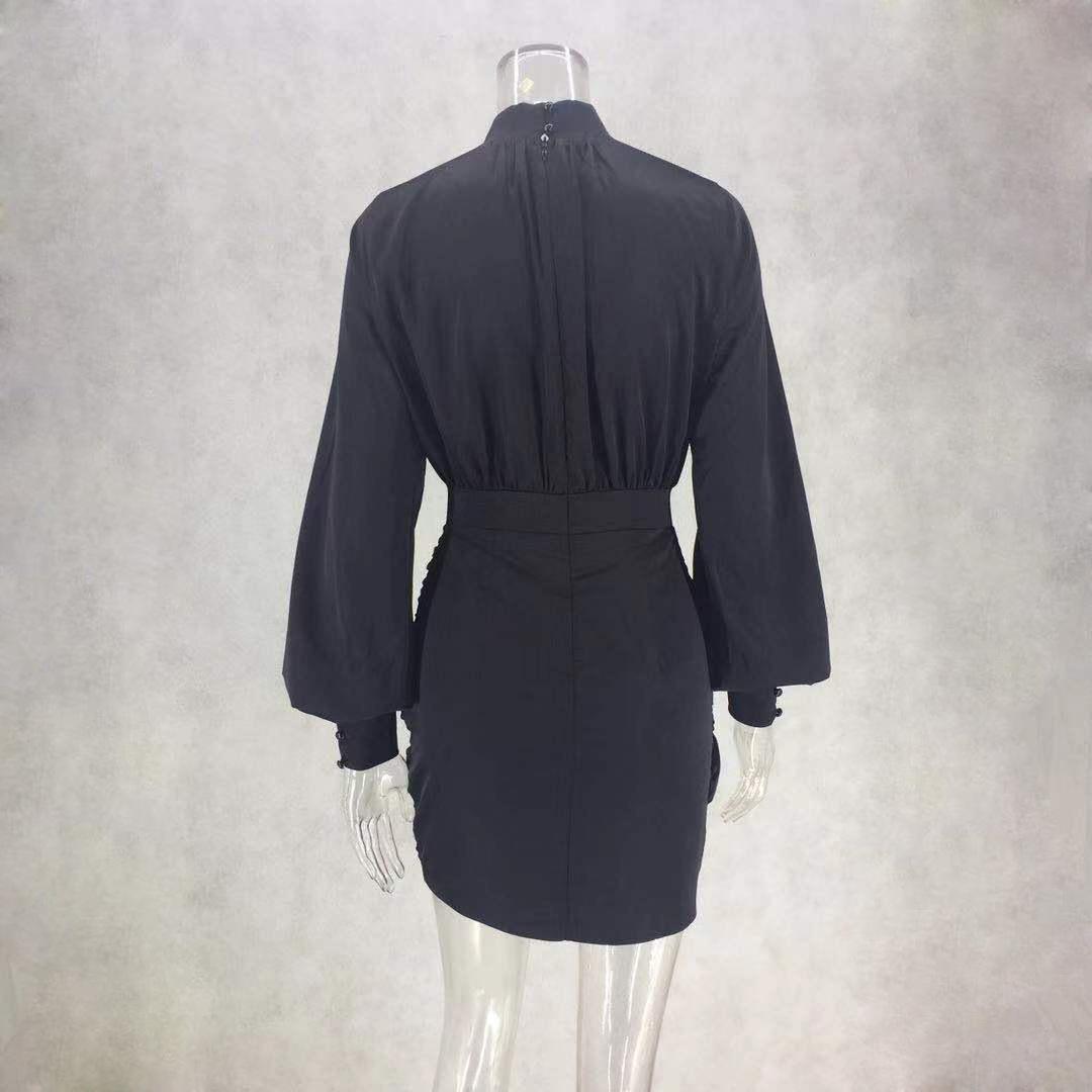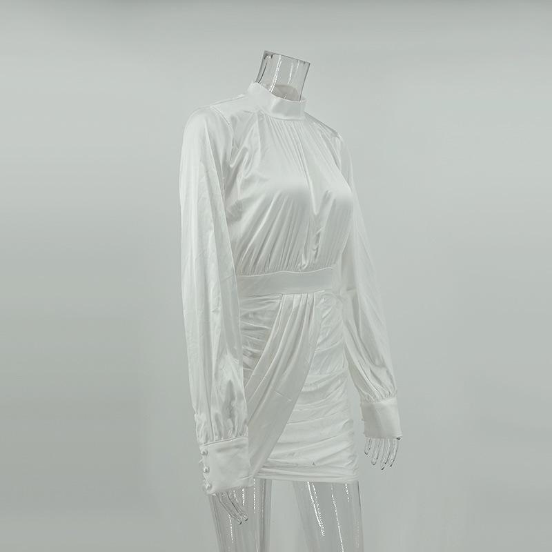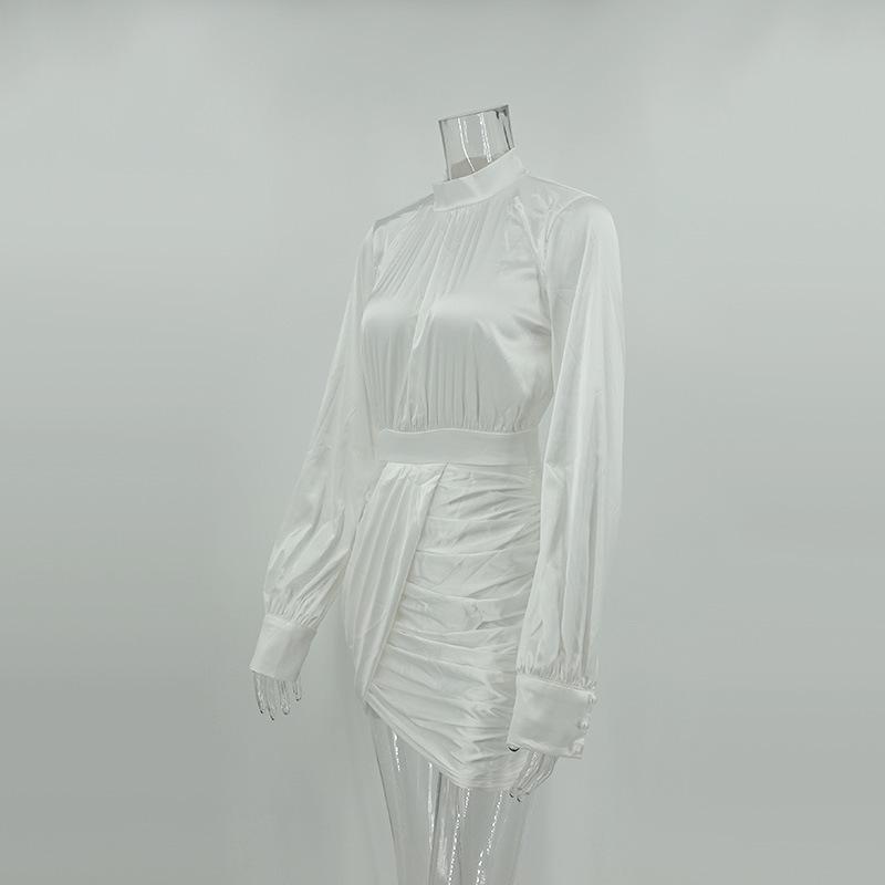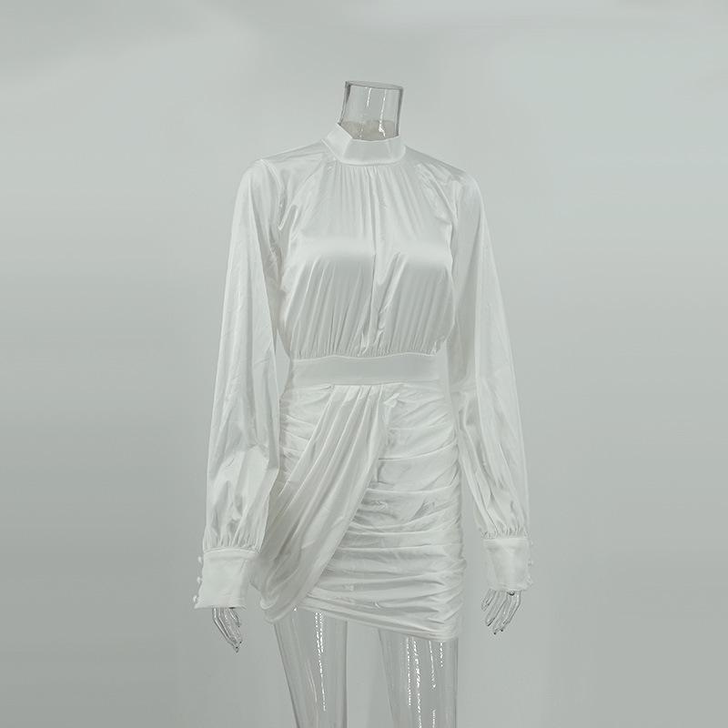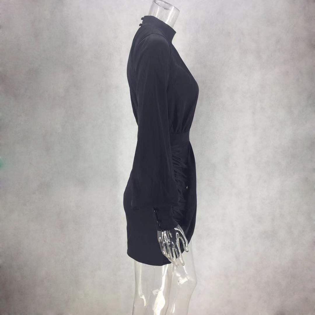 Primavera 2025 Europeo y Americano Transfronterizo Color Sólido Manga Linterna Ajustado Vestido Irregular de Manga Larga para Mujer Estilo Europeo y Americano
