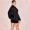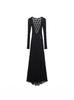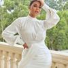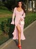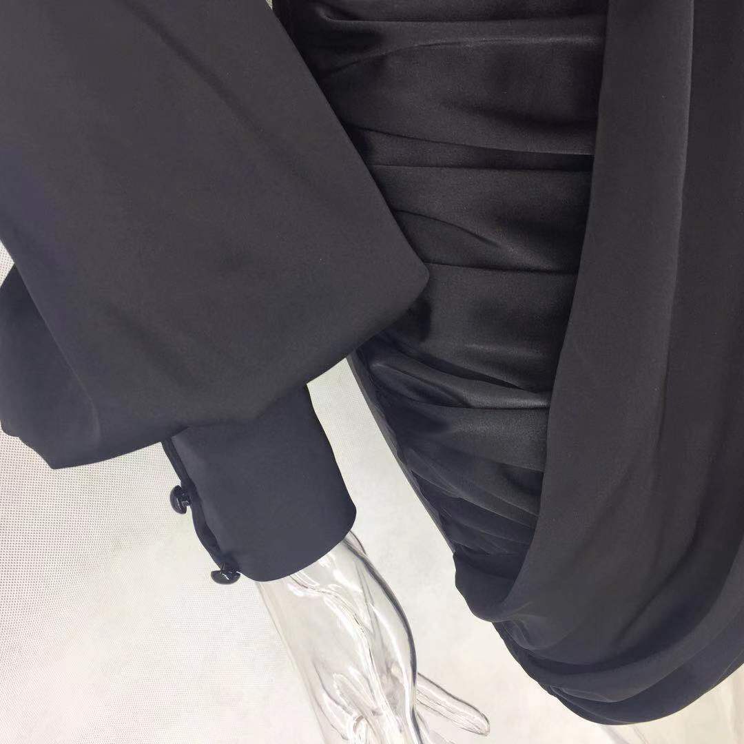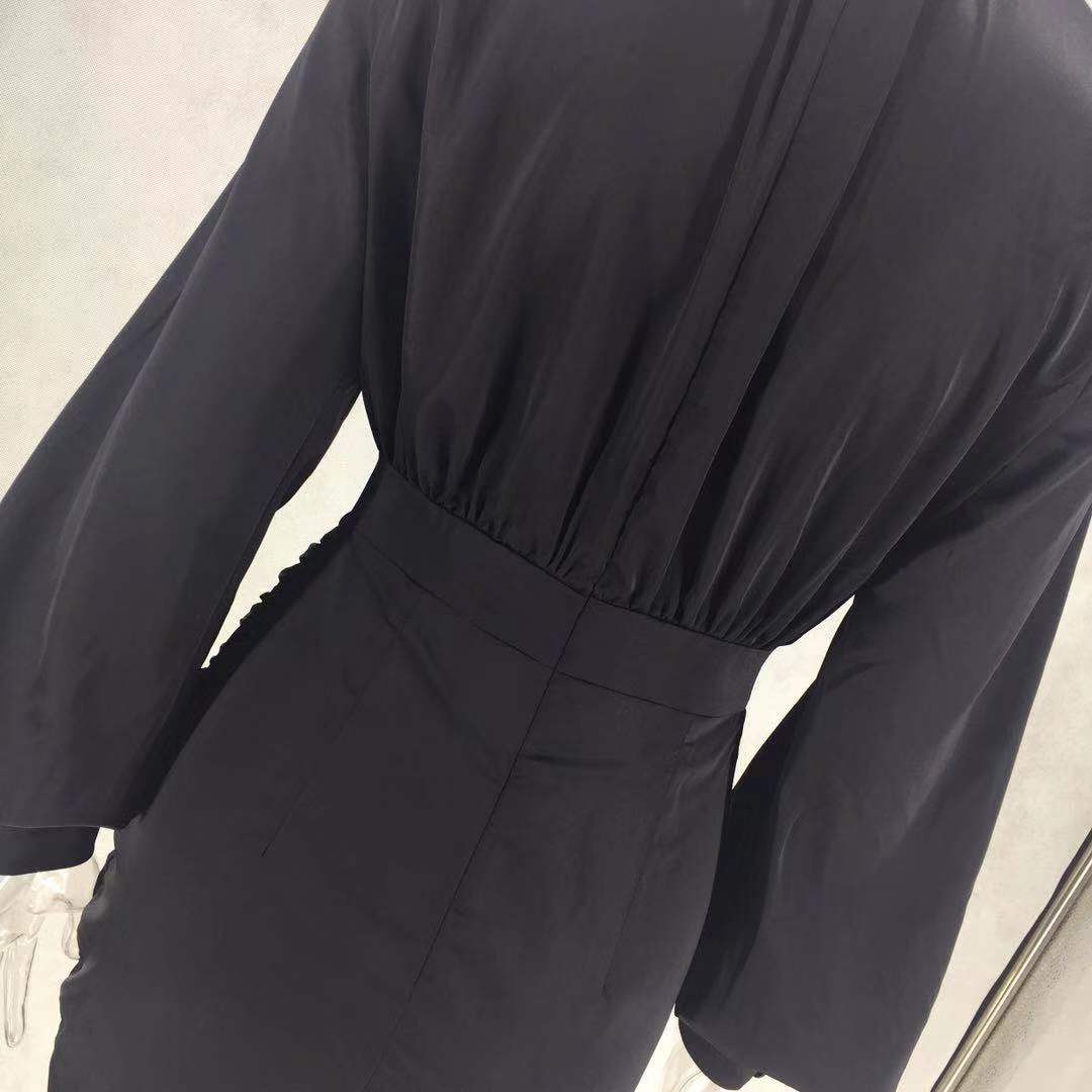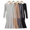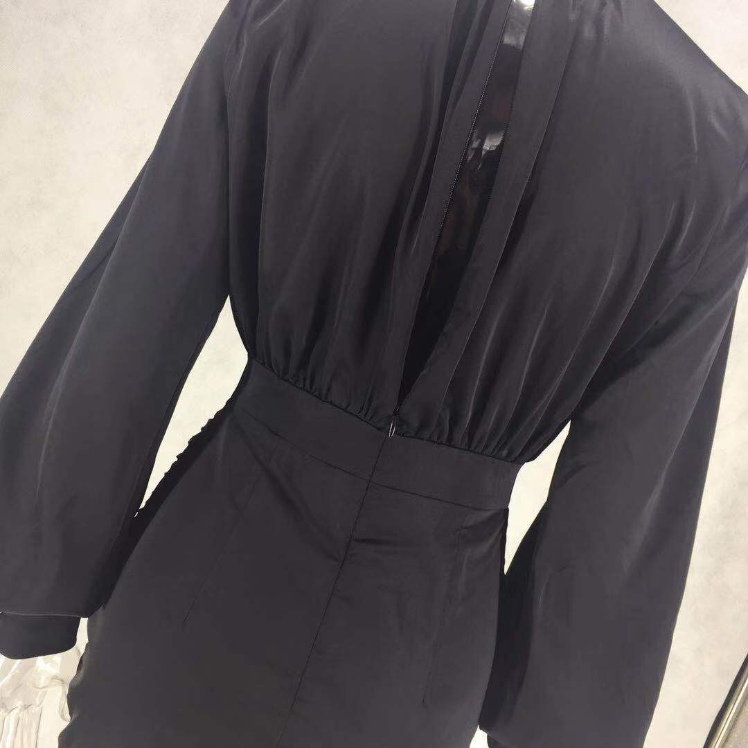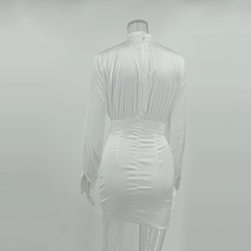 Primavera 2025 Europeo y Americano Transfronterizo Color Sólido Manga Linterna Ajustado Vestido Irregular de Manga Larga para Mujer Estilo Europeo y Americano