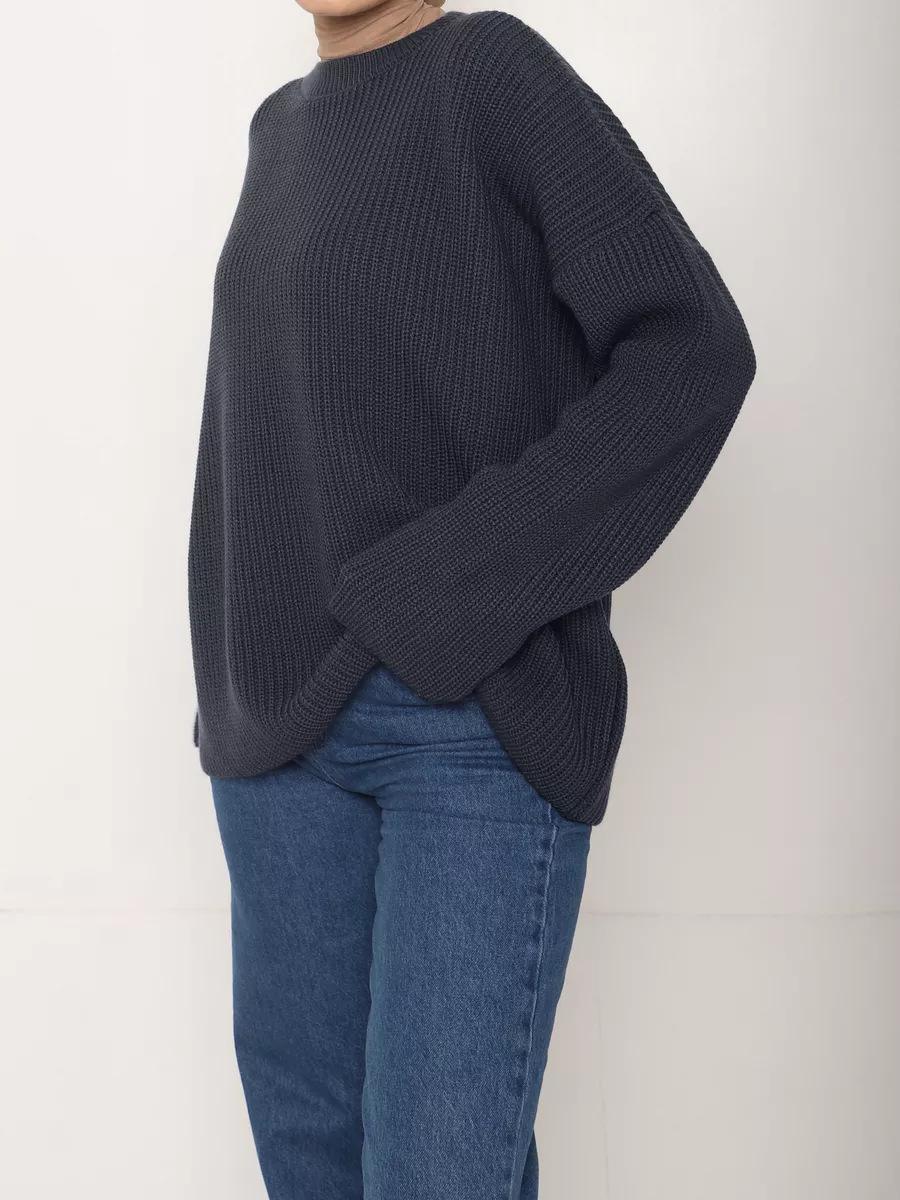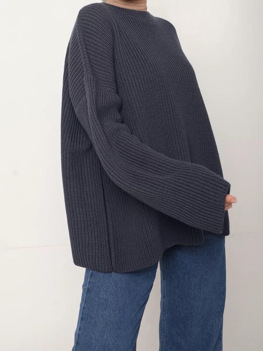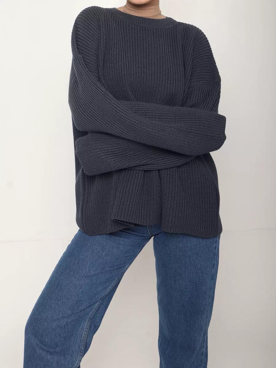 Tejido de Punto Transfronterizo para Mujer Otoño e Invierno 2024 Suéter de Cuello Redondo Suelto Europeo y Americano de Manga Larga Chaqueta de Punto para Mujer