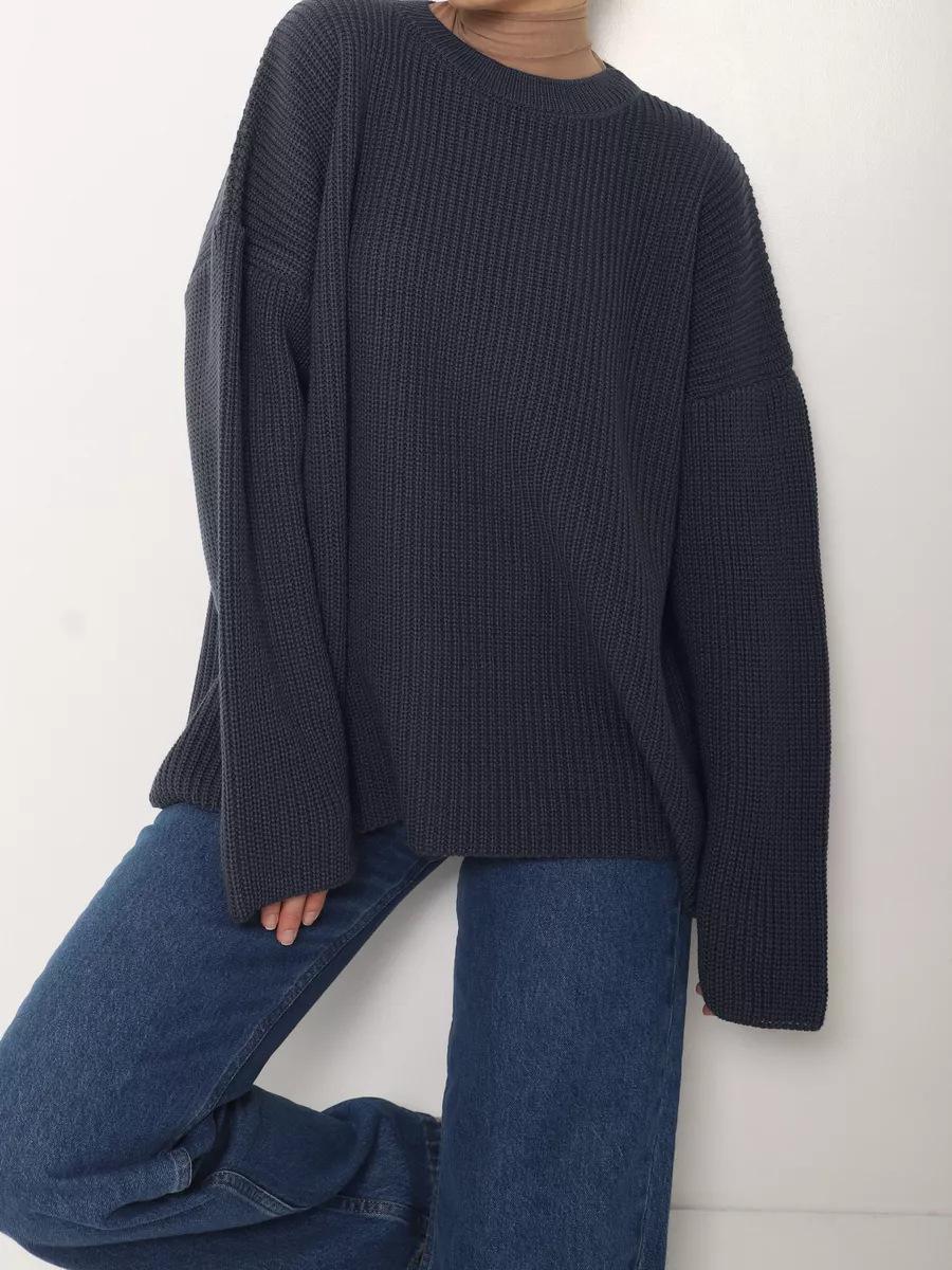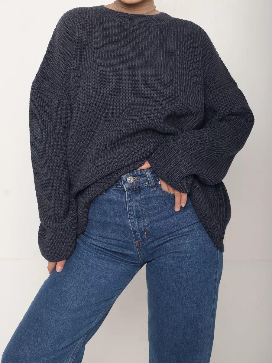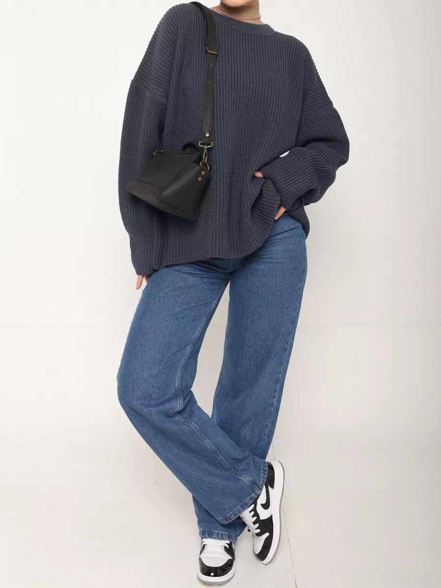 Tejido de Punto Transfronterizo para Mujer Otoño e Invierno 2024 Suéter de Cuello Redondo Suelto Europeo y Americano de Manga Larga Chaqueta de Punto para Mujer