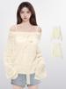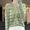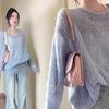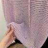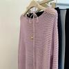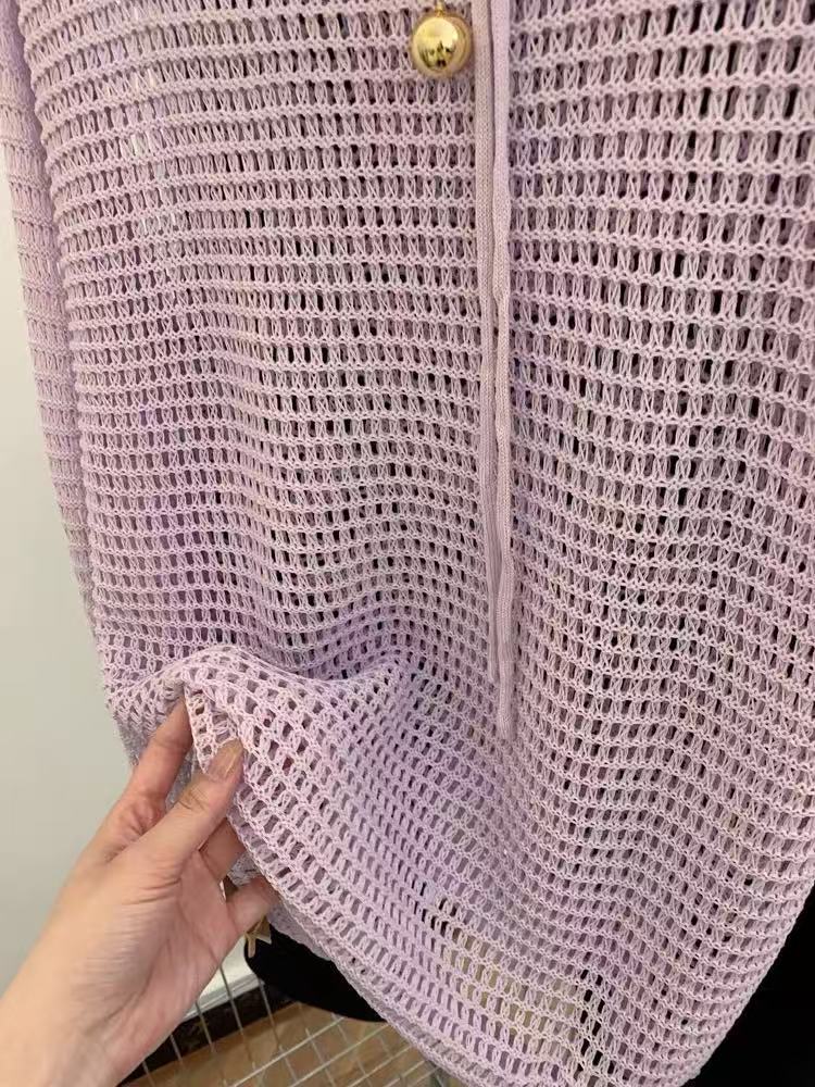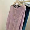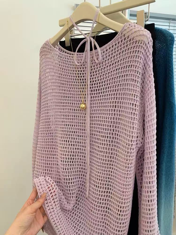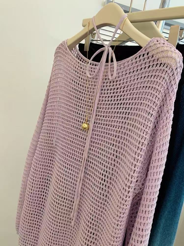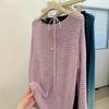 Suéter Único para Mujer Morado de Manga Larga Relajado Tejido Calado Blusa Holgada Estilo Perezoso Protector Solar