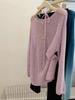 Atuendo Nicho Suéter Morado de Manga Larga para Mujer Relajado Tejido Abertura Cubre-hombros Top Estilo Holgazán Suelto Camisa Protección Solar
