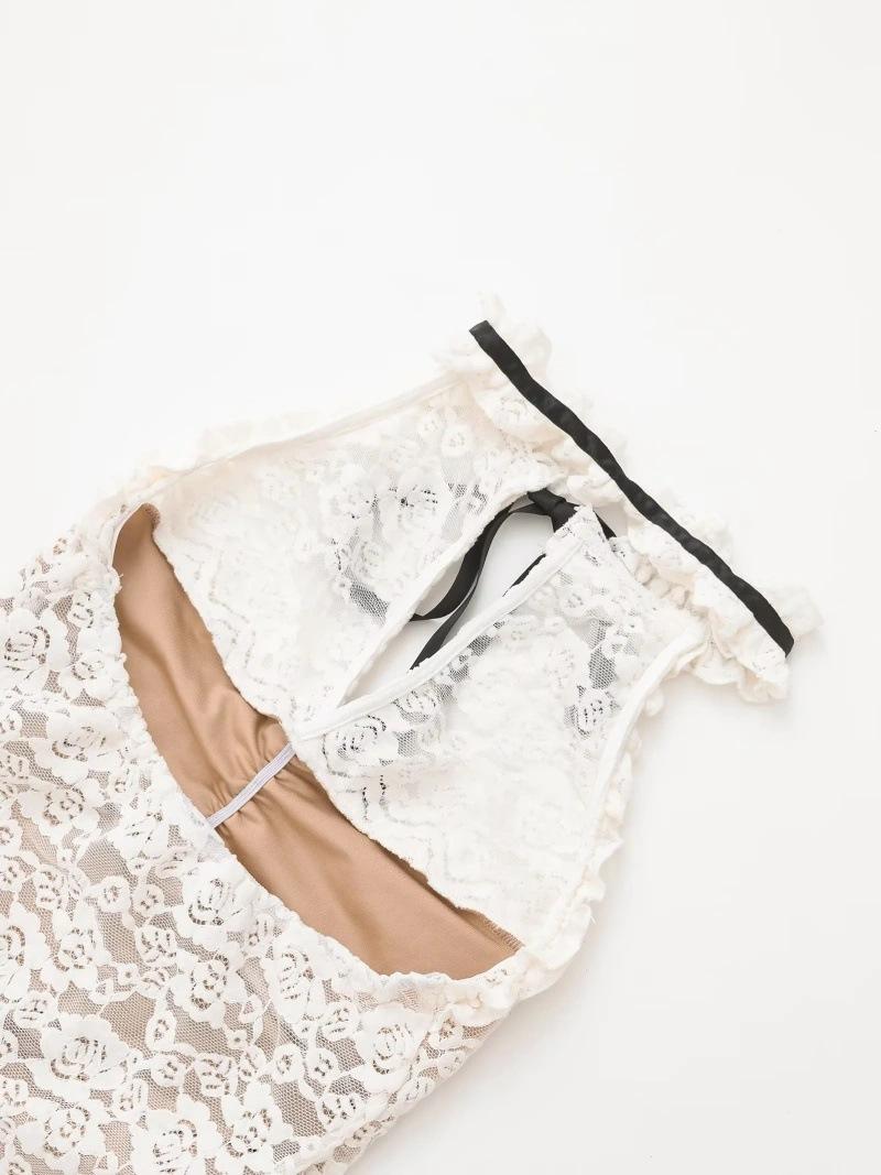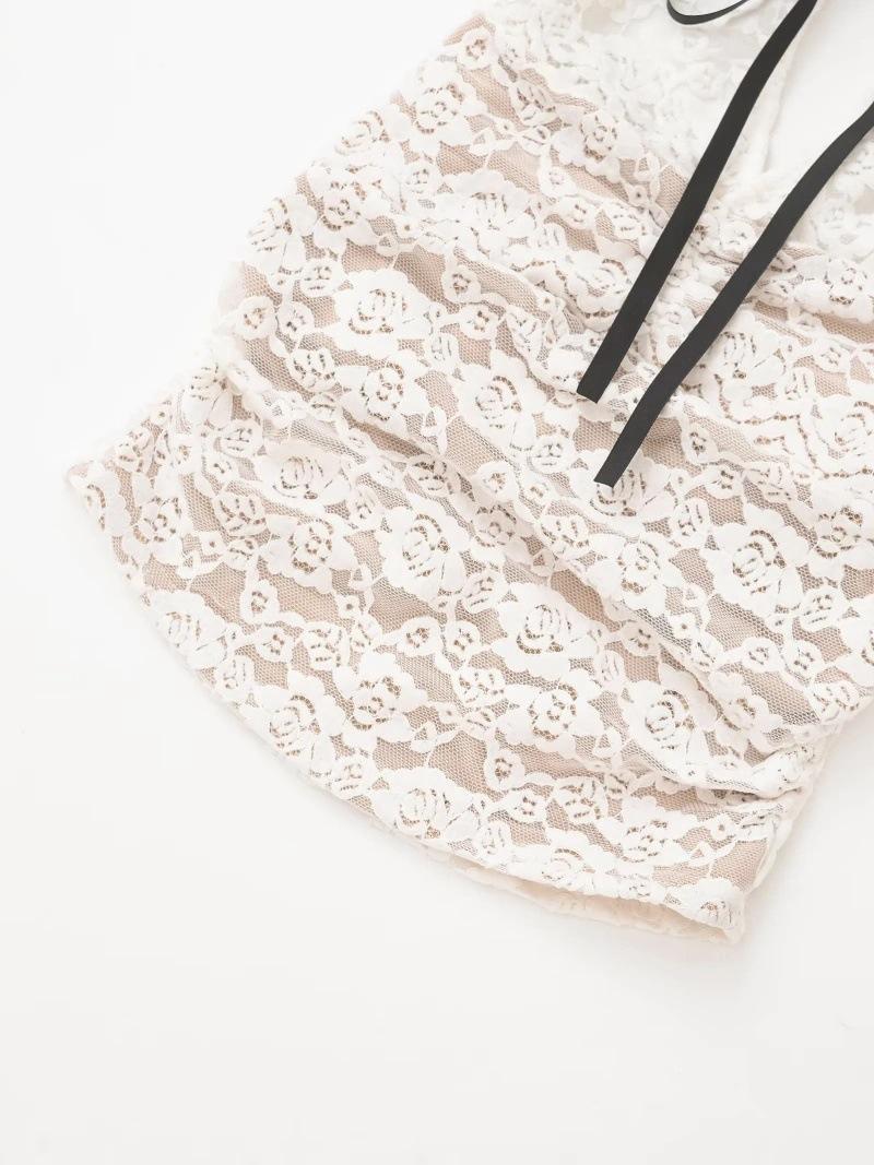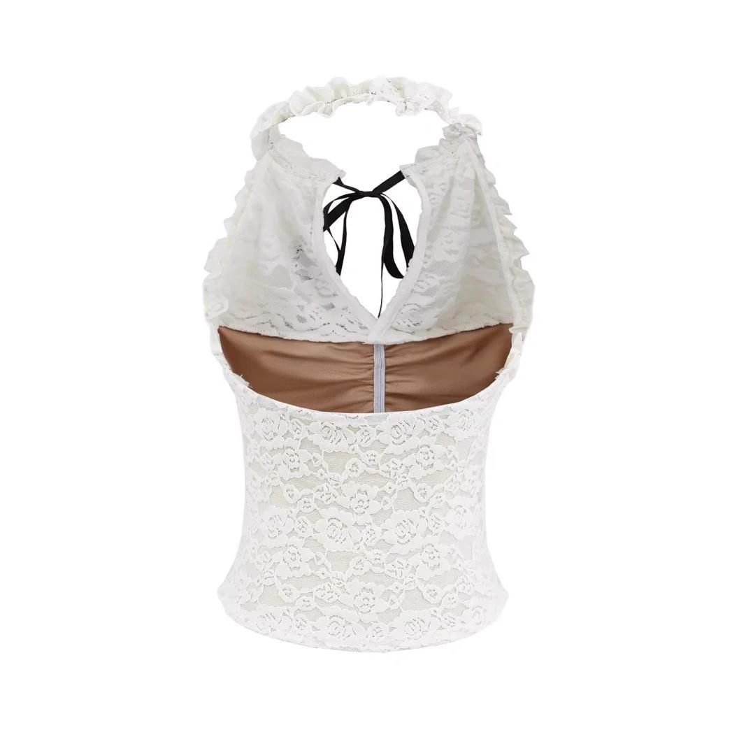 Corbata de Encaje Jacquard de Estilo Puro con Lazo Camisola Chaleco con Top Corto Strapless sin Espalda de Ajuste Ceñido