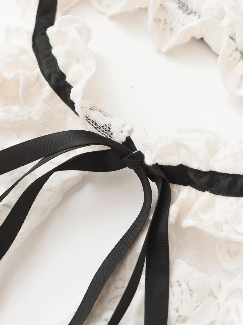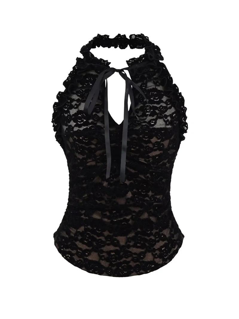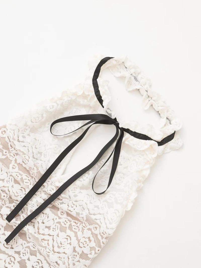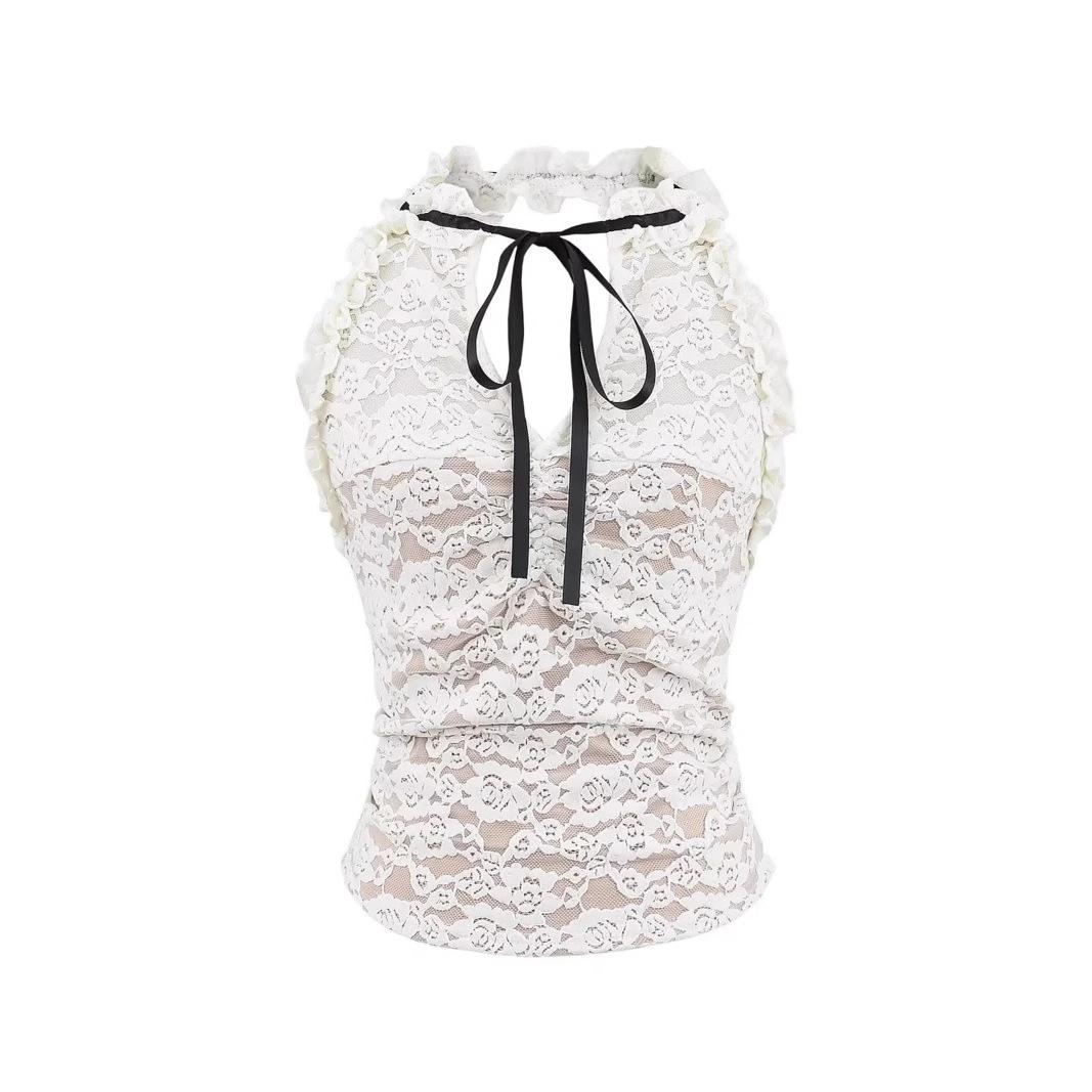Corbata de Encaje Jacquard de Estilo Puro con Lazo Camisola Chaleco con Top Corto Strapless sin Espalda de Ajuste Ceñido