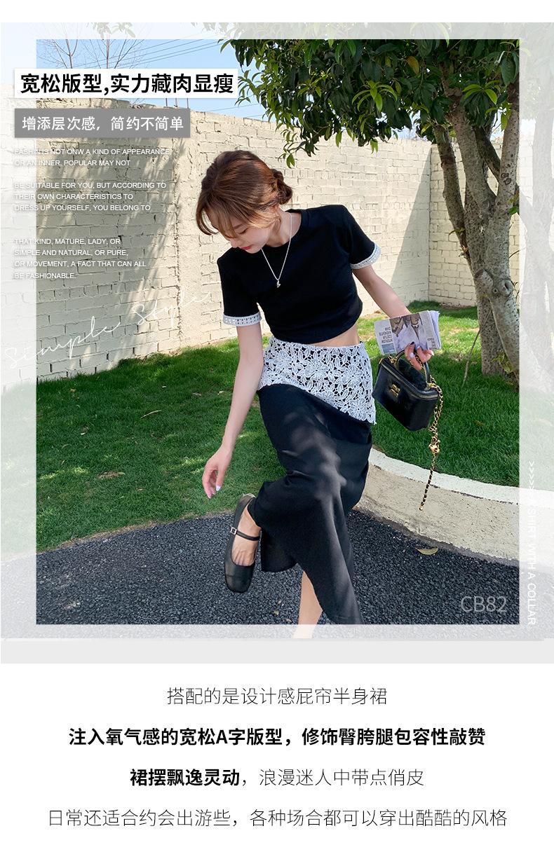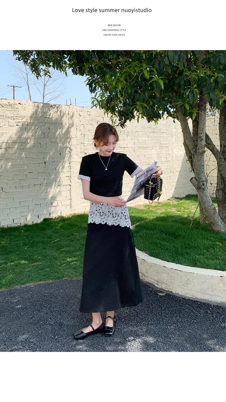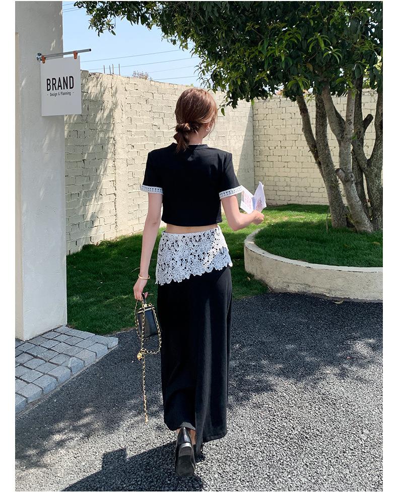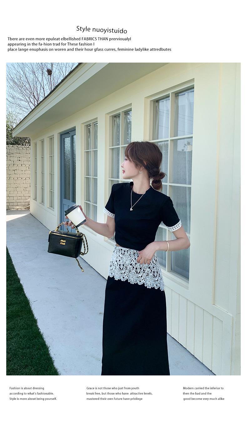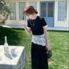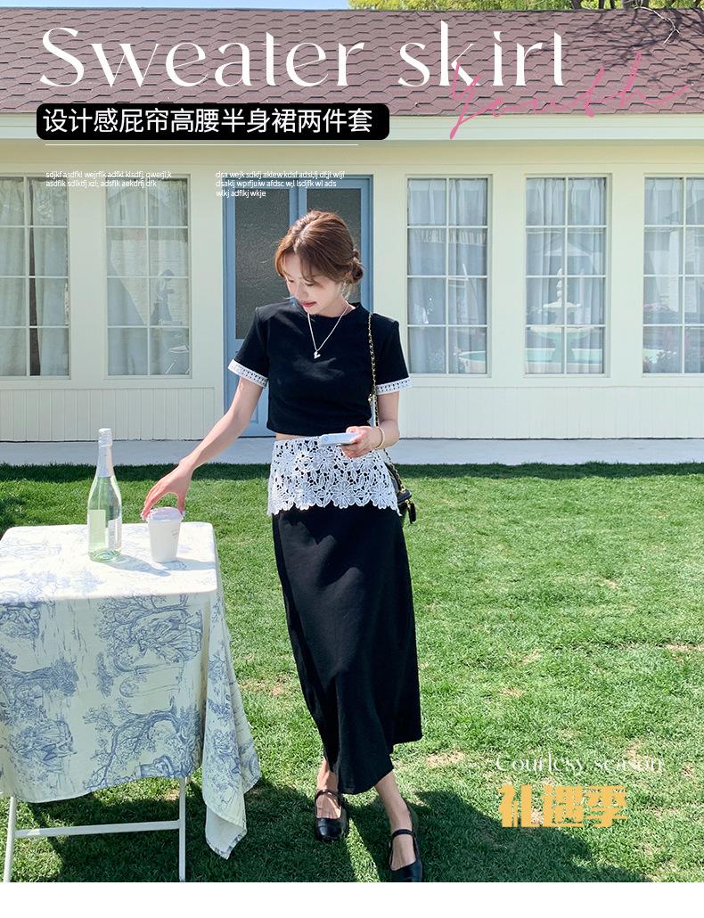 2025 Nueva Moda de Verano Casual Versátil Diseño que Reduce la Edad Top + Falda Cortina Trasera Encaje Traje