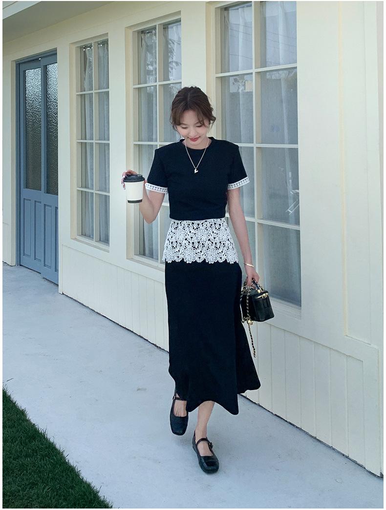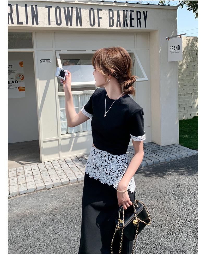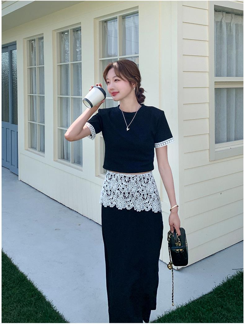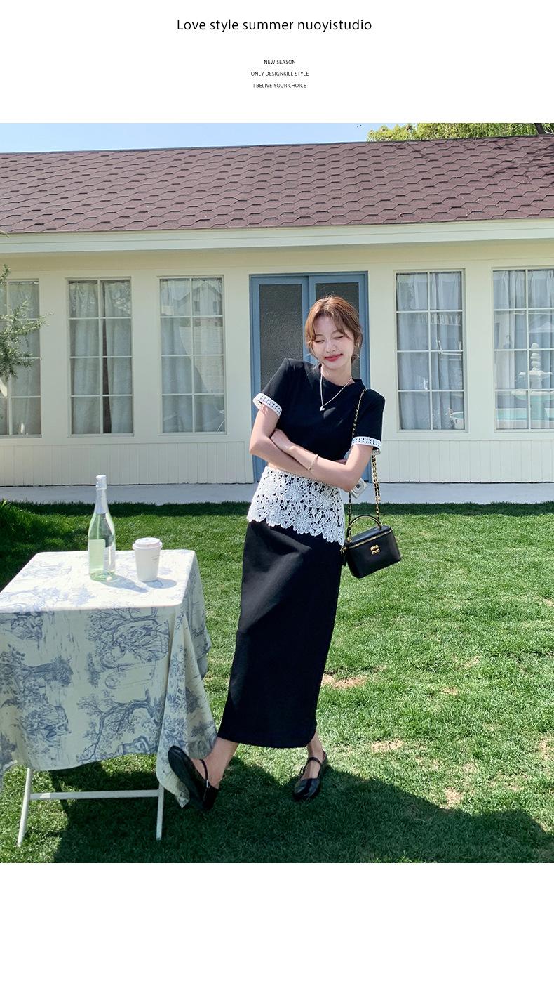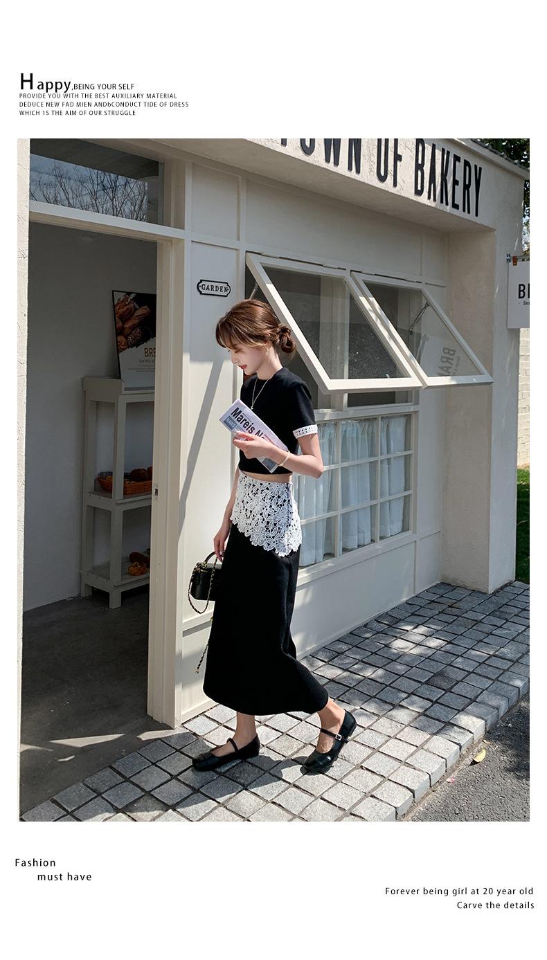 2025 Nueva Moda de Verano Casual Versátil Diseño que Reduce la Edad Top + Falda Cortina Trasera Encaje Traje