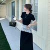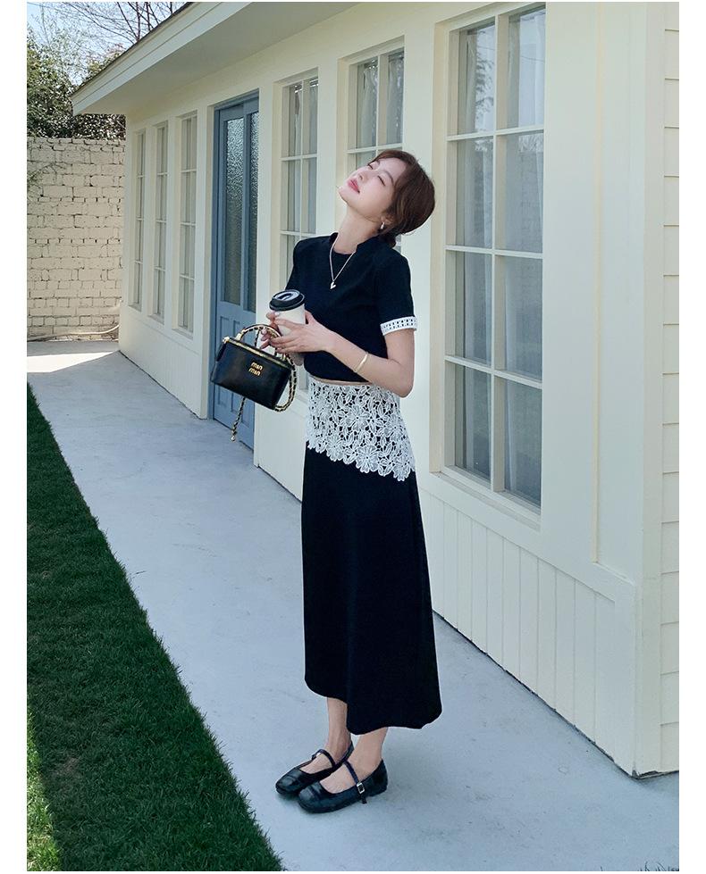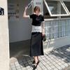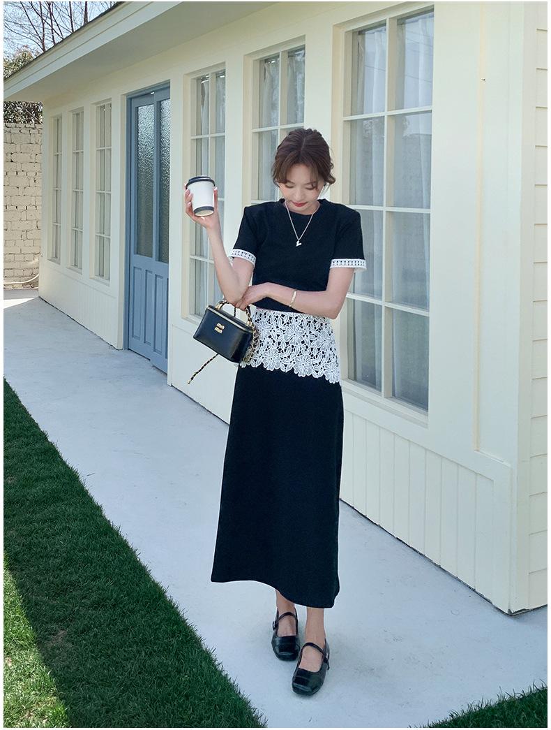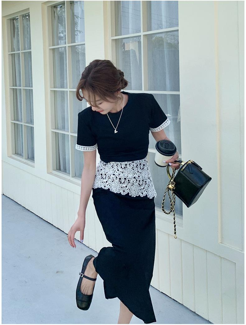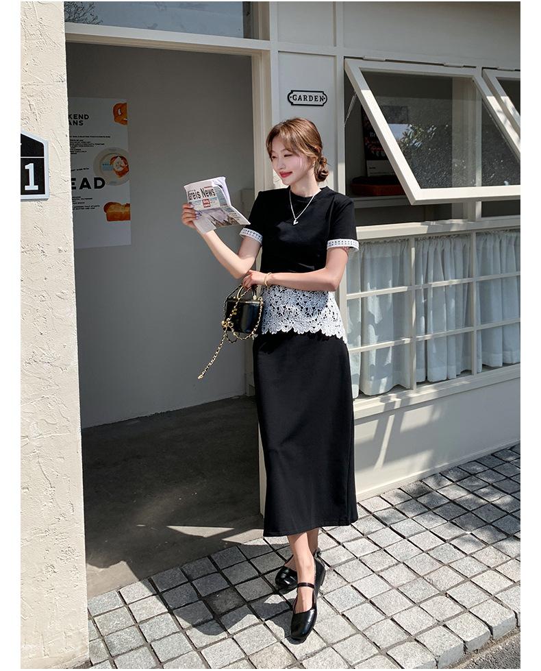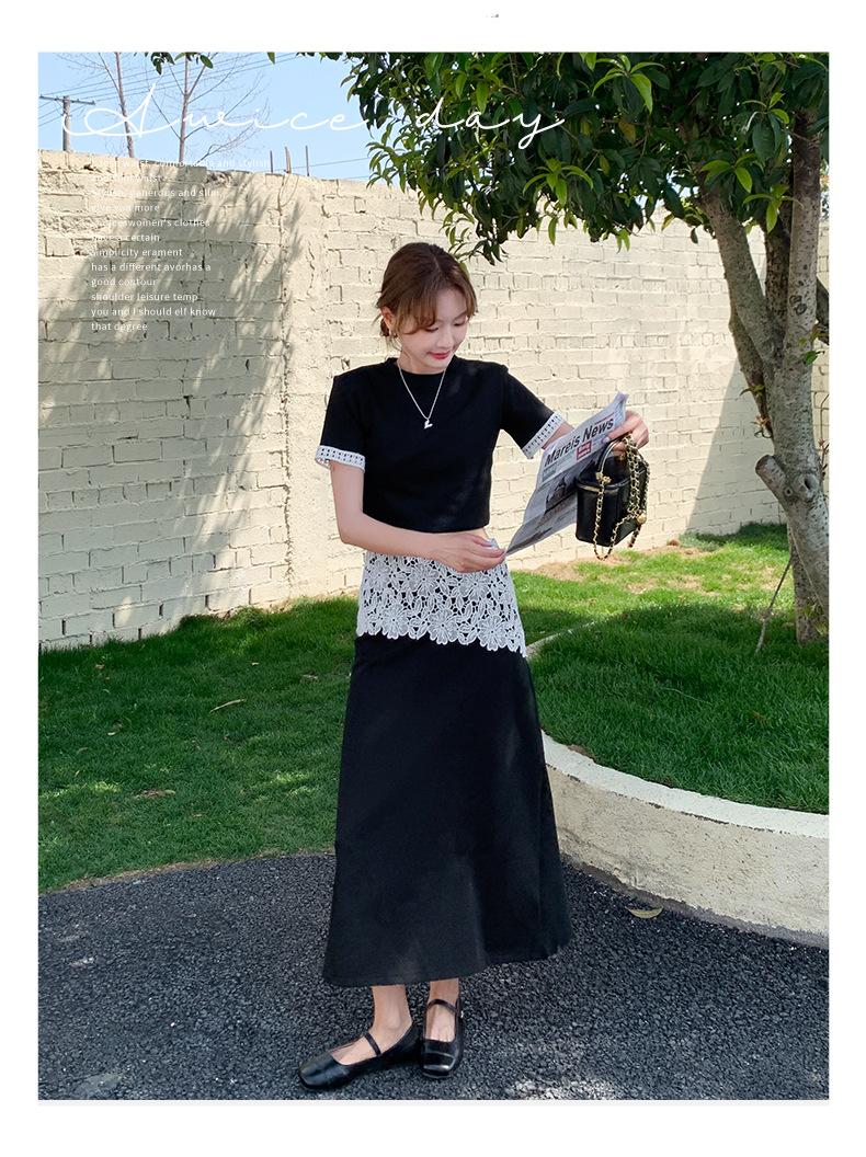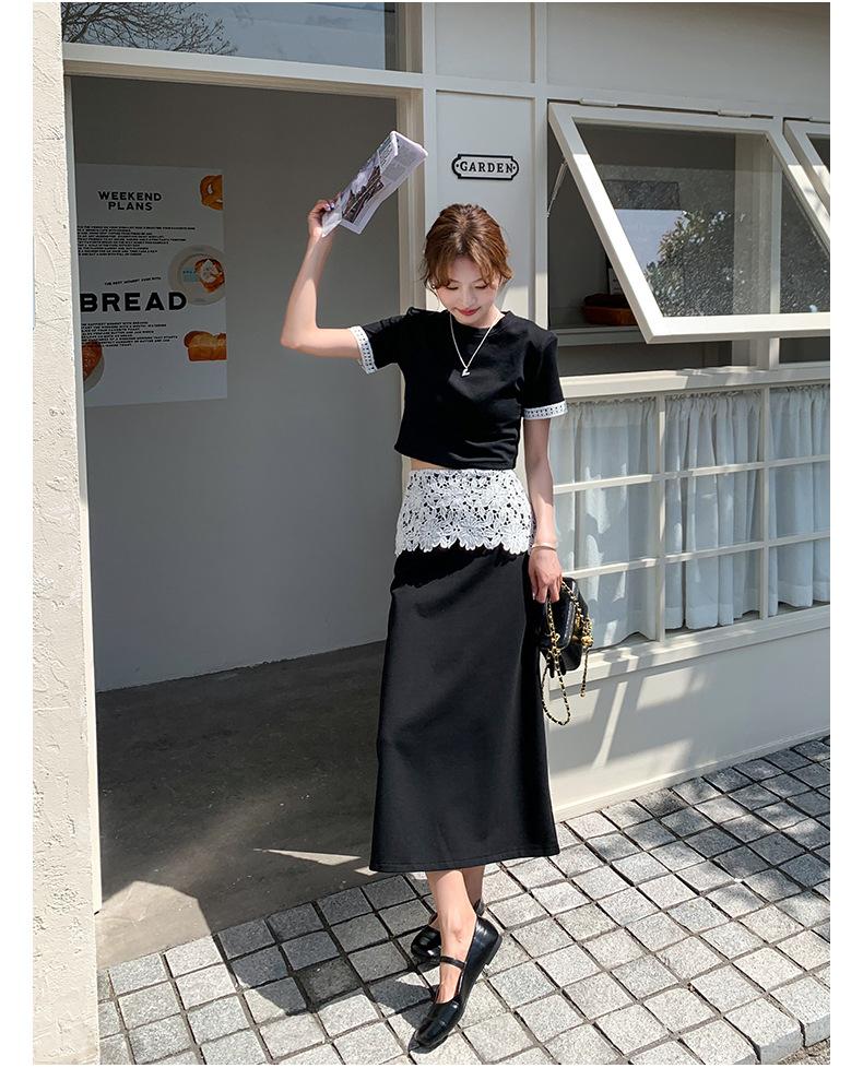 2025 Nueva Moda de Verano Casual Versátil Diseño que Reduce la Edad Top + Falda Cortina Trasera Encaje Traje