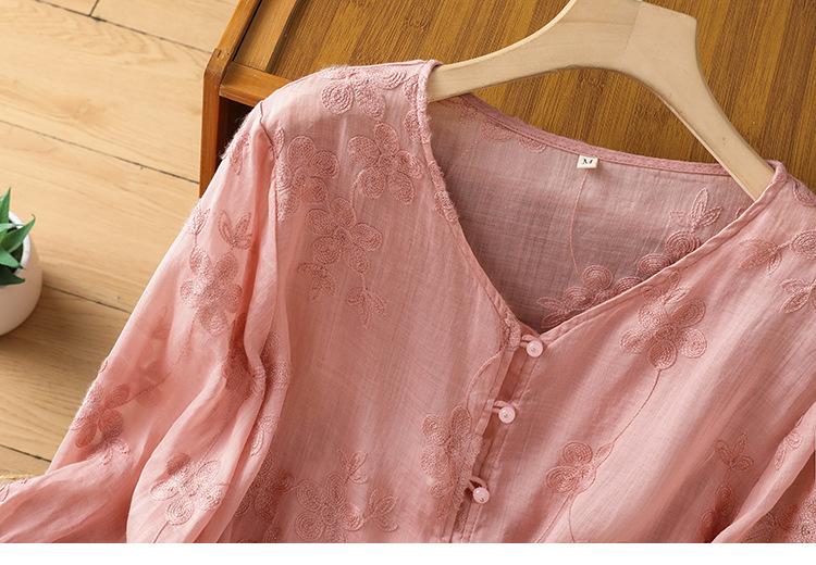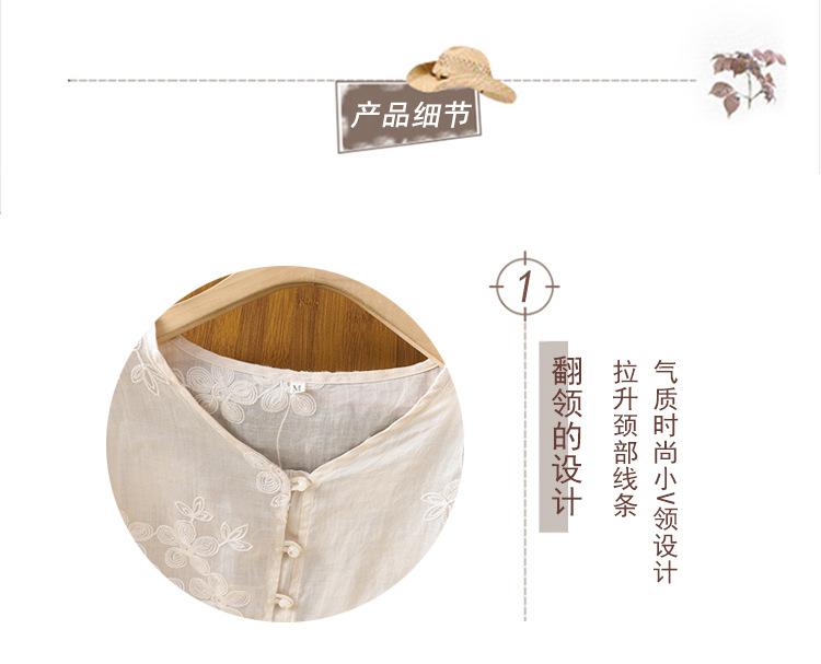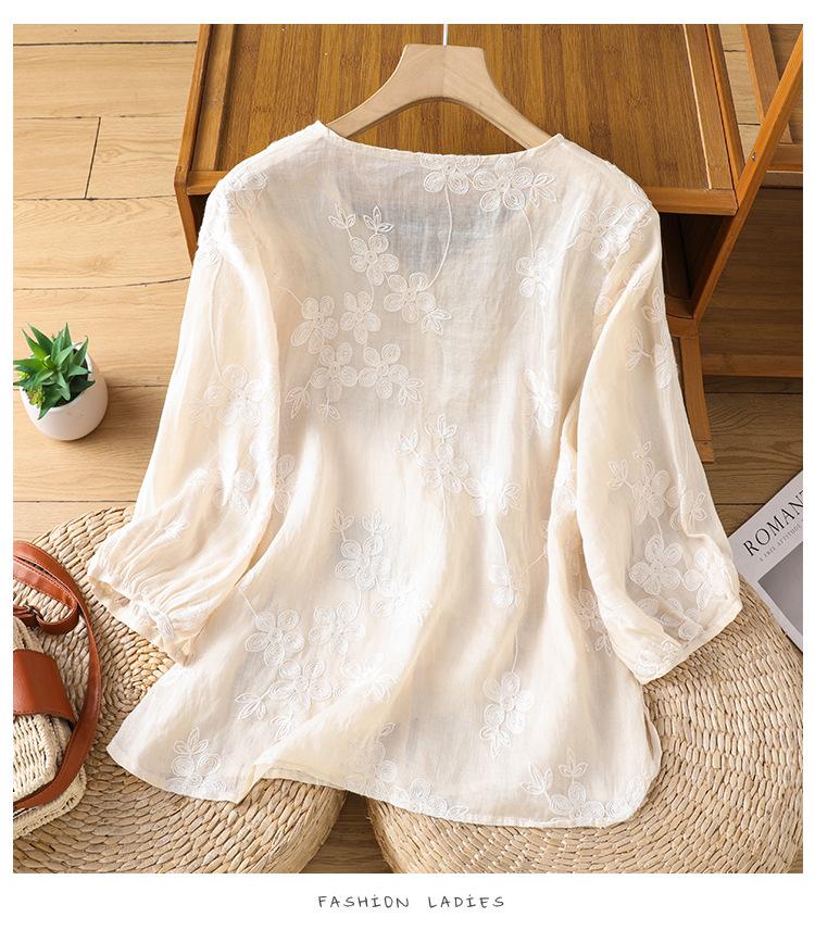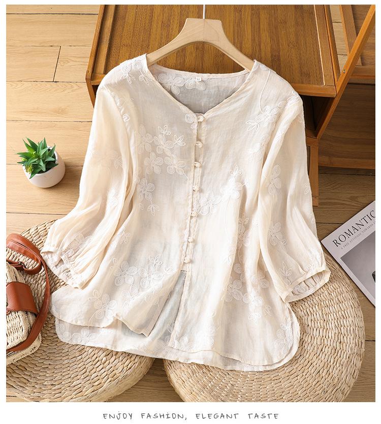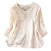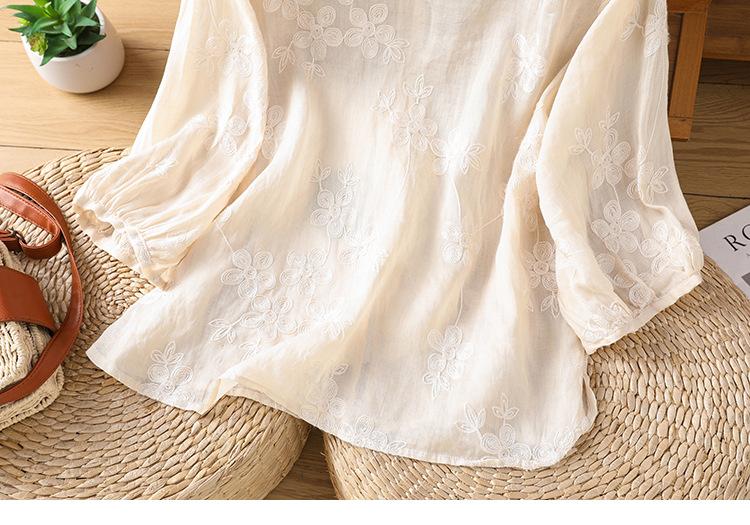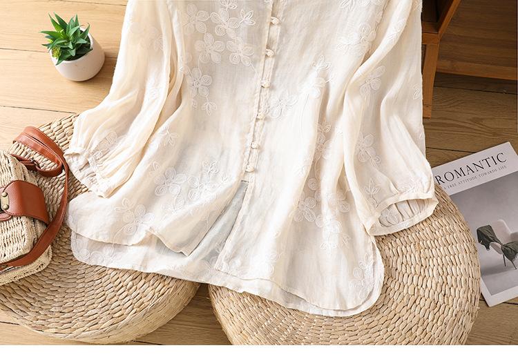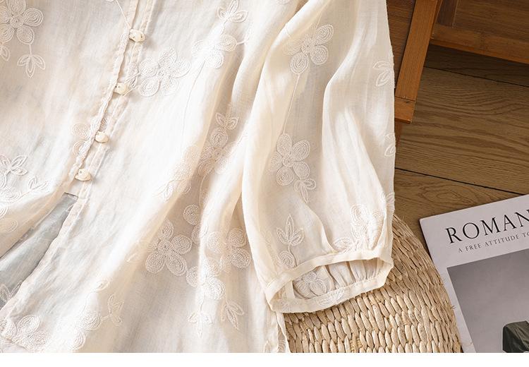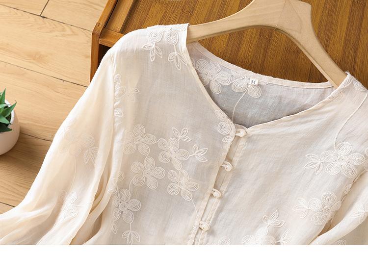 Toma real verano 2025 diseño original bordado de industria pesada cuello en V algodón lino camisa cárdigan ropa de protección solar abrigo camisa pequeña