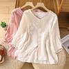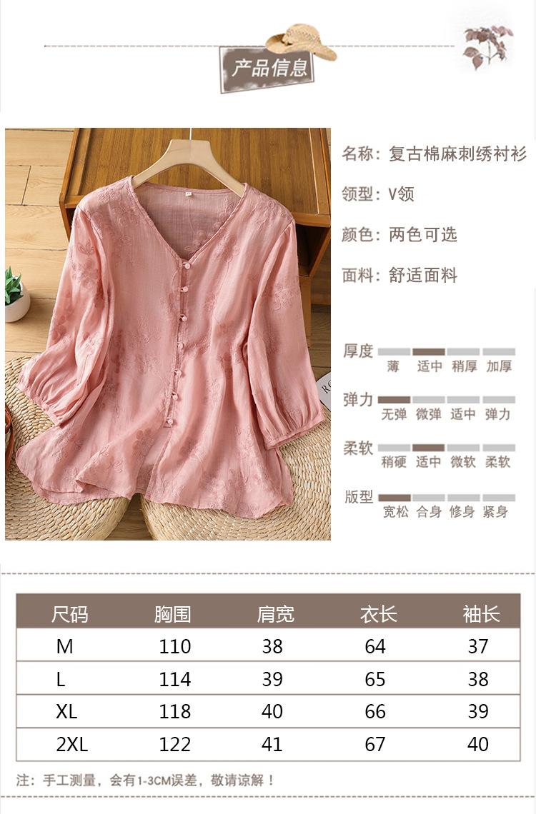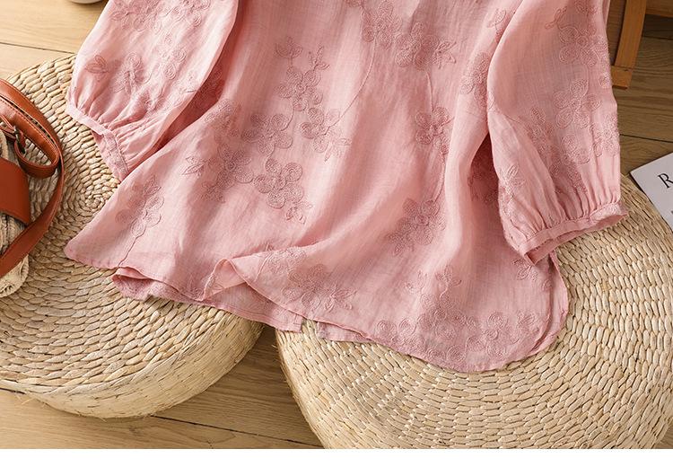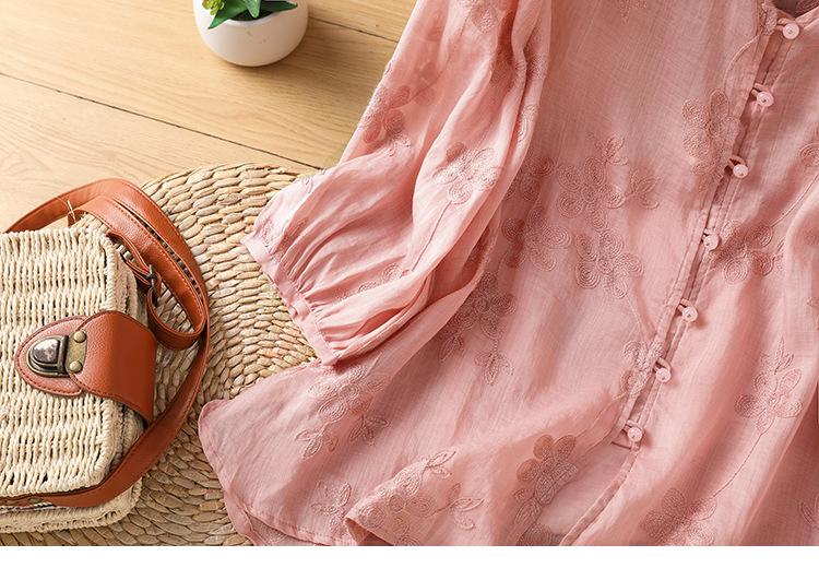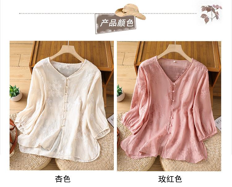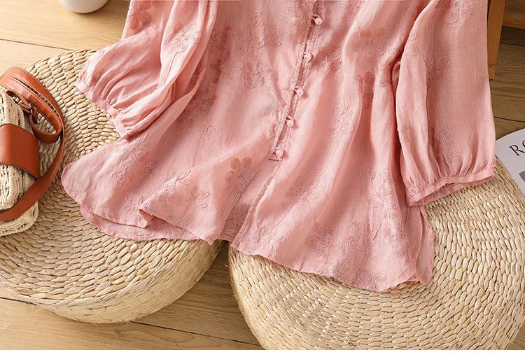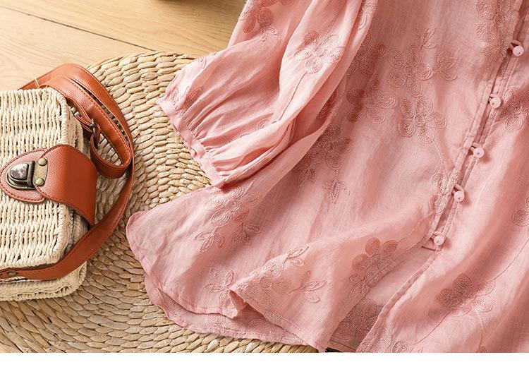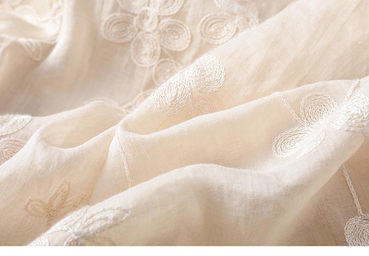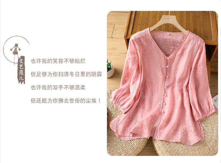 Toma real verano 2025 diseño original bordado de industria pesada cuello en V algodón lino camisa cárdigan ropa de protección solar abrigo camisa pequeña