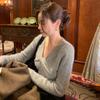 Suéter Francés Suave Ceroso para Mujer 2024 Otoño e Invierno Nuevo Estilo Coreano Cuello Suéter Tejido Elegante Top Básico Trendy