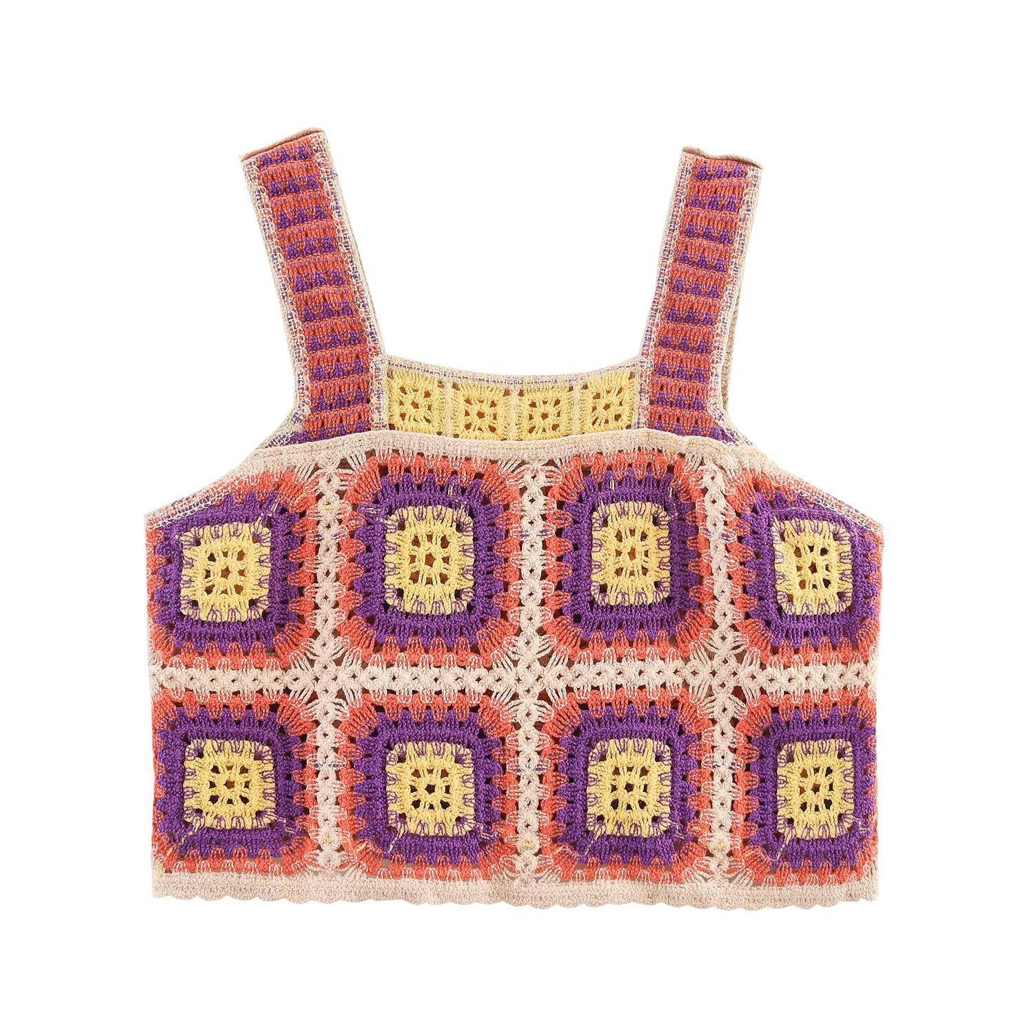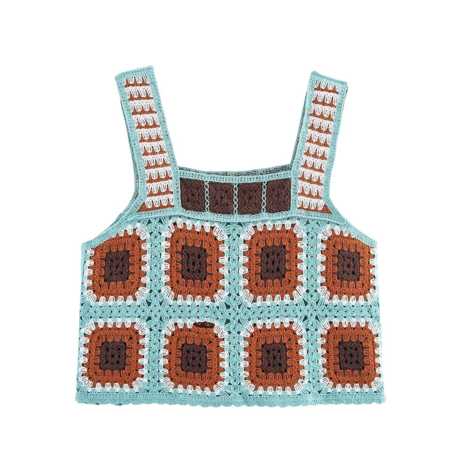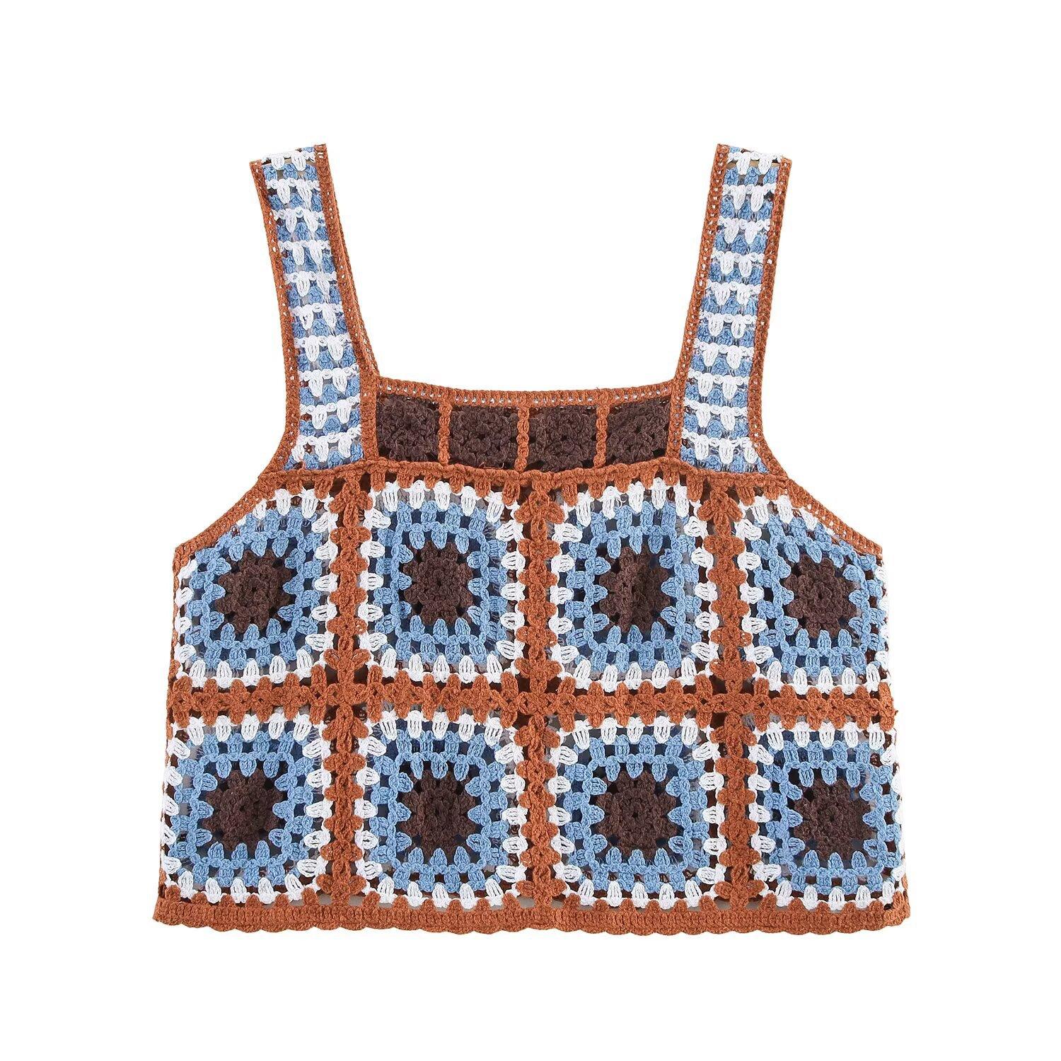 Ropa de Mujer Verano 2025 Nueva Moda Estilo Europeo y Americano Sencillo Combinable Estilo Bohemio Top de Tirantes de Crochet