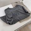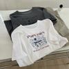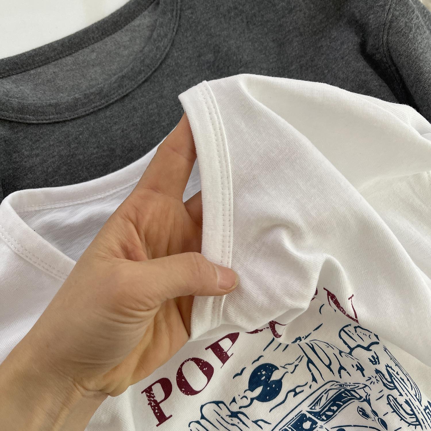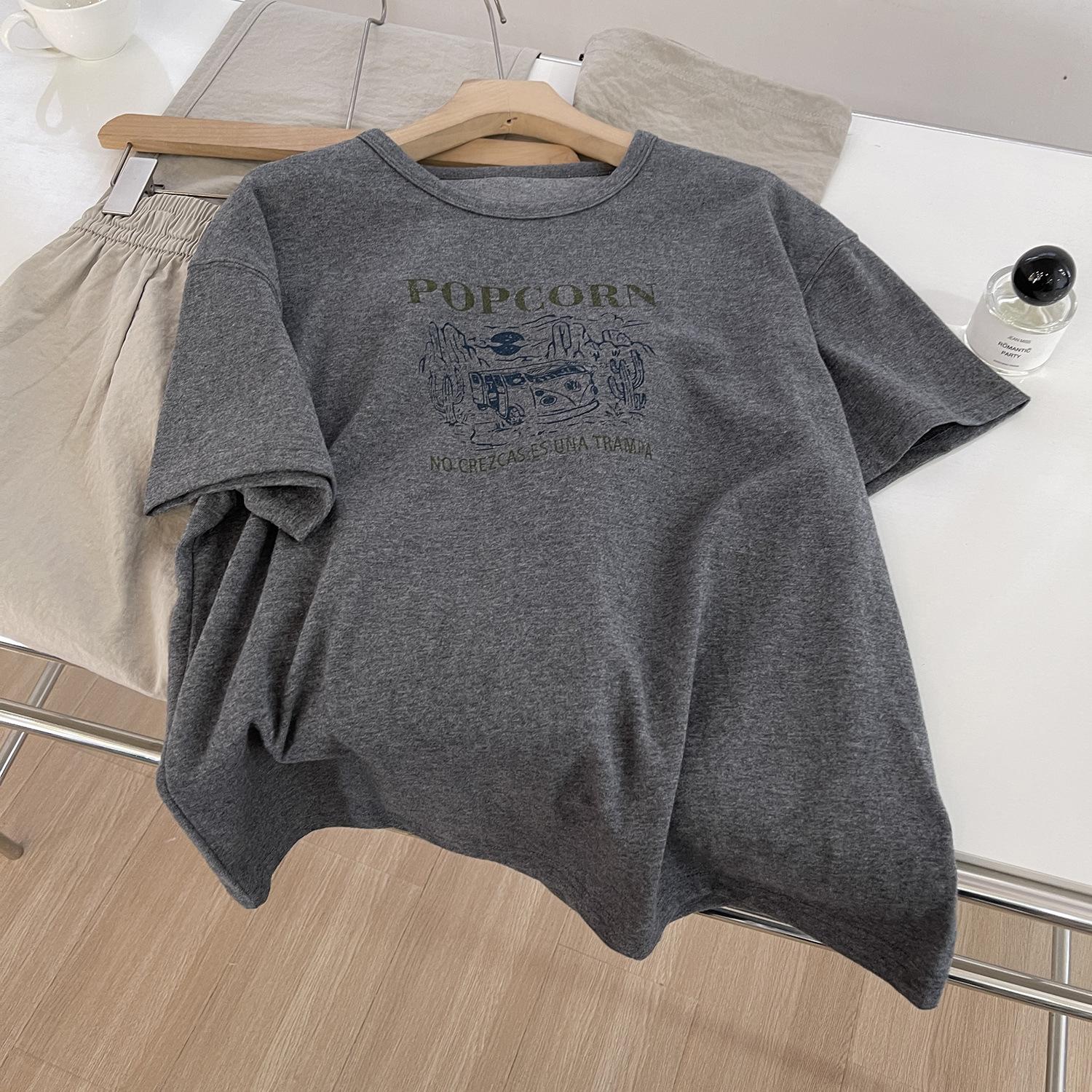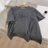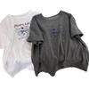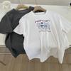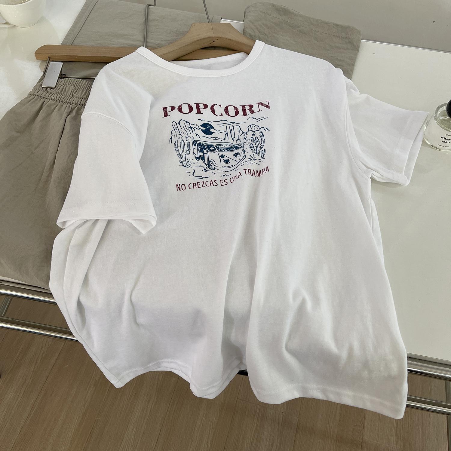 Camiseta de manga corta con estampado de letras blancas para mujer, estilo coreano, holgada, informal, con cuello redondo, interior de verano