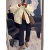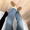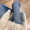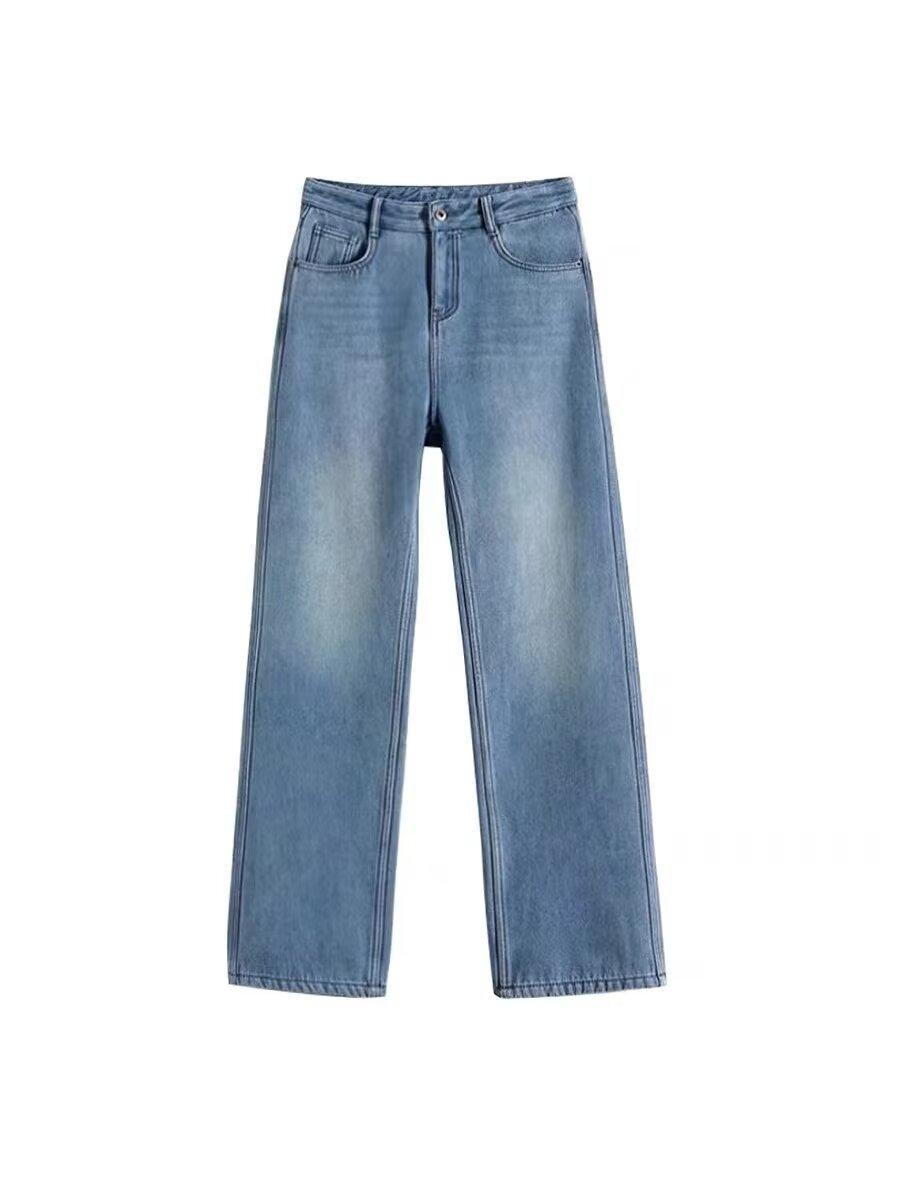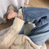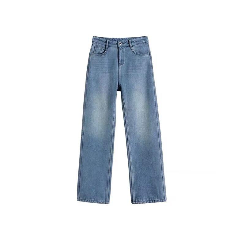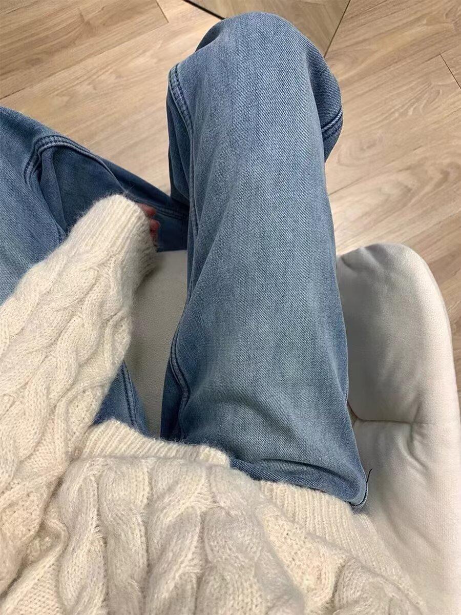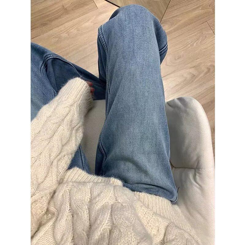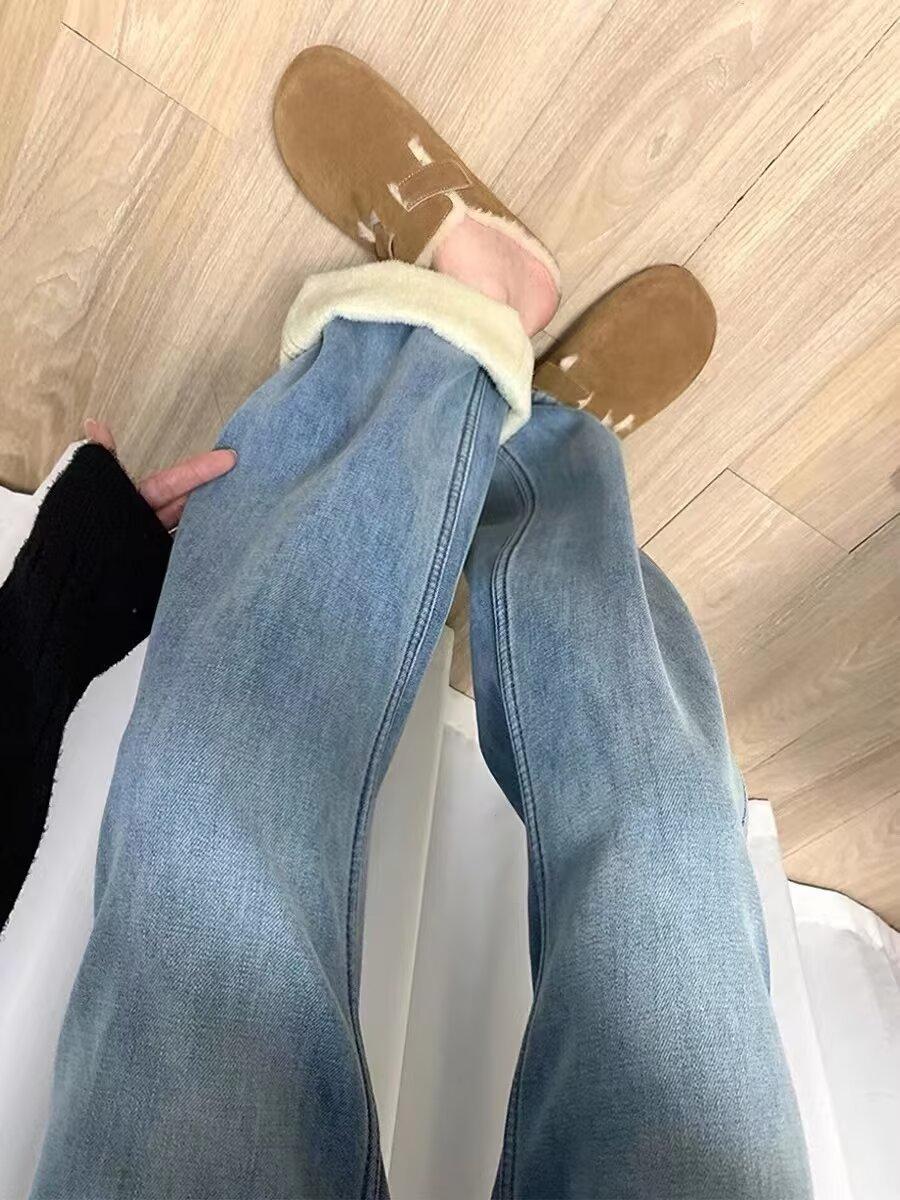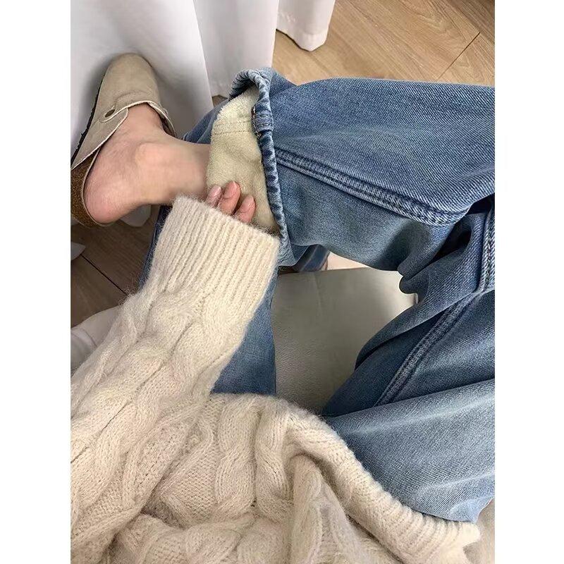 Pantalones vaqueros de cintura alta para mujer, de invierno, con forro polar, gruesos, de talla grande, para chica gordita, holgados, adelgazantes, estrechos, con forma de pera y pierna ancha.