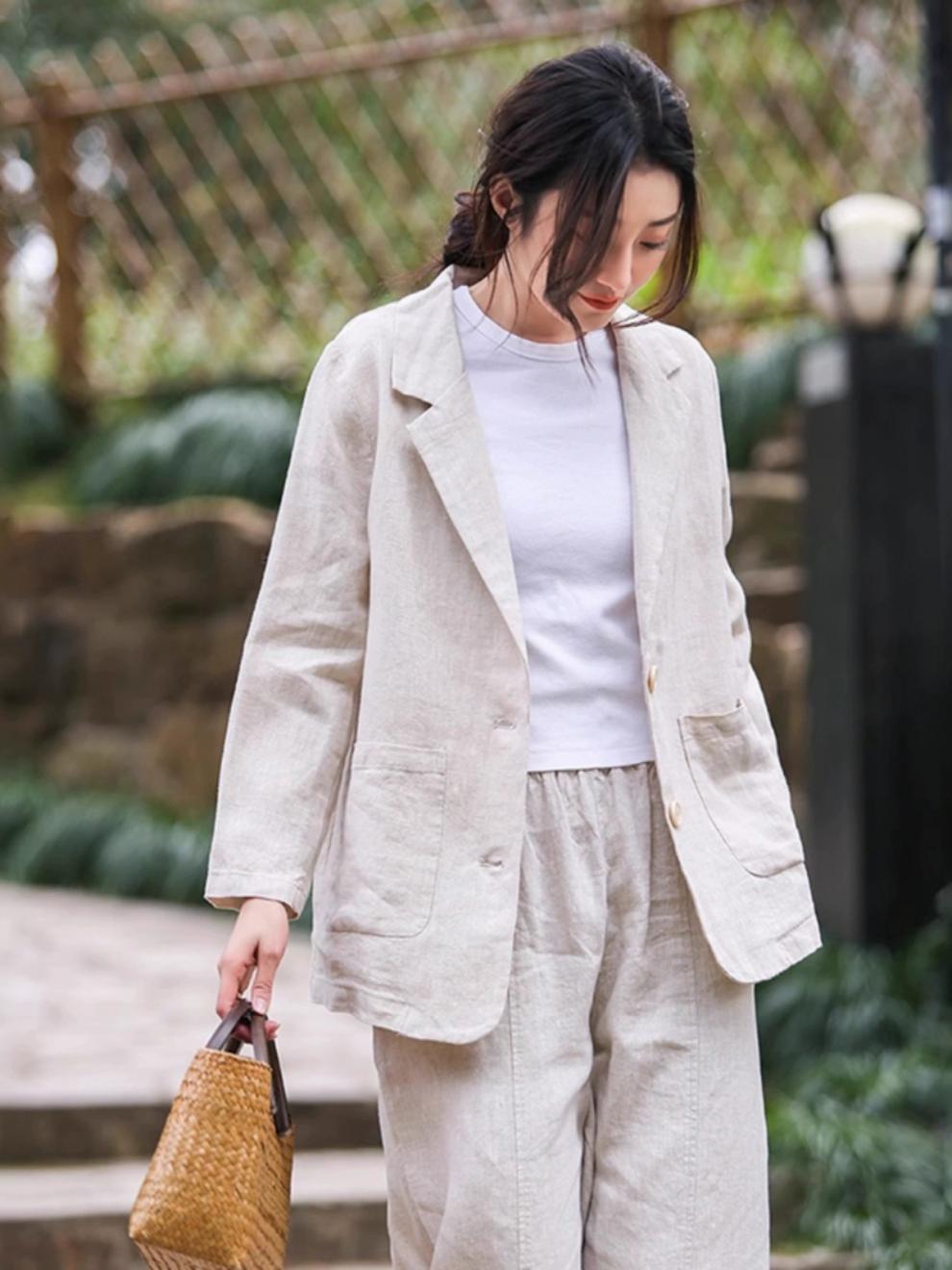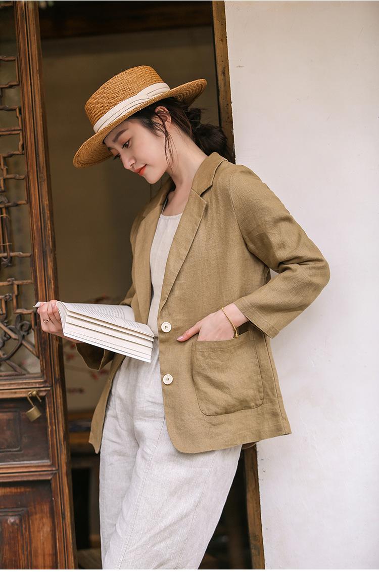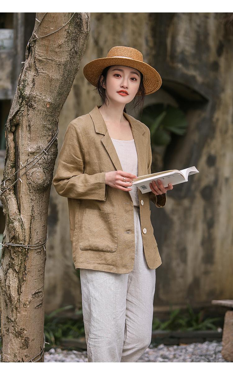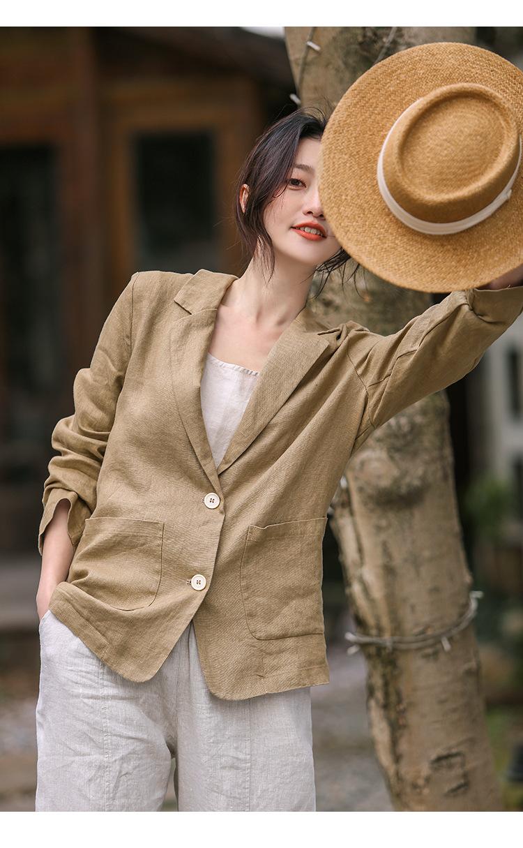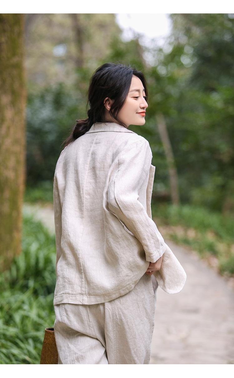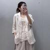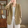 Algodón y Lino Chaqueta de Traje Pequeña de un Solo Botón para Mujer Otoño 2025 Nueva Artística Top Suelto Traje de Lino Chino de Manga Larga