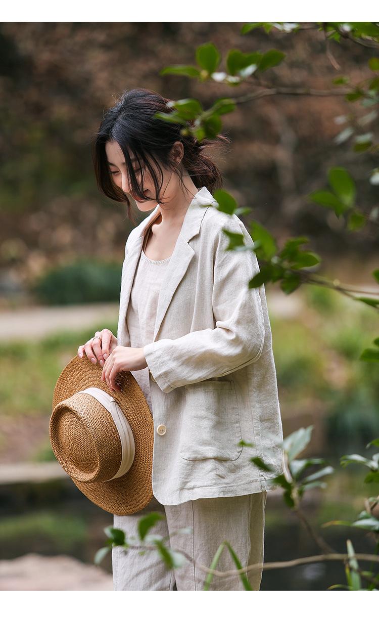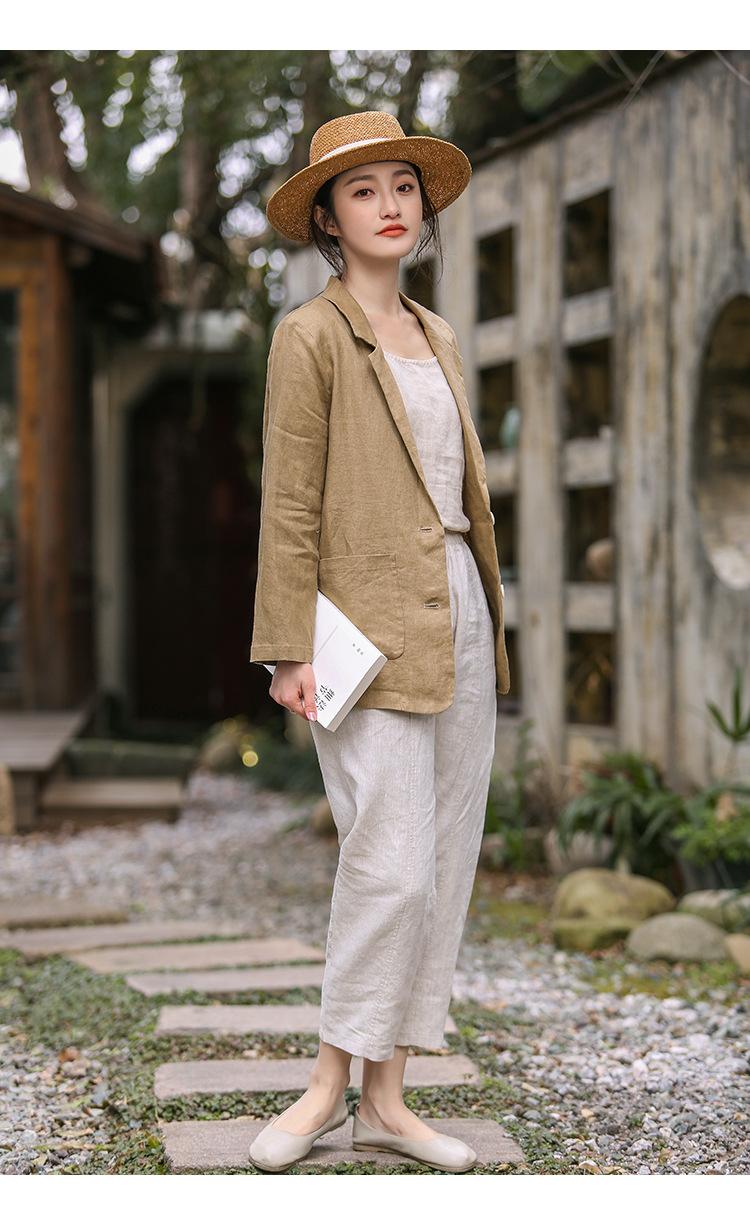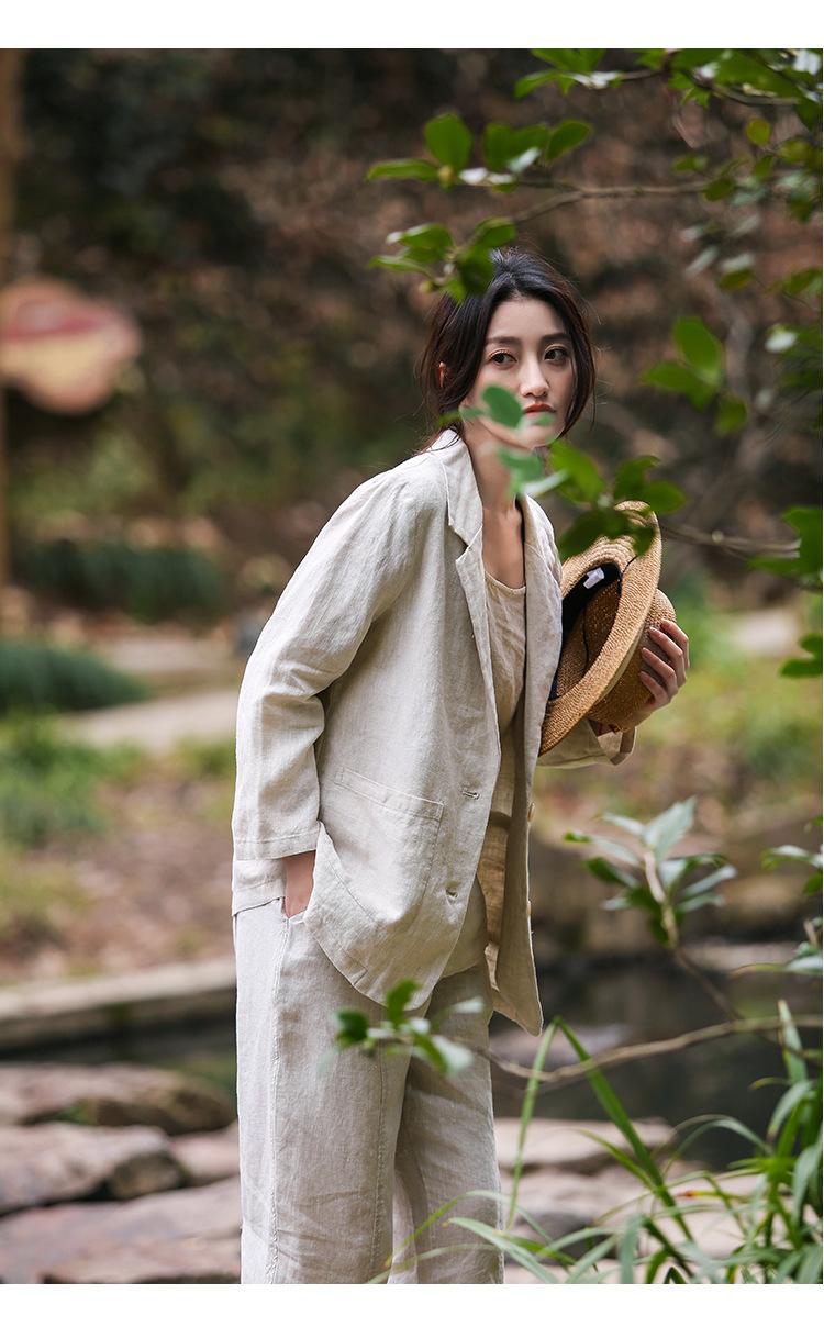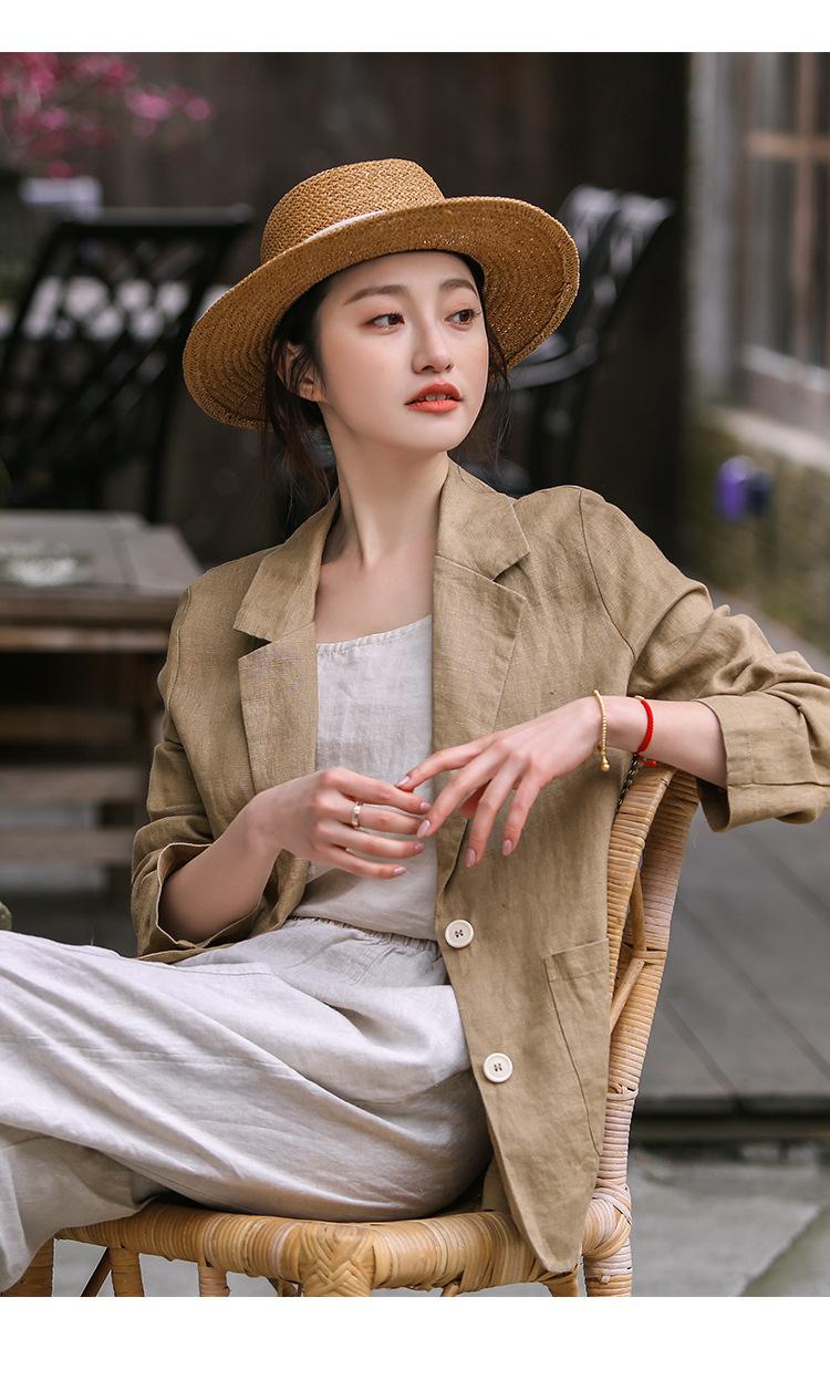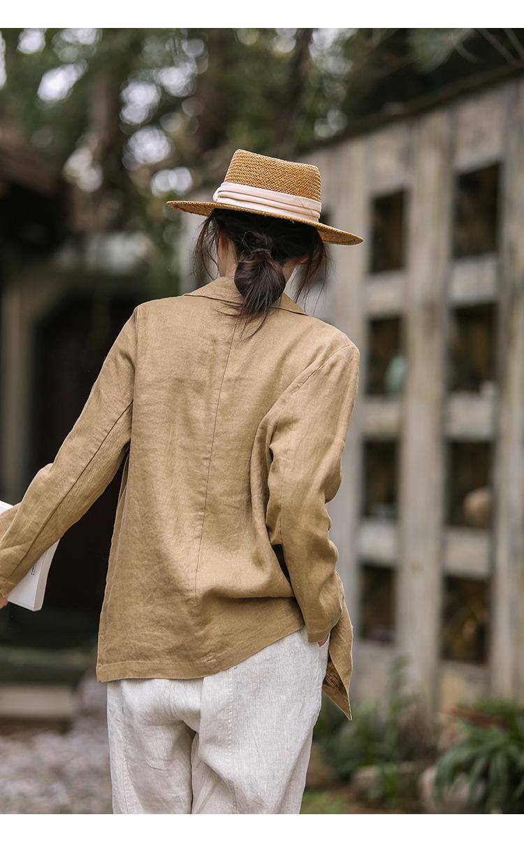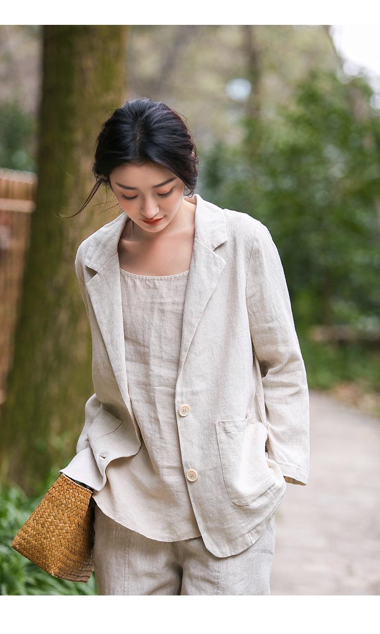 Algodón y Lino Chaqueta de Traje Pequeña de un Solo Botón para Mujer Otoño 2025 Nueva Artística Top Suelto Traje de Lino Chino de Manga Larga